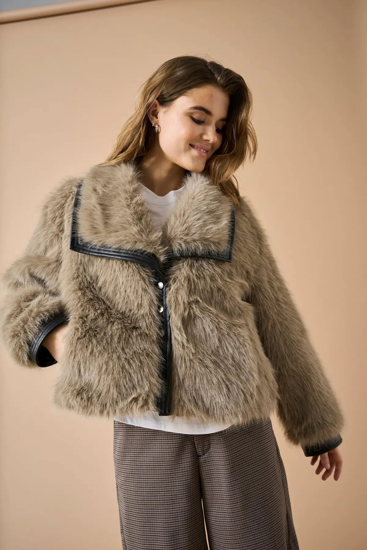 Detay: Suni deri dik yakası ve yaka iç kısmı tamamen suni kürkle kaplı , iç kısmı astarlı tasarımıyla bu ceket tipi mont, soğuk havalarda maksimum konfor sunar. Çıt çıt kapamalı ön yüzü ve iki adet gizli cebiyle hem şık hem işlevsel bir kullanım sağlar. Dış yüzeyide full suni kürk olan bu mont, modern çizgileriyle öne çıkması ile kış stiline güçlü bir dokunuş katmak isteyenler için ideal bir tercihtir;