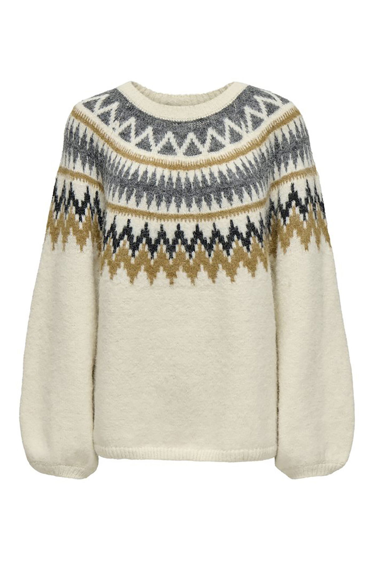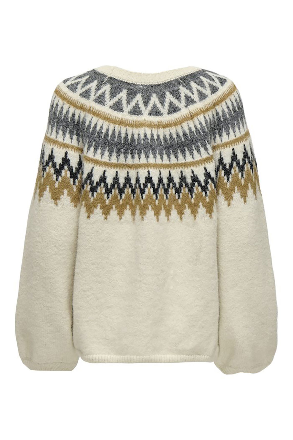 Only Kadın Onlreykja Desenli Sıfır Yaka Yünlü Kazak 15353221 Ekru