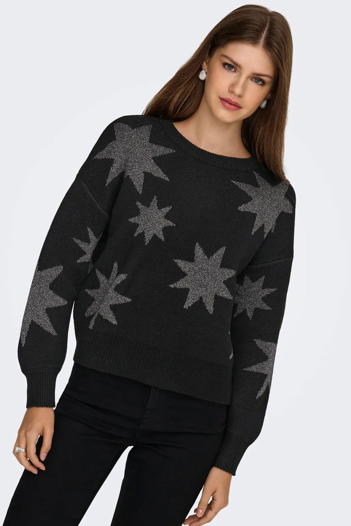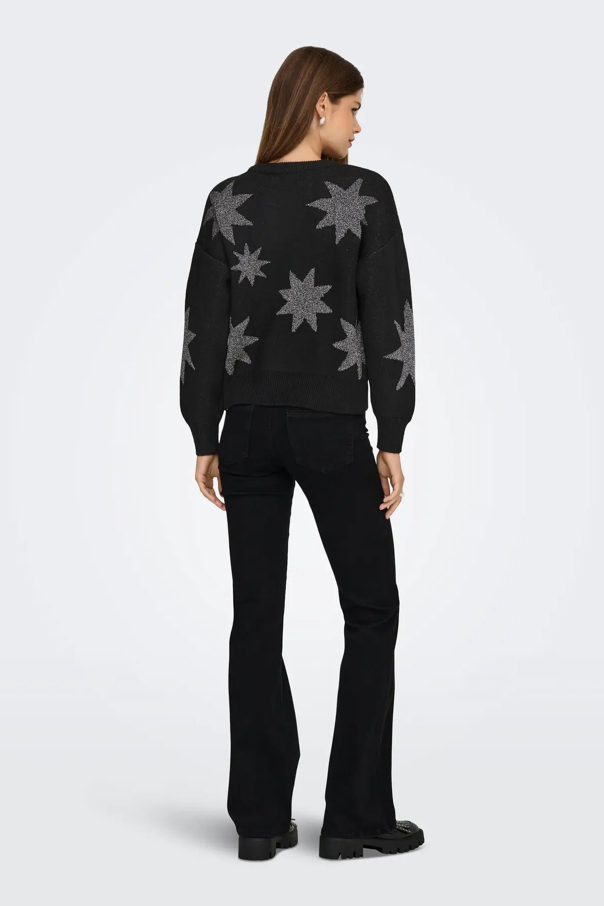 Only Kadın Onlrosıe Yıldız Desenli Bisiklet Yaka Örme Kazak 15328250 Siyah