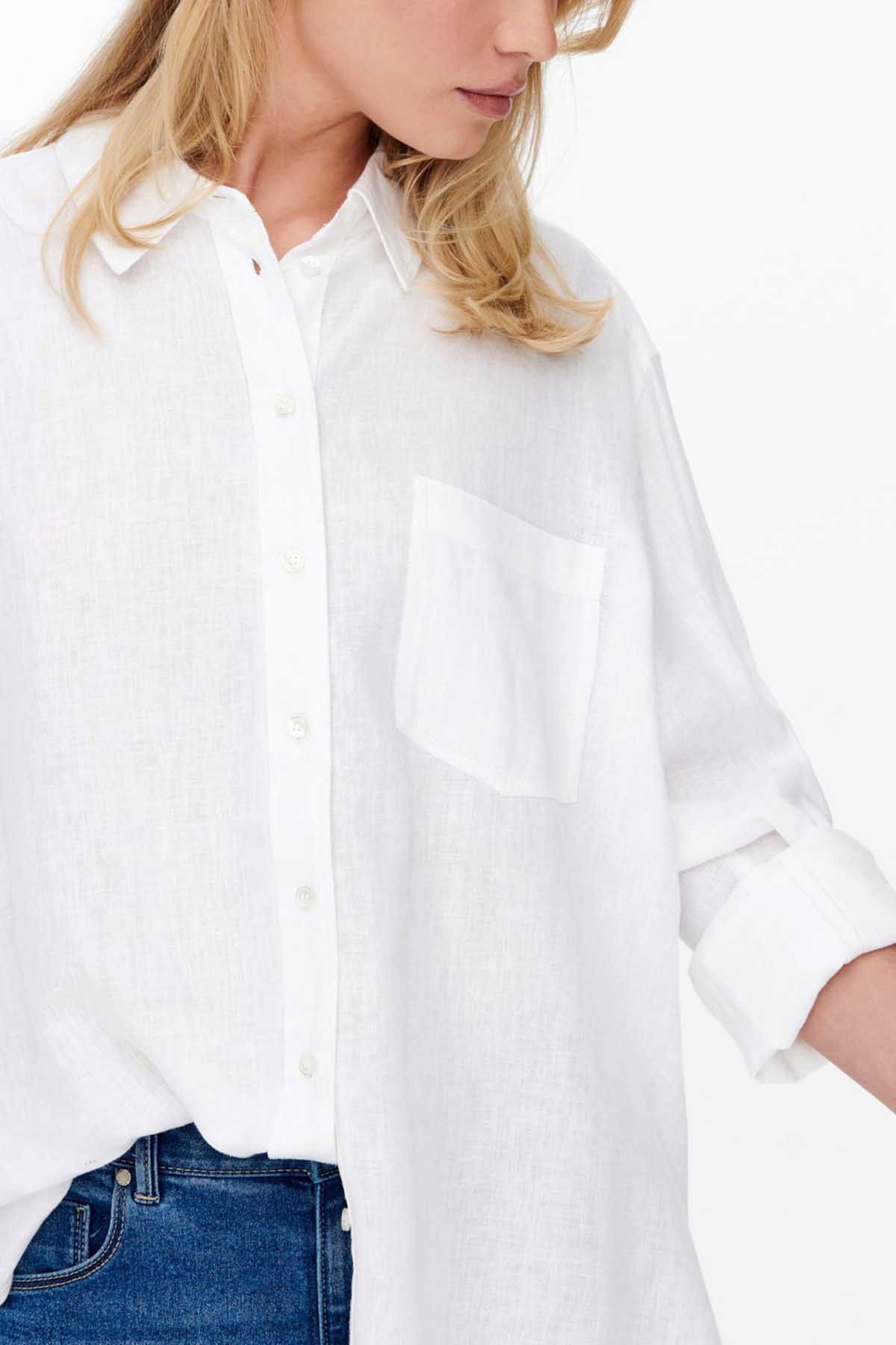 Detay: Düz dokuma, düğme iliklemeli, tek cep detaylı, keten gömlek;