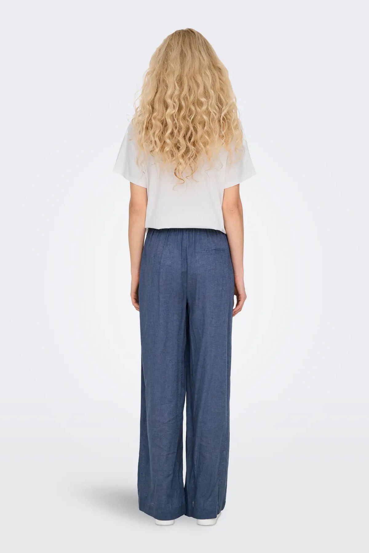 Only Kadın Onltokyo Yüksek Bel Rahat Form Keten Pantolon 15259590 Indigo