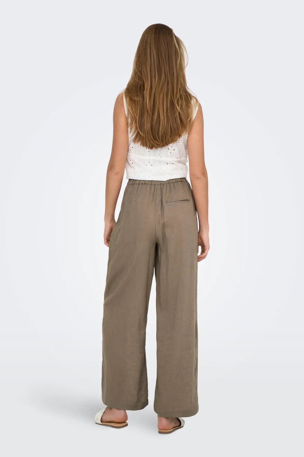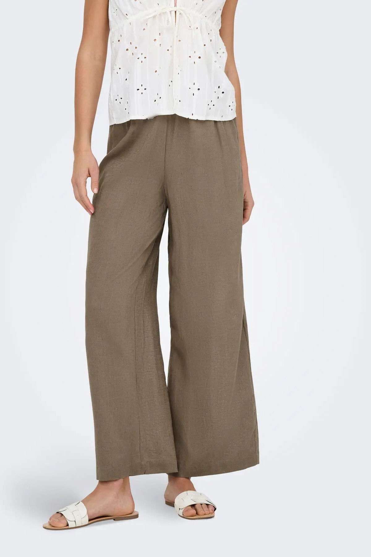 Only Kadın Onltokyo Yüksek Bel Rahat Form Keten Pantolon 15259590 Vizon