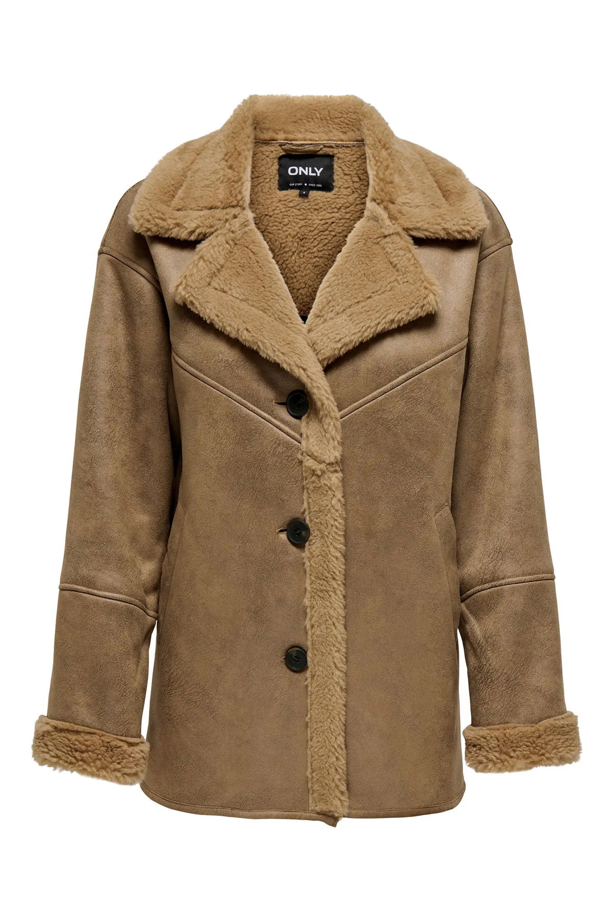 Only Kadın Yakası ve İçi Kürklü Süet Mont 15322037 Vizon