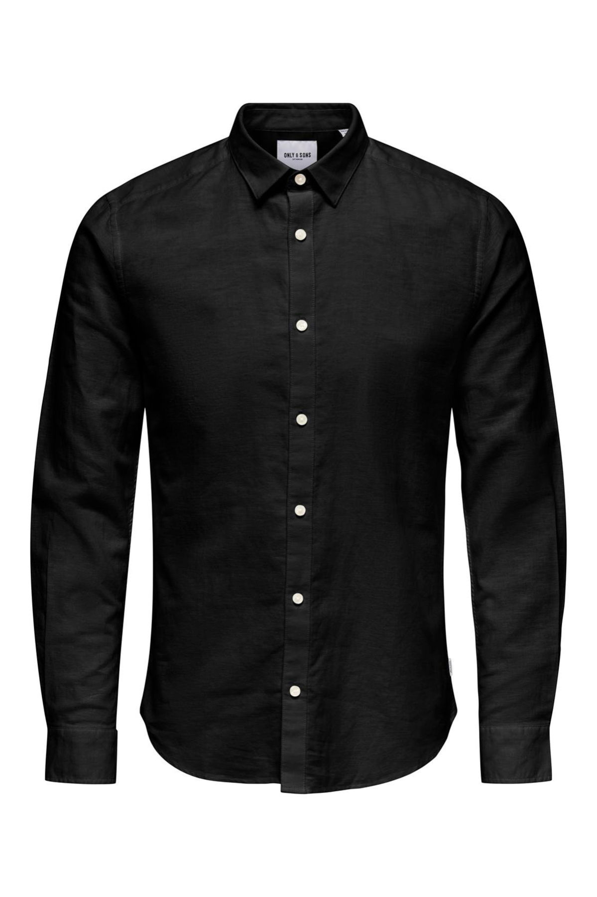 Only & Sons Erkek Onscaiden Slim Fit Keten Gömlek 22012321 Siyah