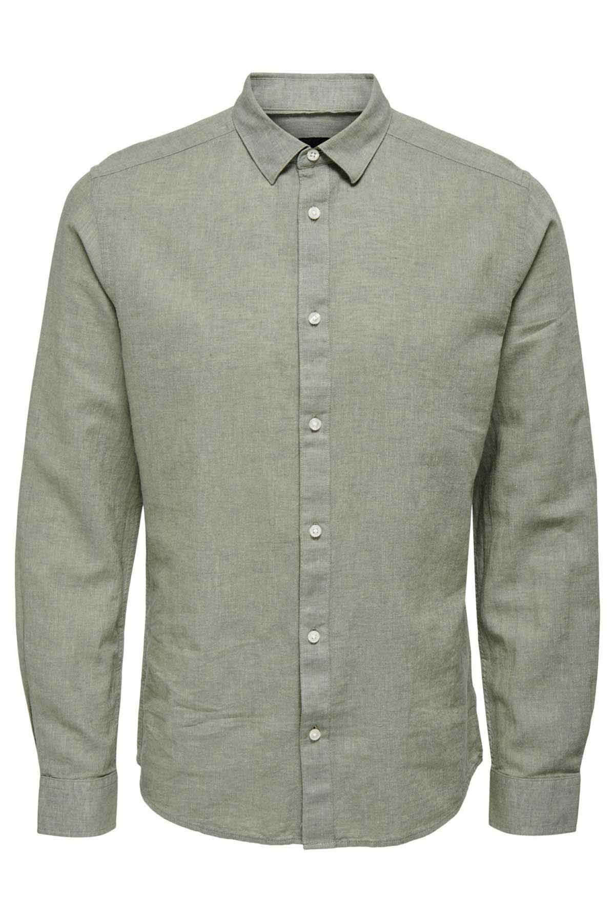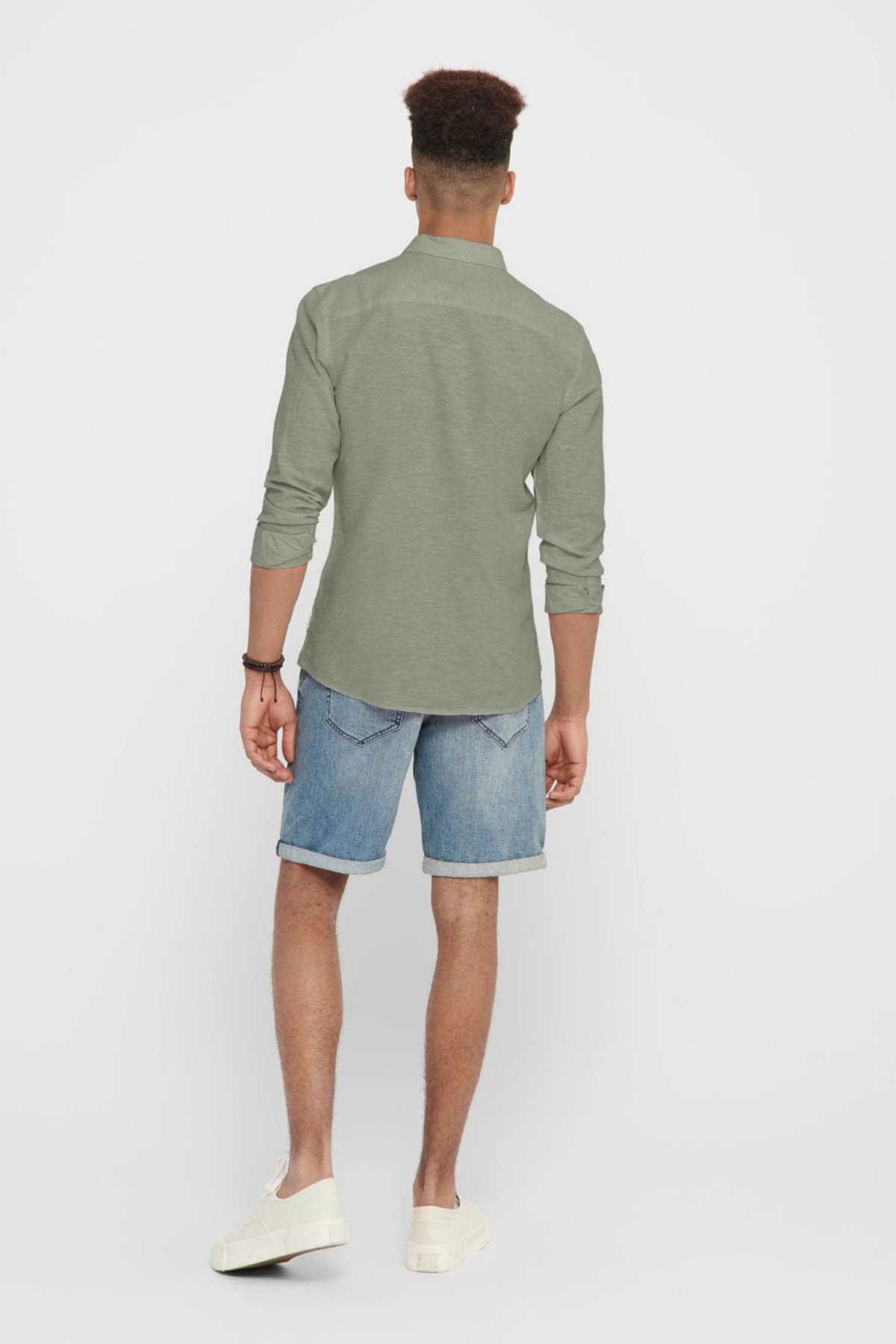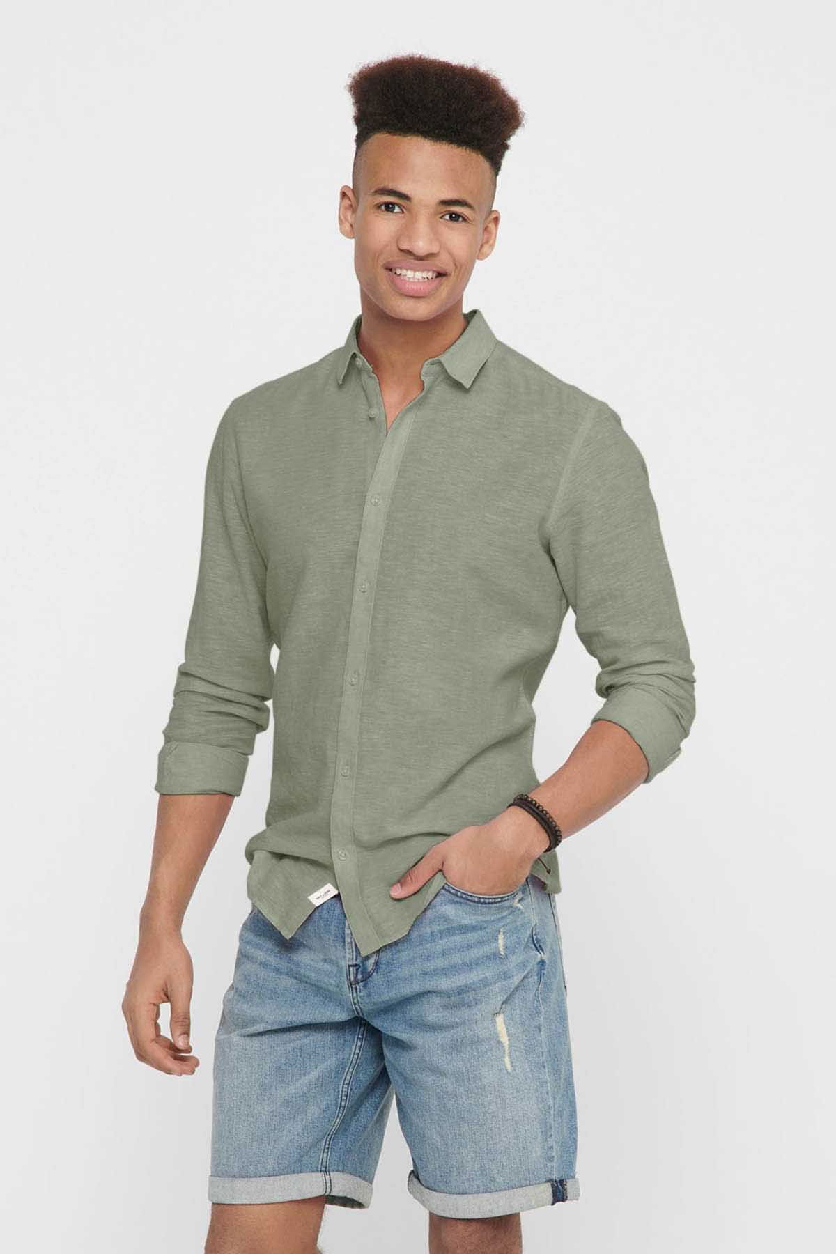 Only & Sons Erkek Onscaiden Slim Fit Keten Gömlek 22012321 Yeşil
