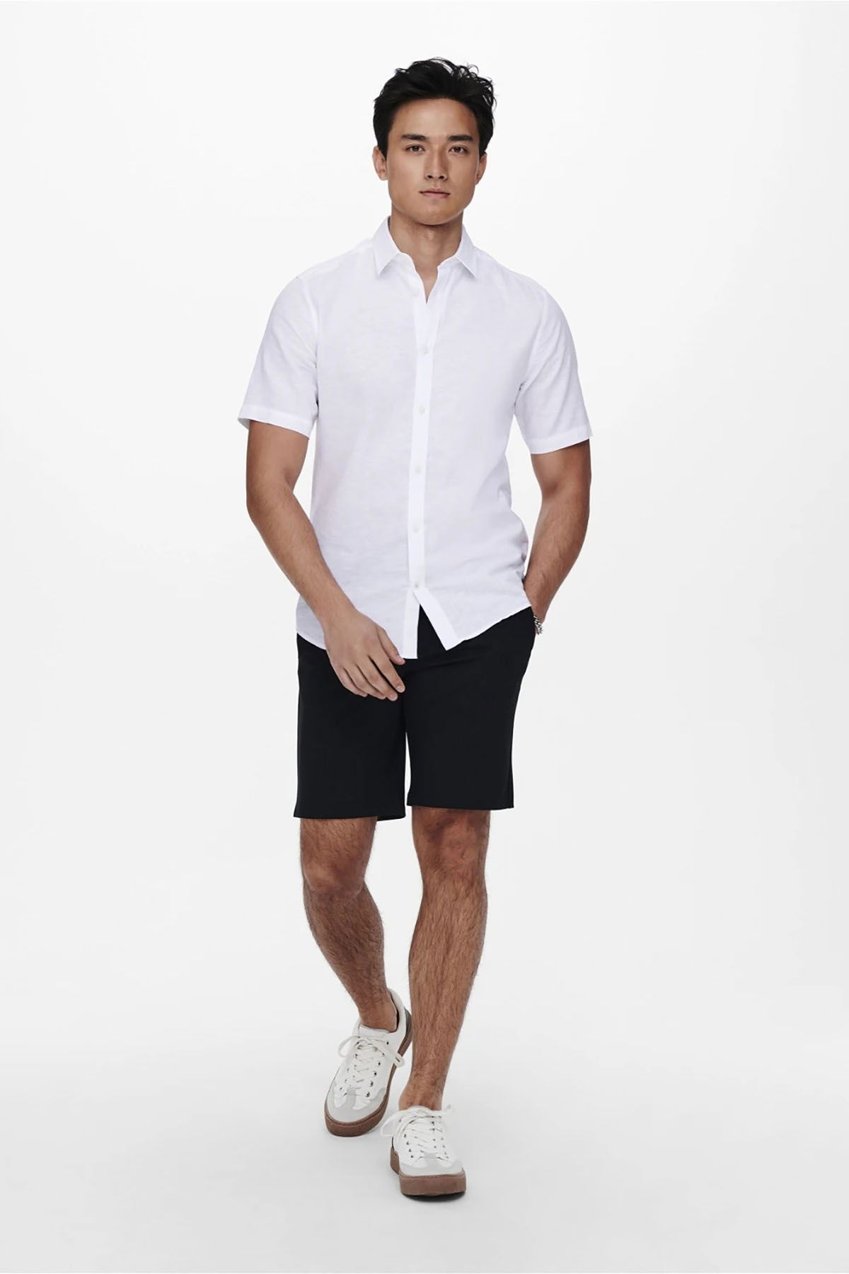 Detay: Kısa kollu, dar kalıp, düğme kapamalı gömlek;