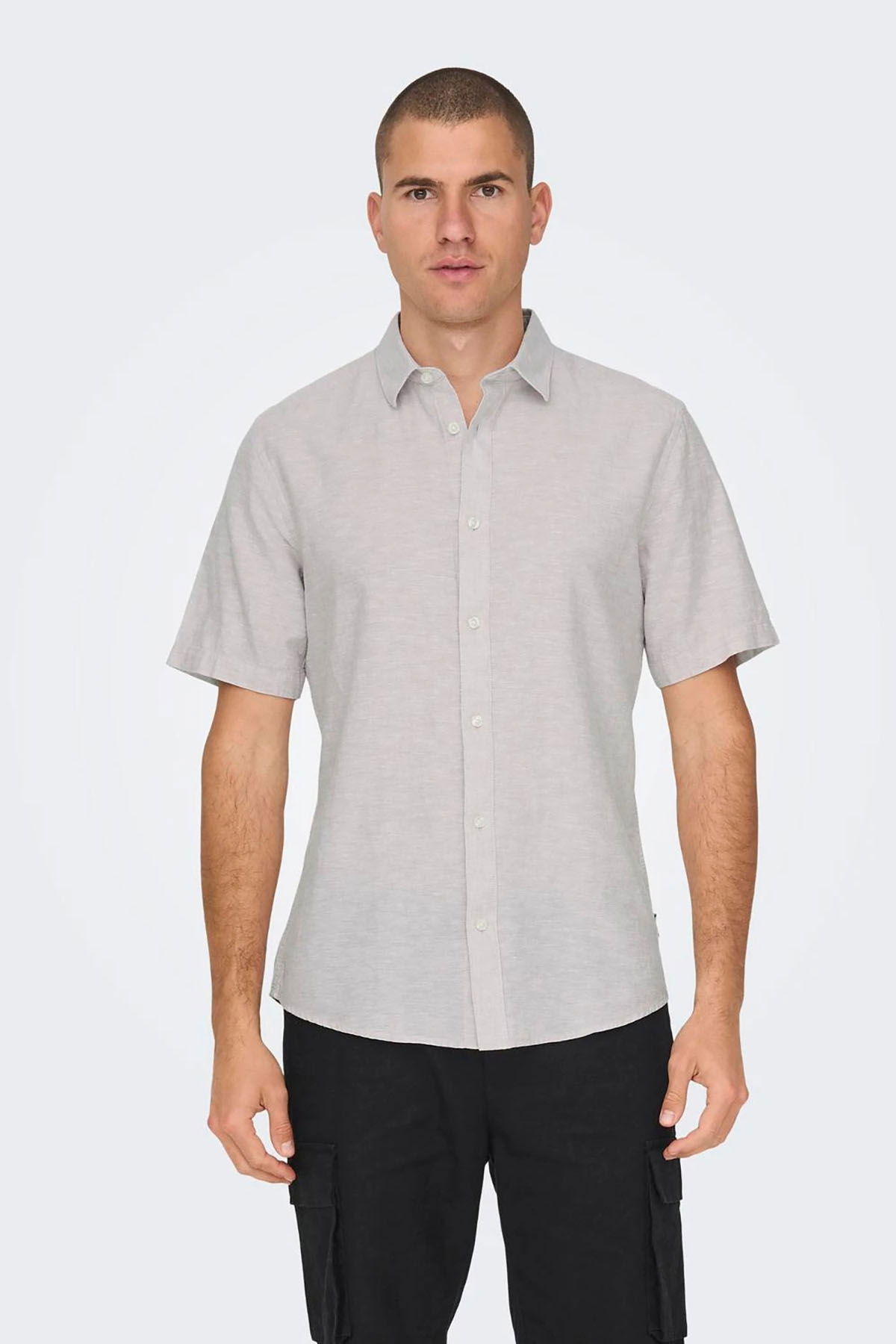 Only & Sons Erkek Onscaıden Slim Fit Kısa Kollu Keten Gömlek 22009885 Lila
