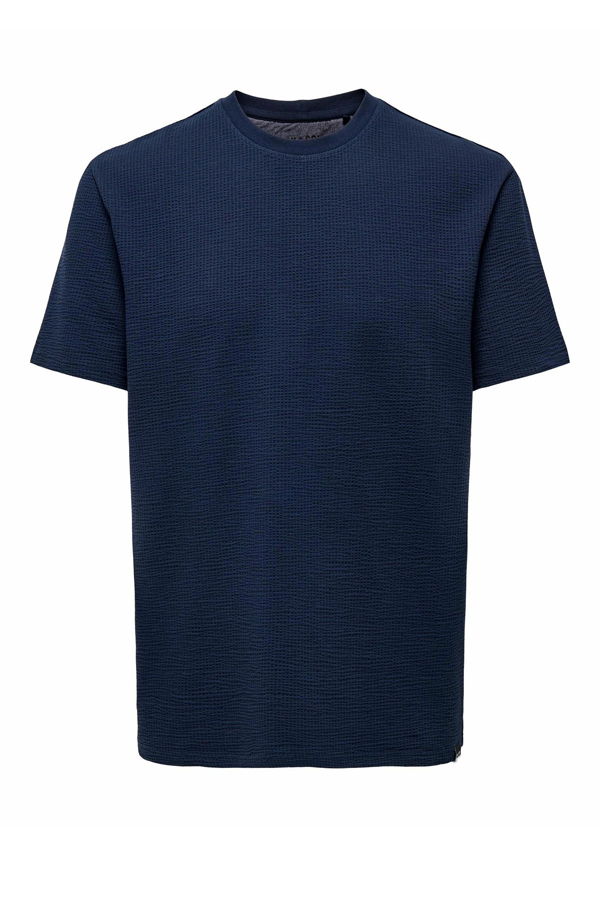 Only & Sons Erkek Onskıan Kare Desenli Kısa Kollu Pamuklu T-Shirt 22028692 Lacivert