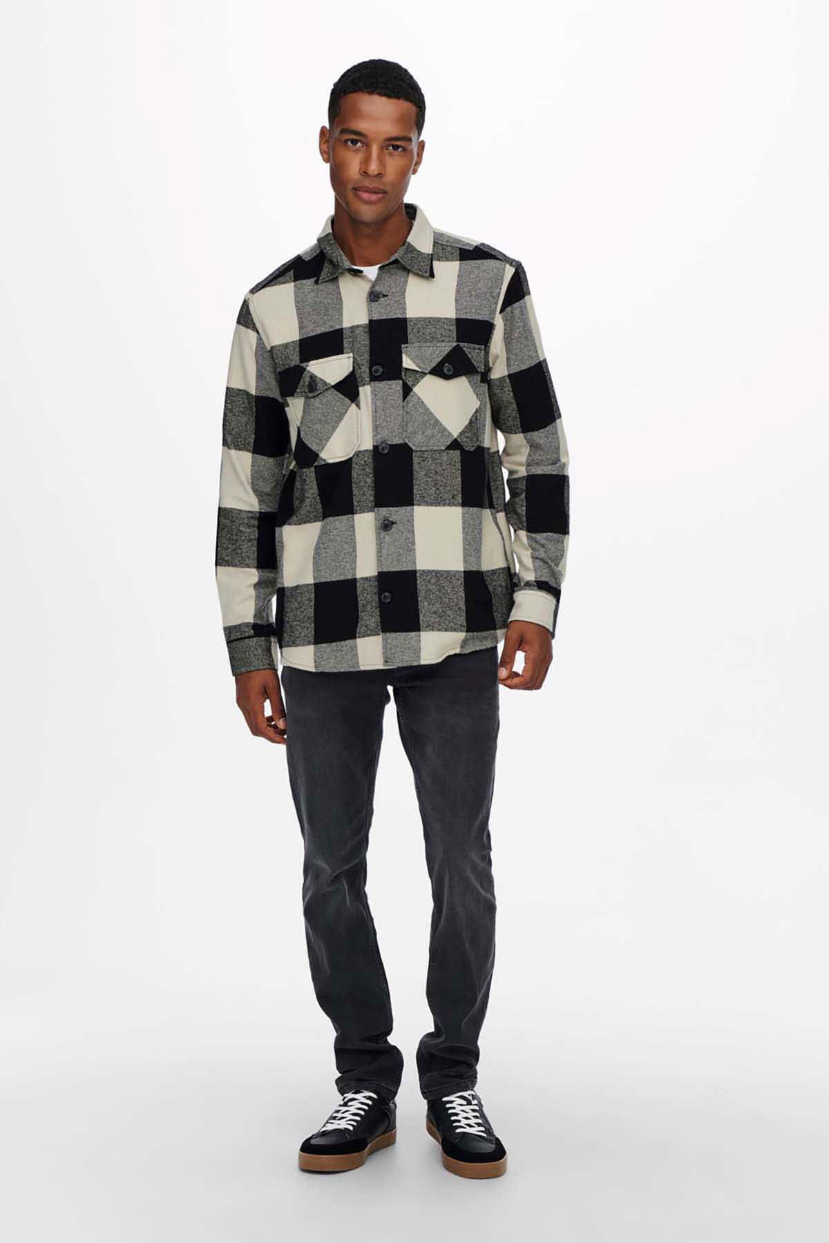 Detay: Dokuma, uzun kollu, gömlek yaka, düğmeli göğüs cepli gömlek;