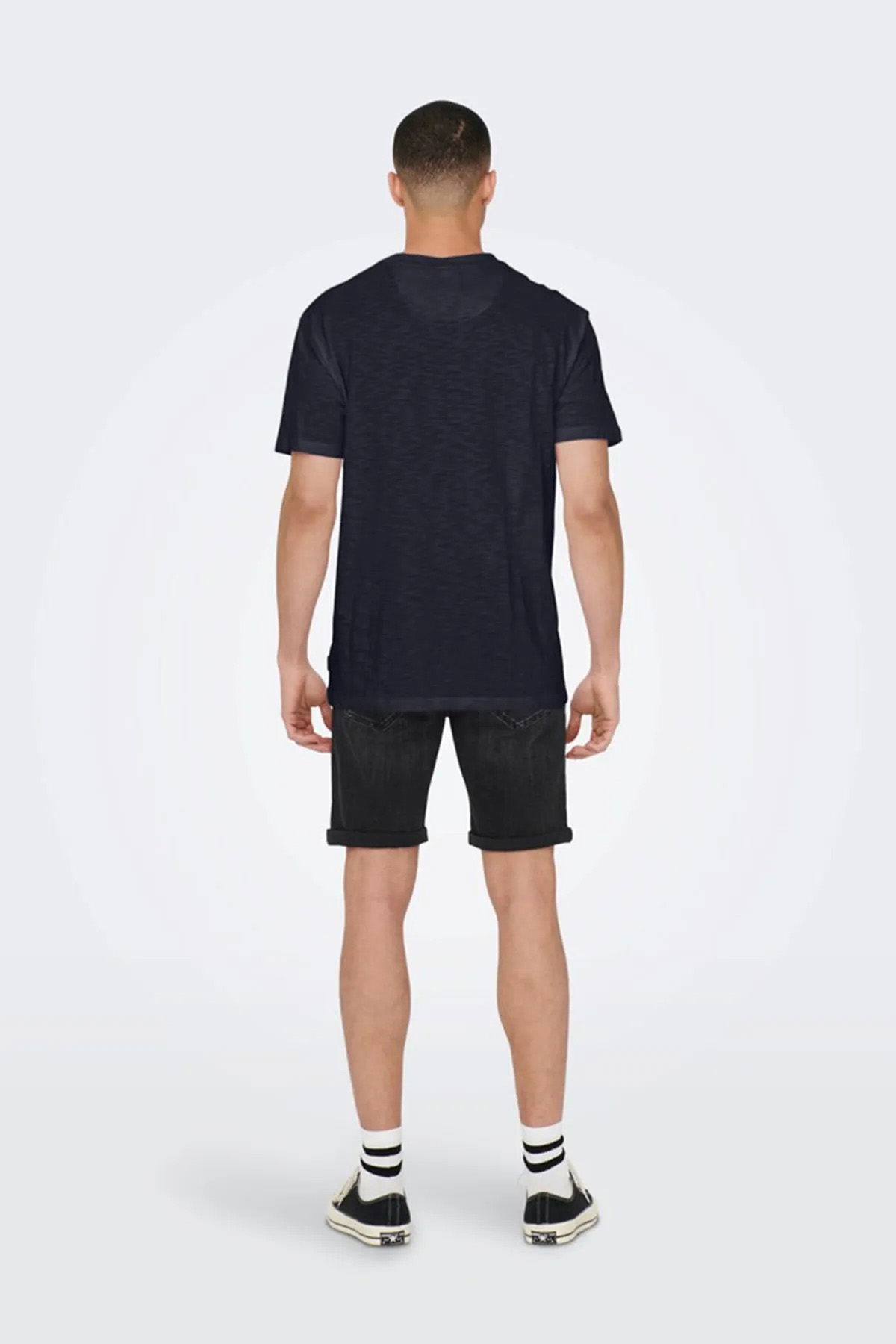 Only & Sons Erkek Onsperry Bisiklet Yaka %100 Pamuk T-Shirt 22025286 Koyu Lacivert