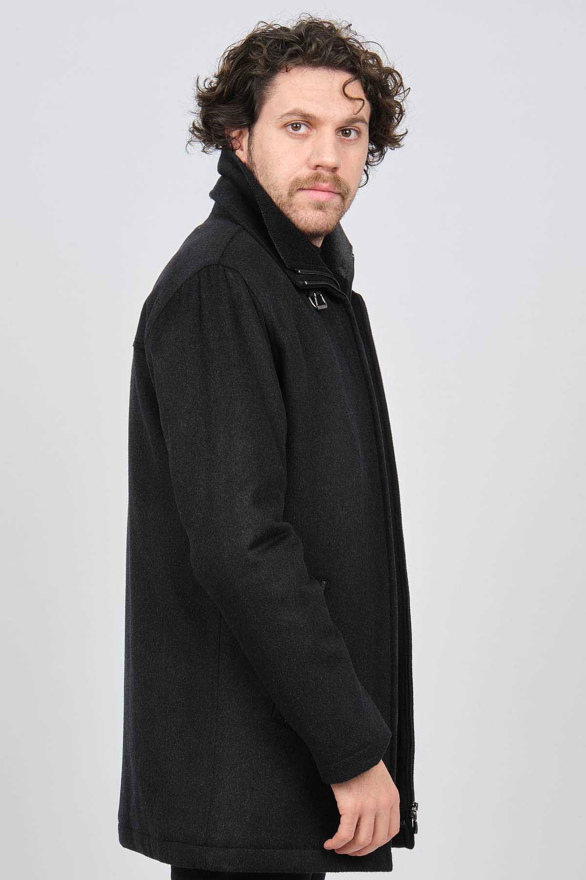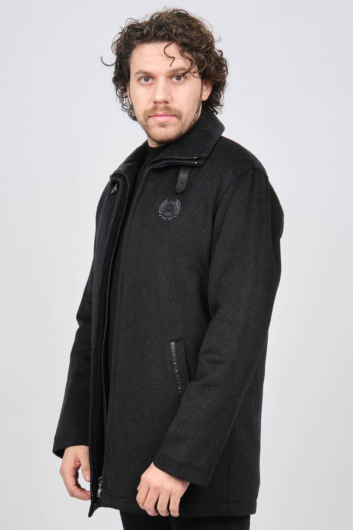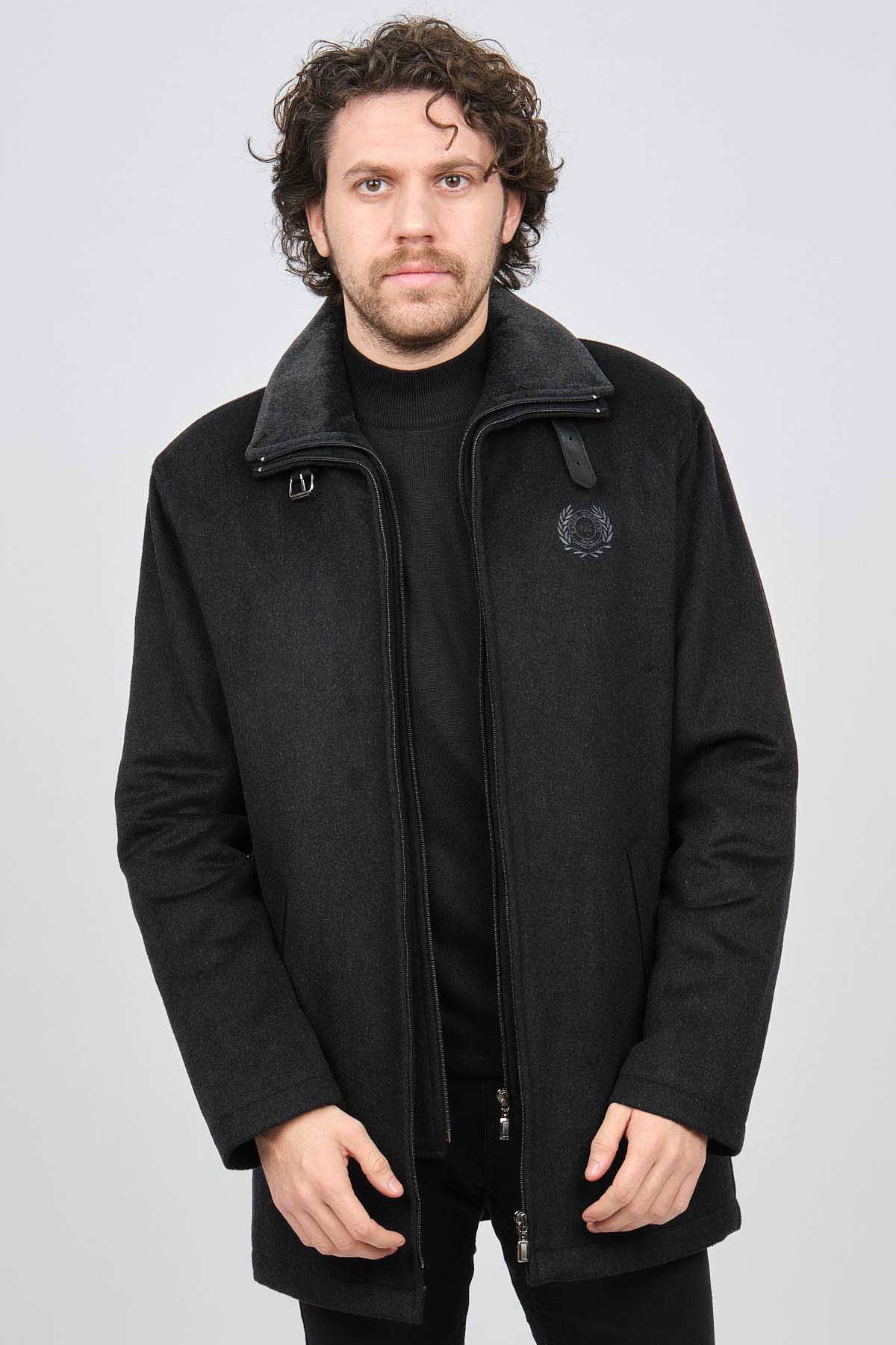 Detay: Çift yaka, Biye detaylı yan cepler, Fermuarlı, Yakası kemerli, Yün kaban;