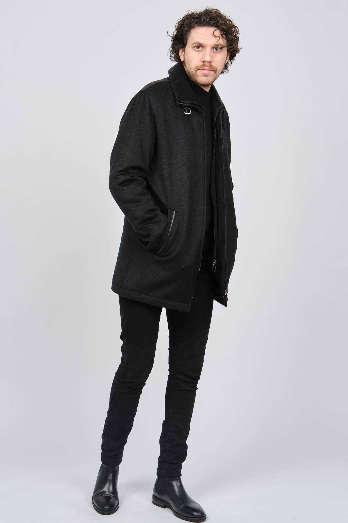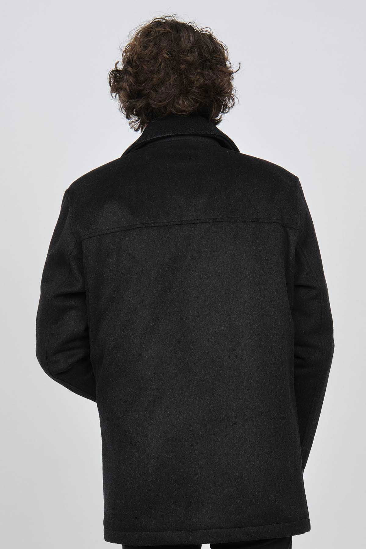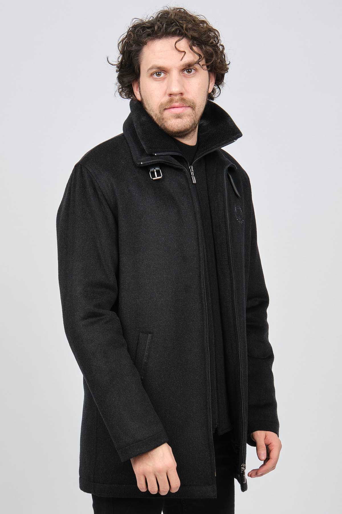 Detay: Çift yaka, Biye detaylı yan cepler, Fermuarlı, Yakası kemerli, Yün kaban;