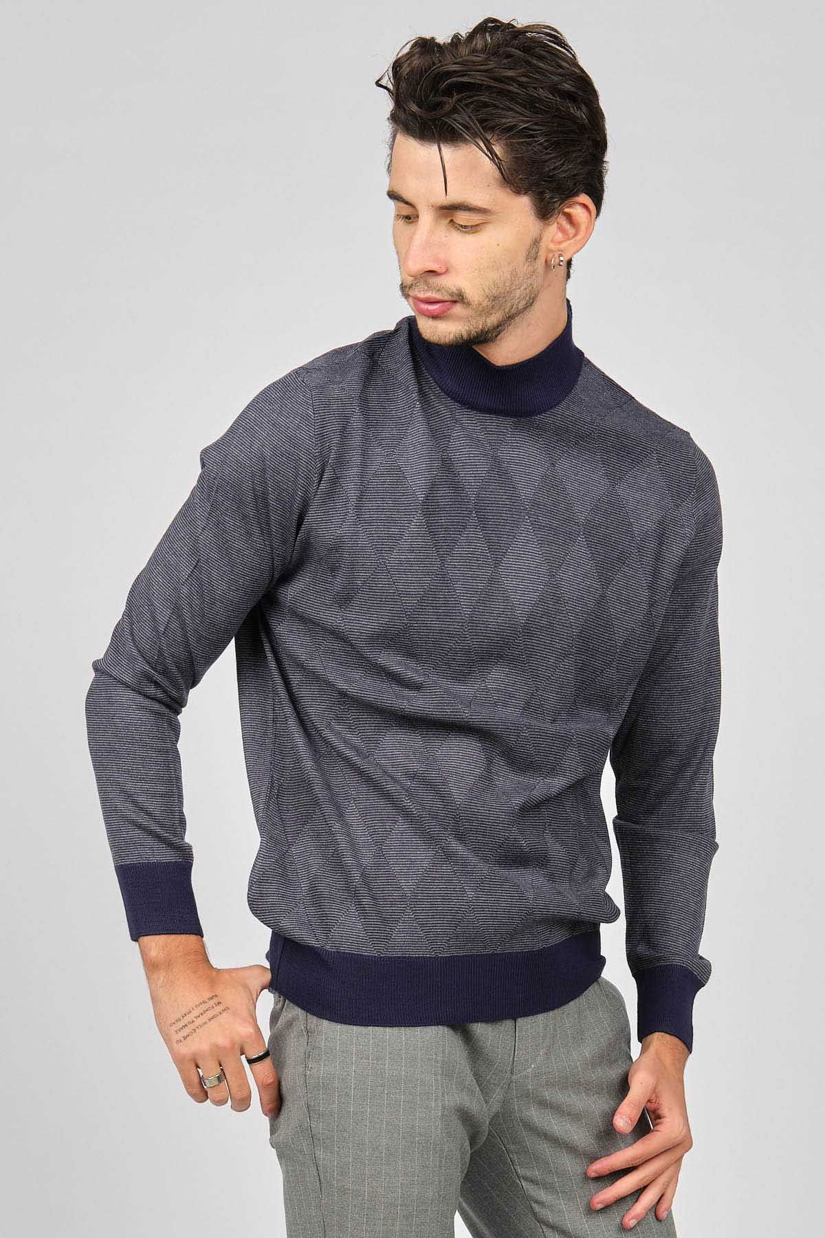 Pave Erkek Baklava Desenli Yün Kazak 4537170 Lacivert