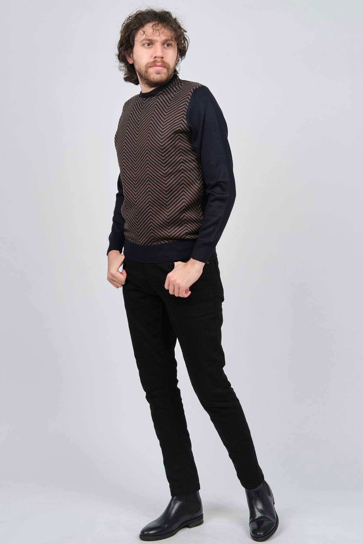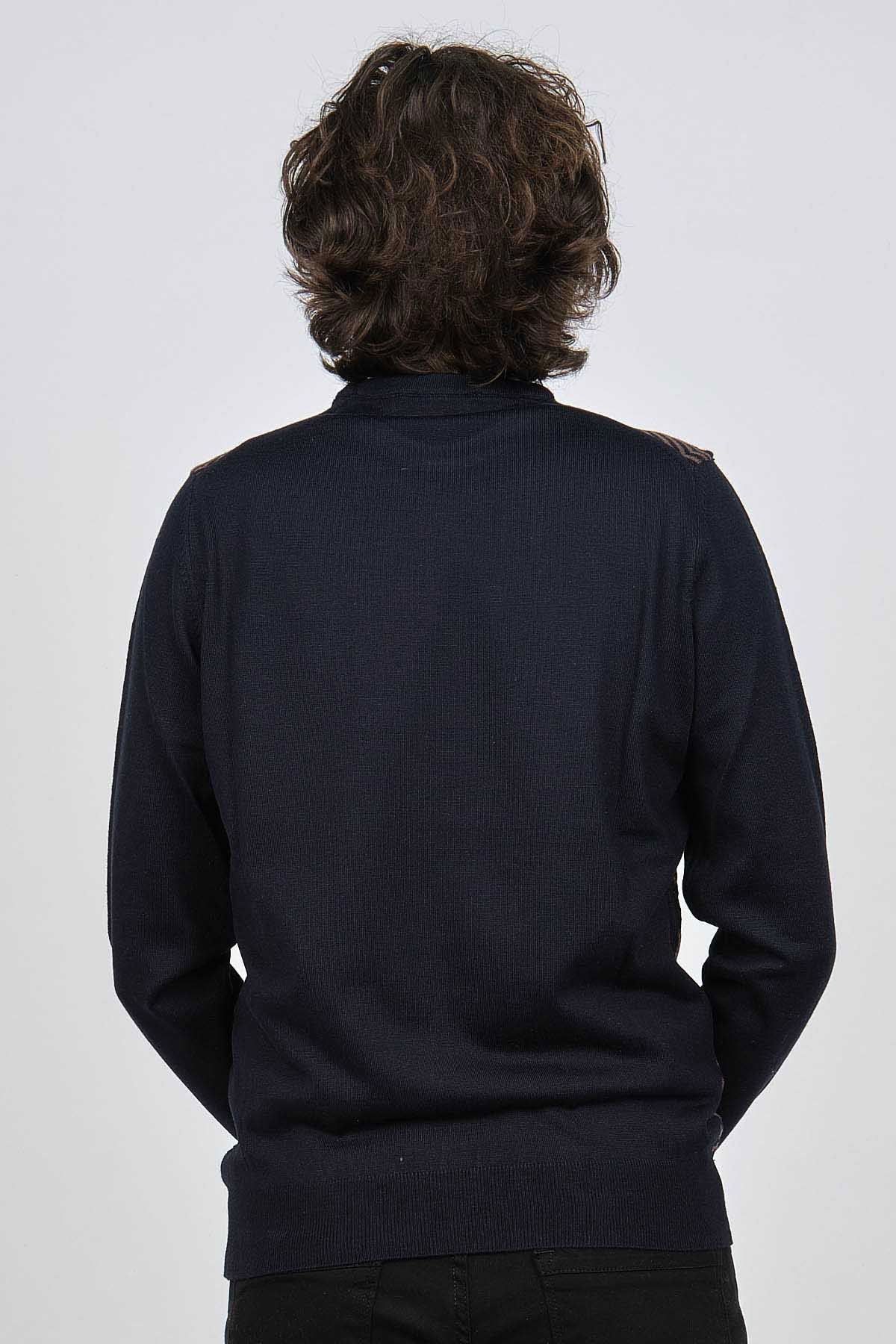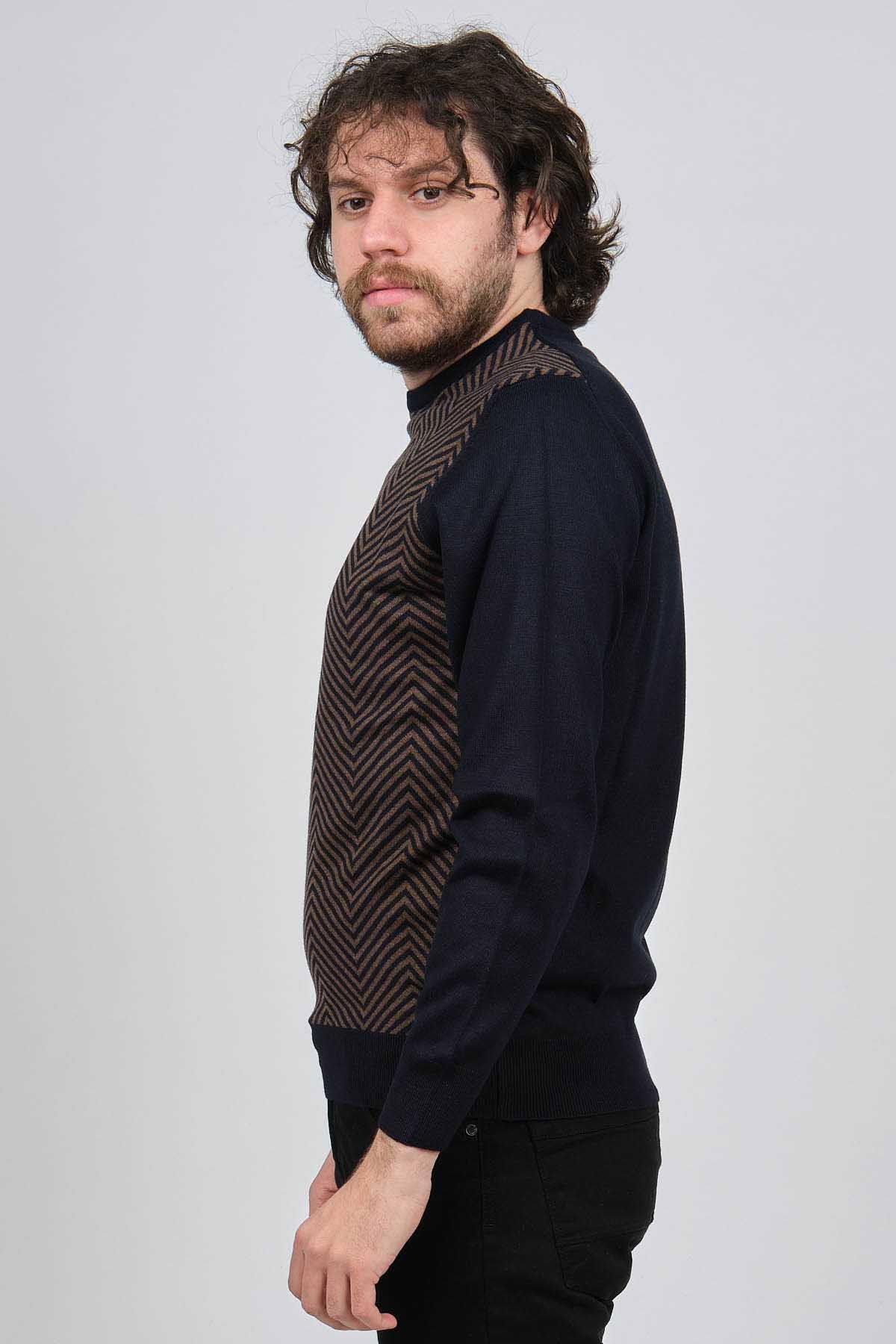 Pave Erkek Bisiklet Yaka Desenli Yün Kazak 4537043 Lacivert