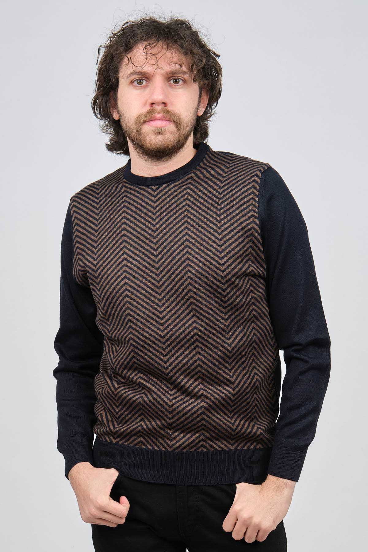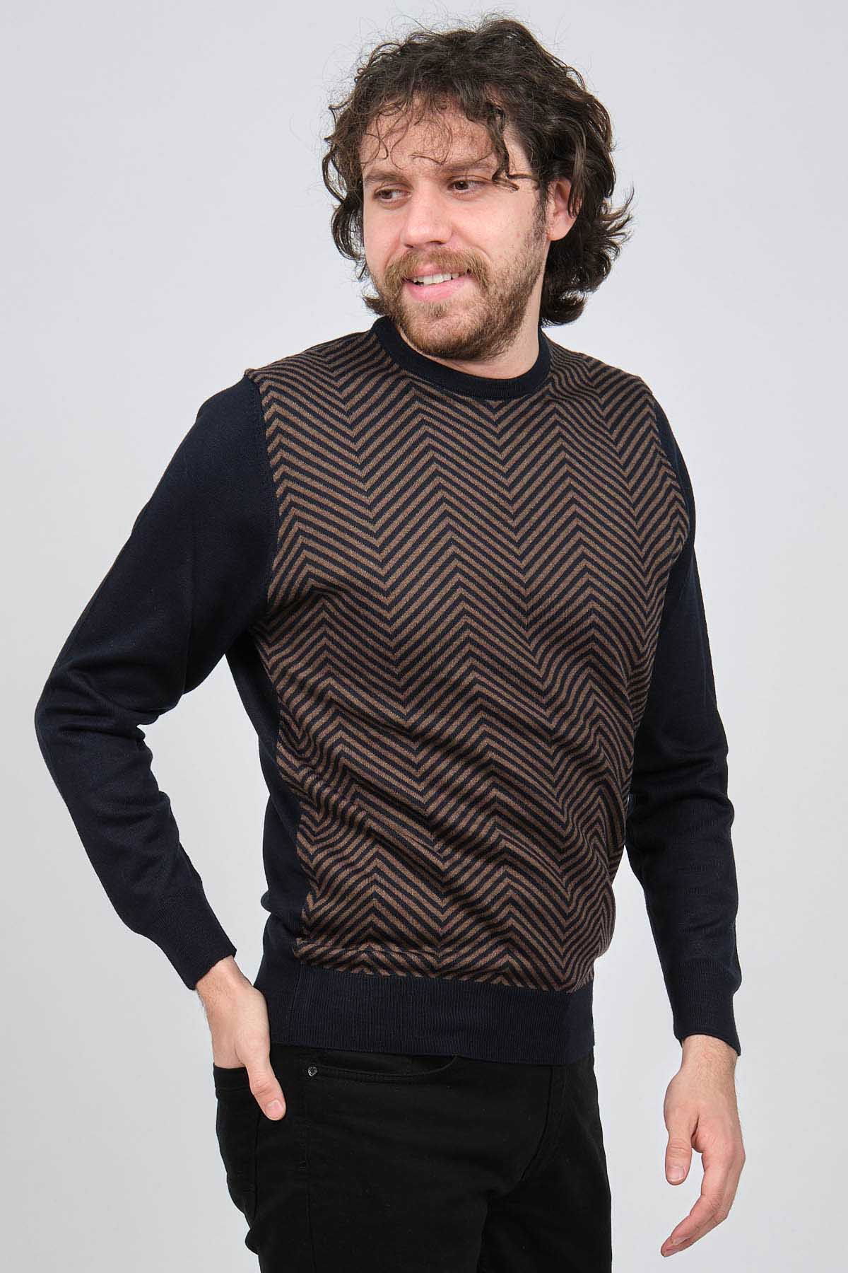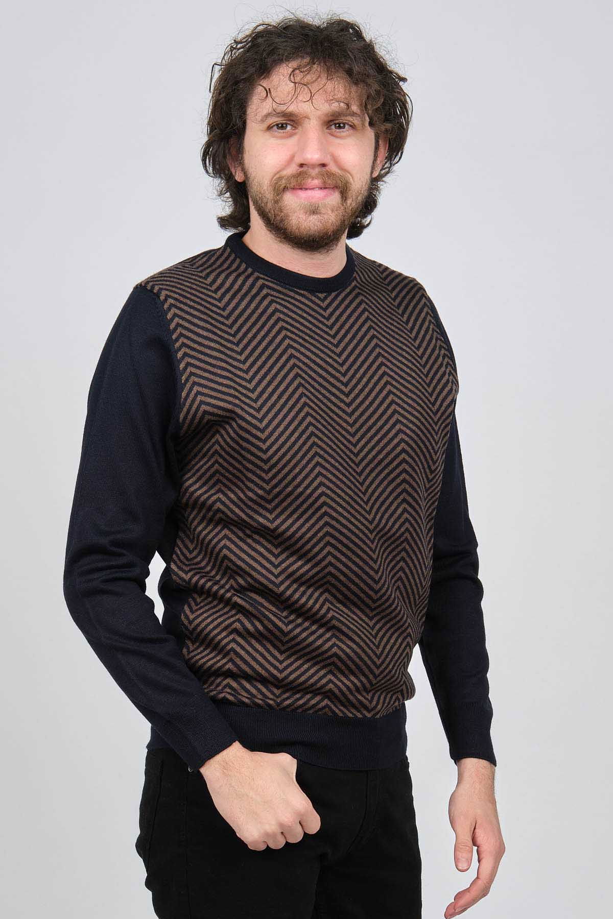 Pave Erkek Bisiklet Yaka Desenli Yün Kazak 4537043 Lacivert