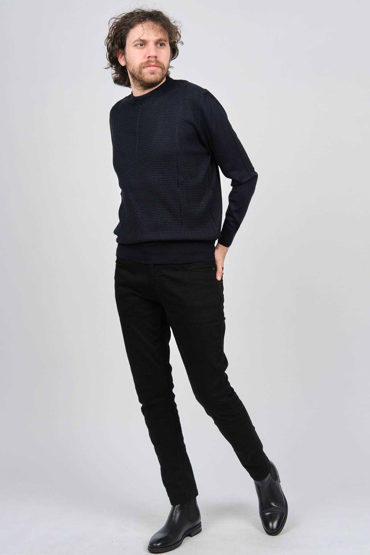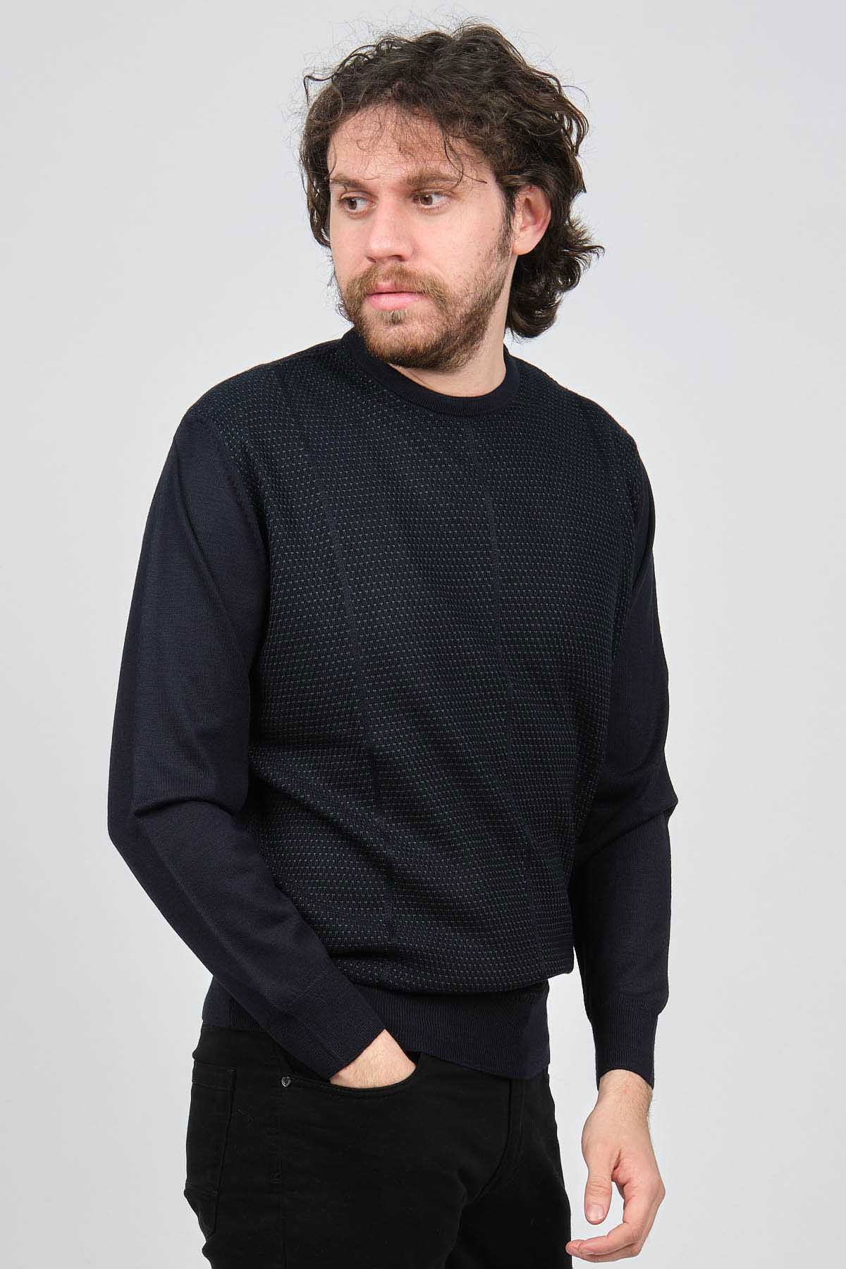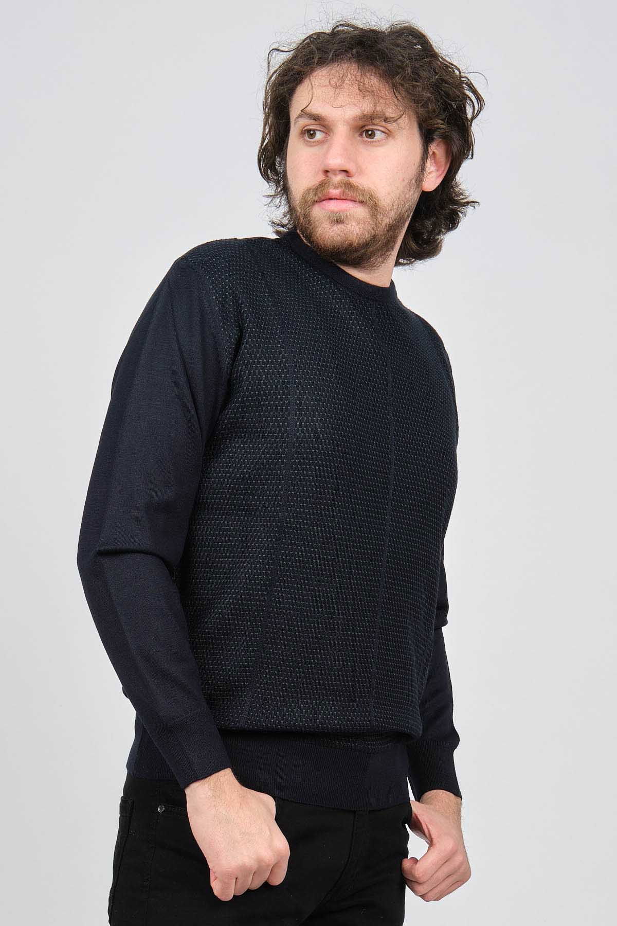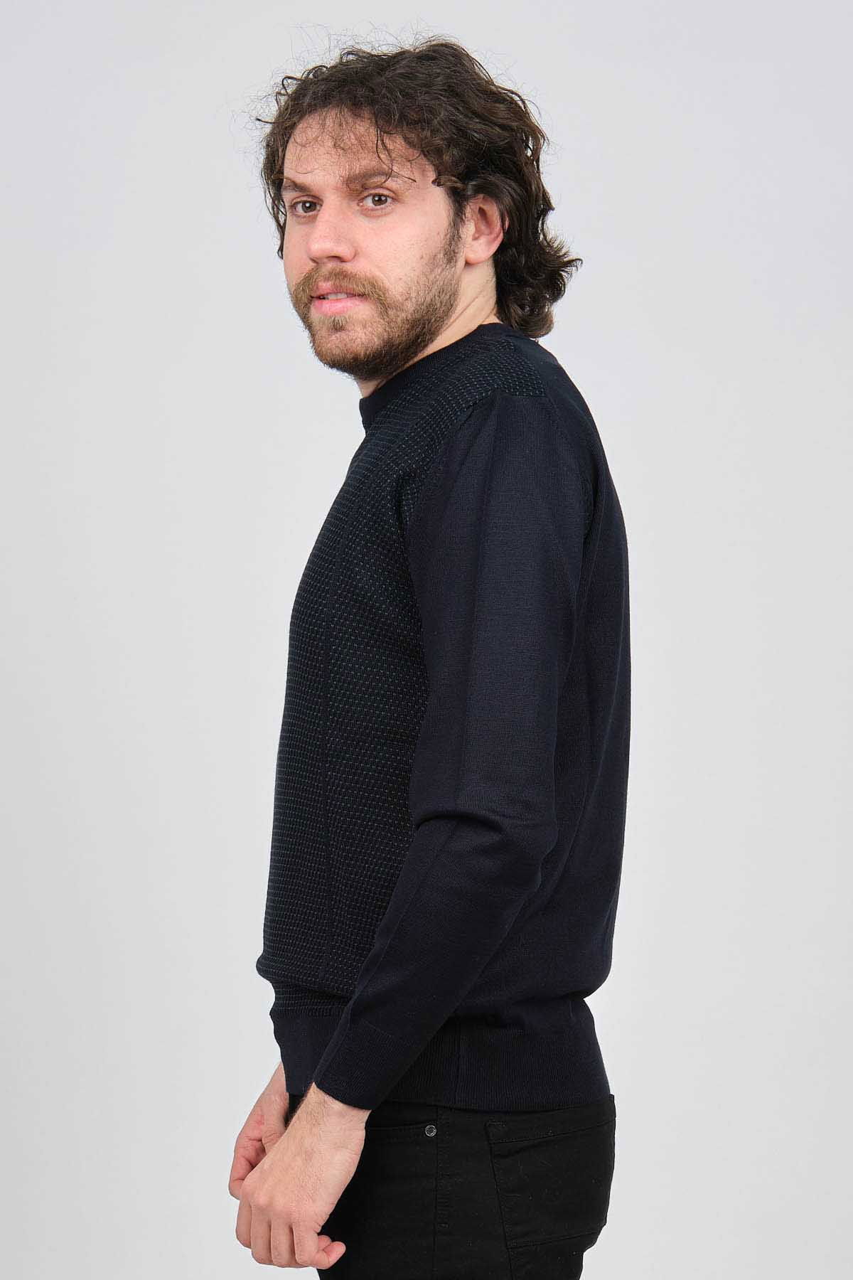 Pave Erkek Bisiklet Yaka Desenli Yün Kazak 4537063 Laci - Yeşil