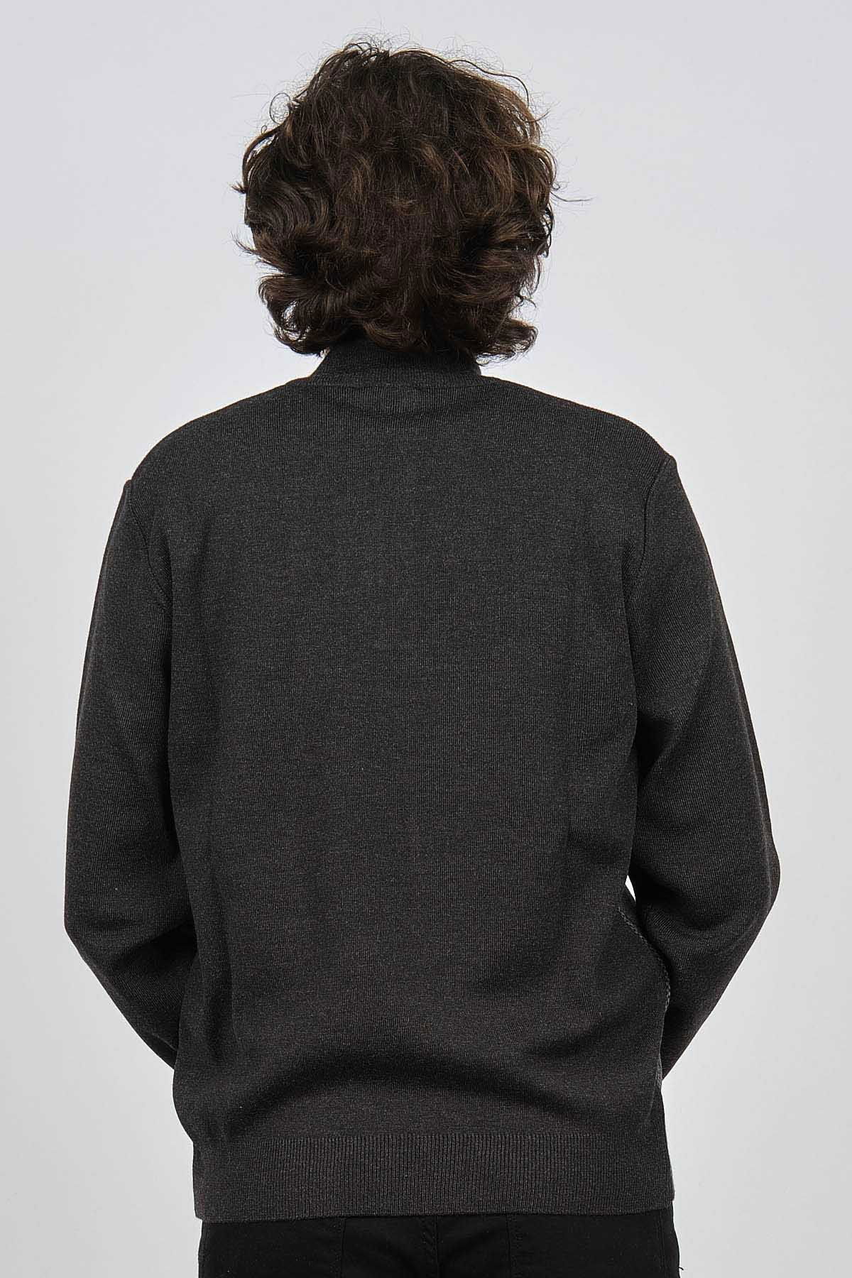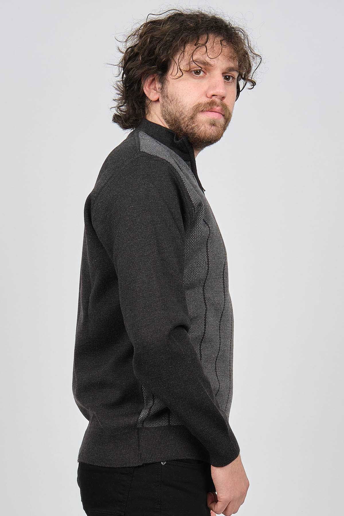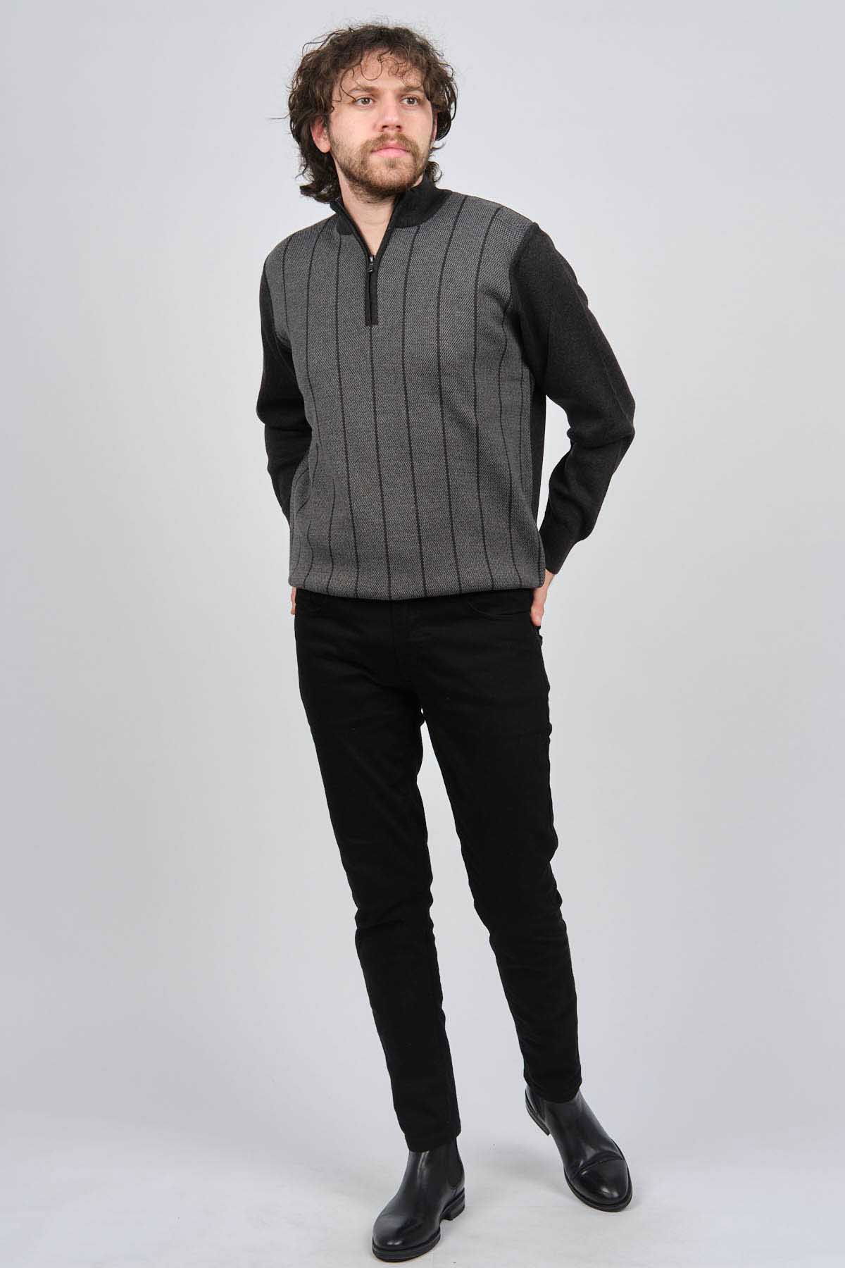 Pave Erkek Çizgi Desenli Fermuarlı Yün Kazak 4539190 Füme