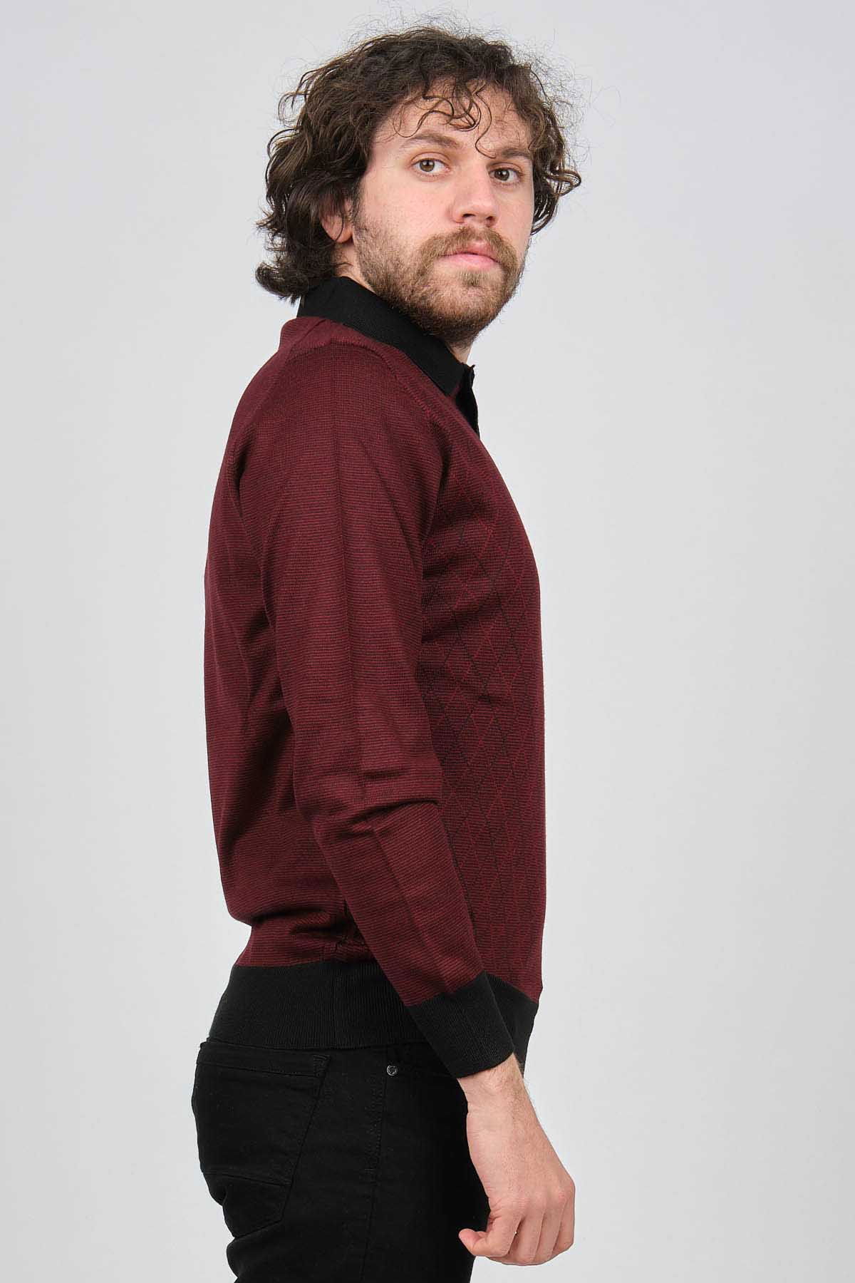 Pave Erkek Polo Yaka Desenli Yün Kazak 4537094 Bordo
