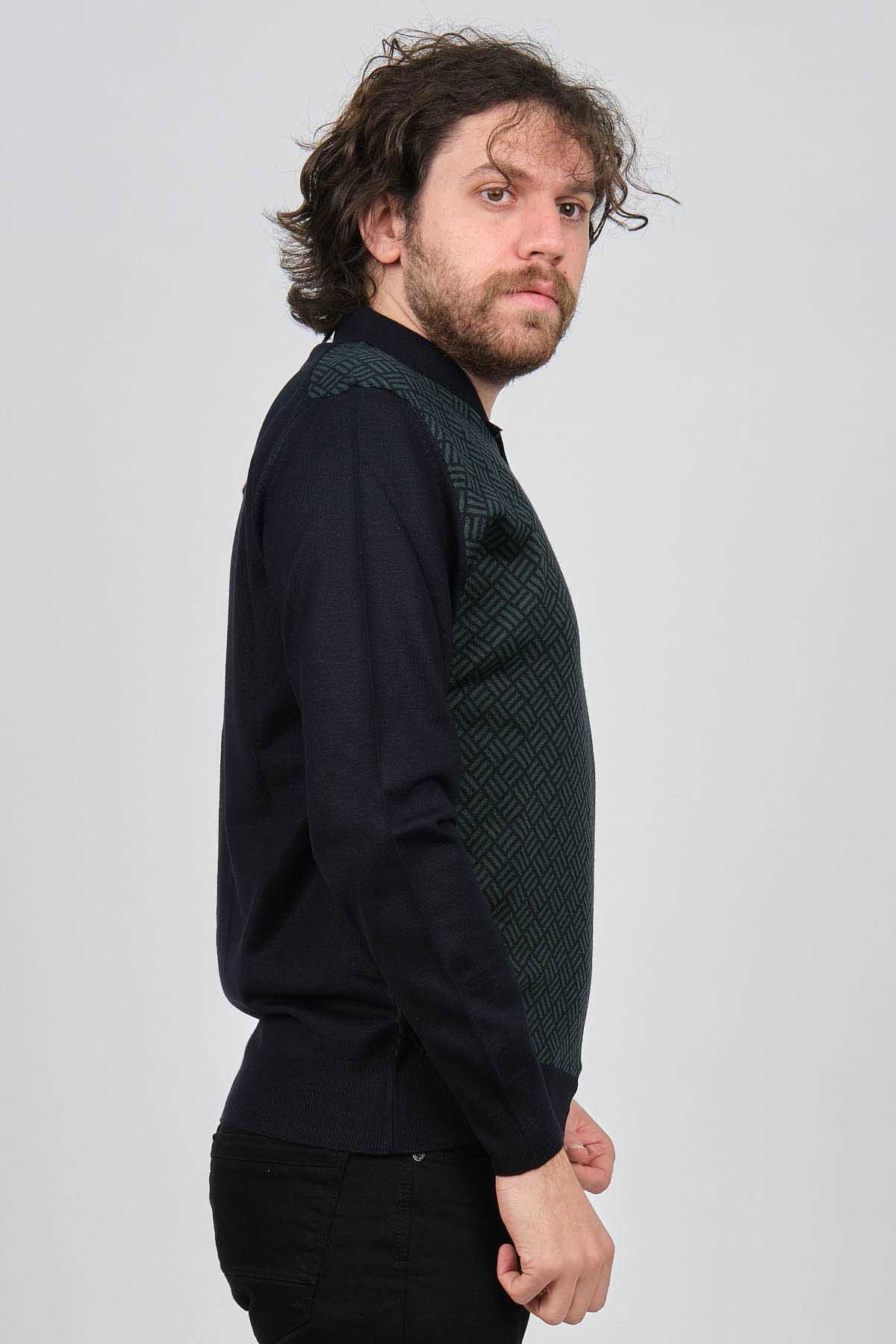 Pave Erkek Polo Yaka Desenli Yün Kazak 4537134 Lacivert
