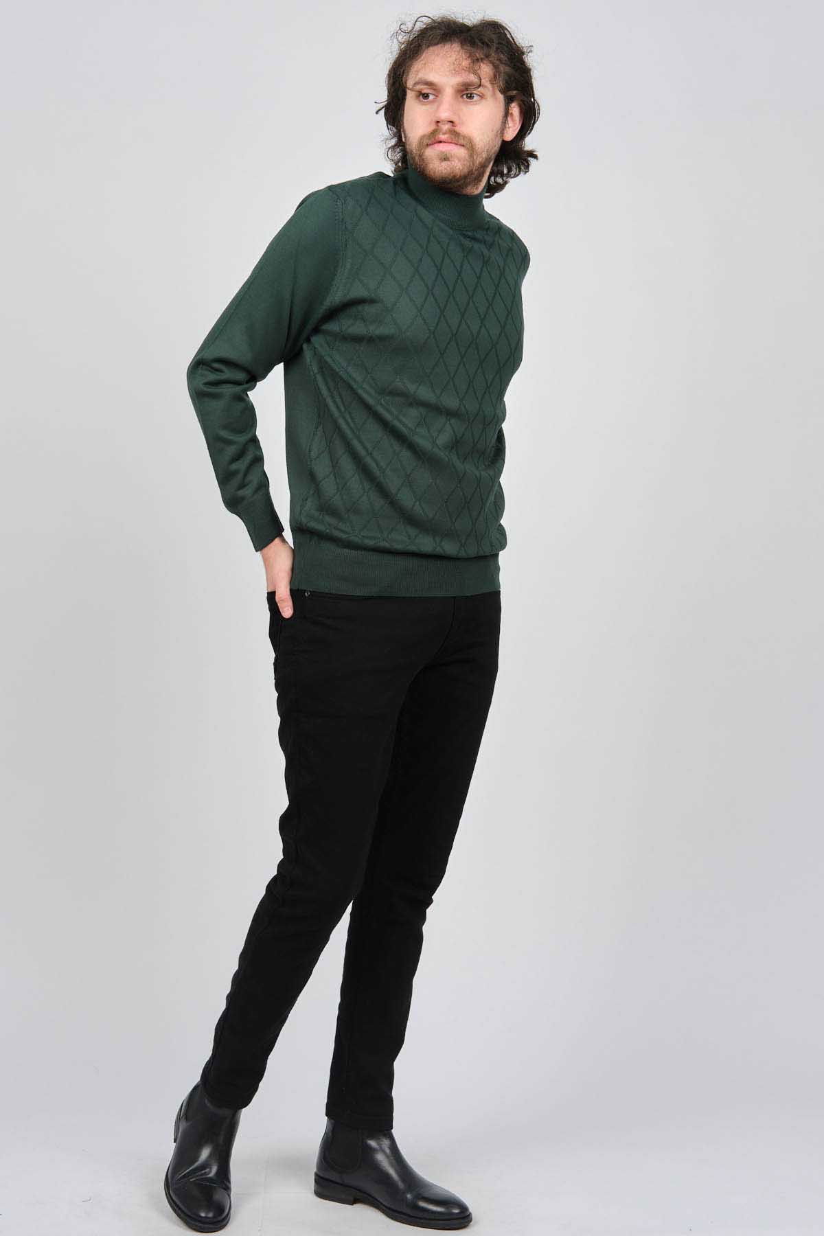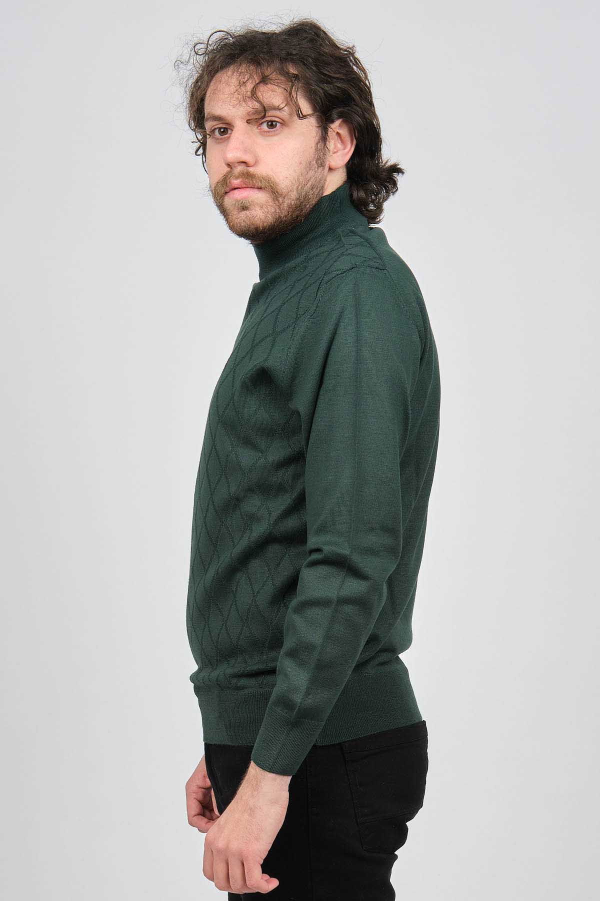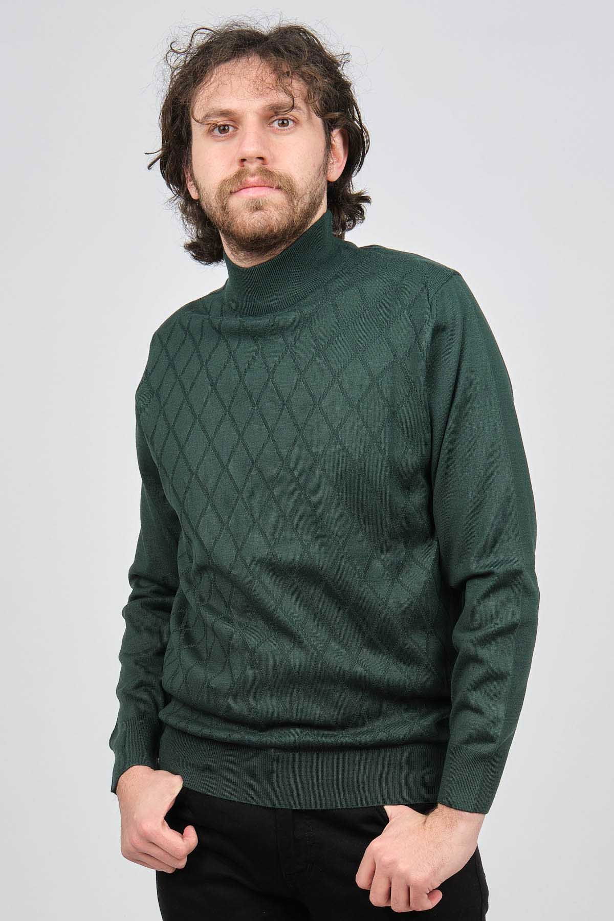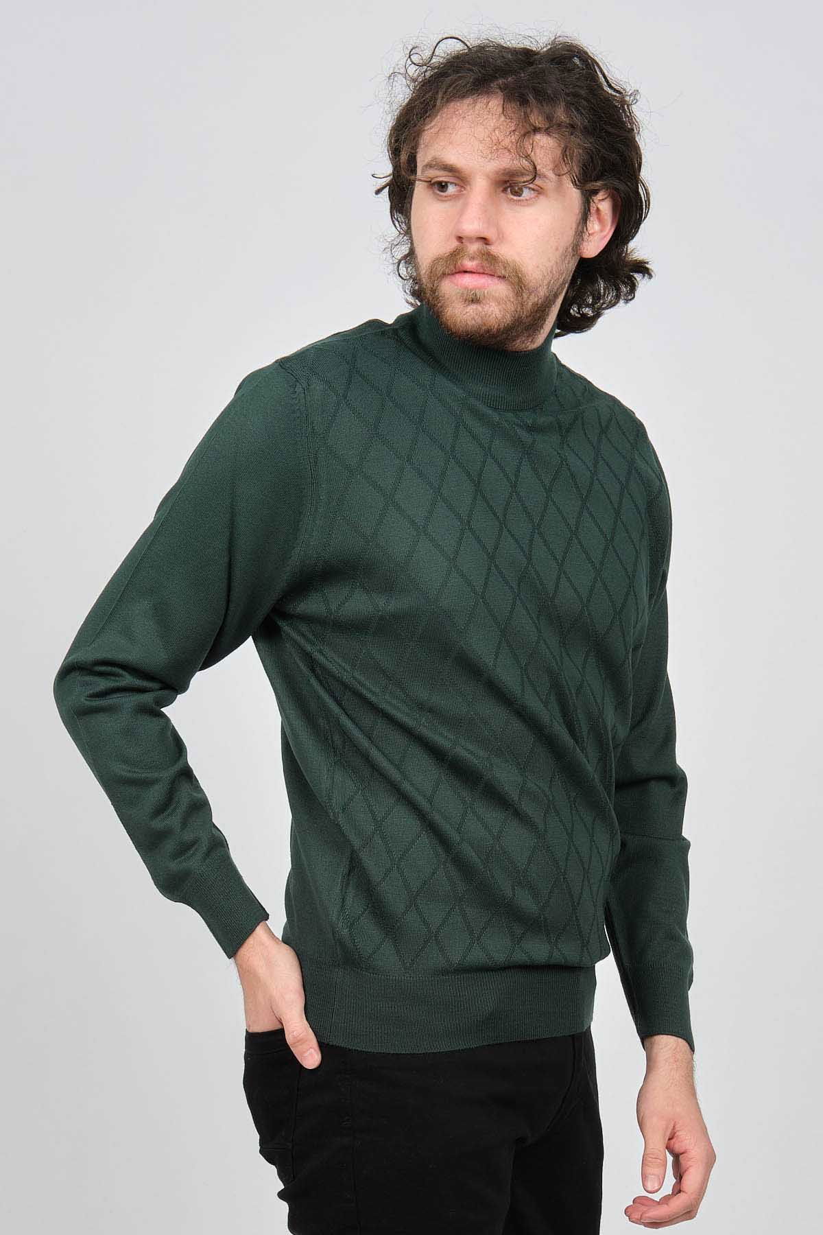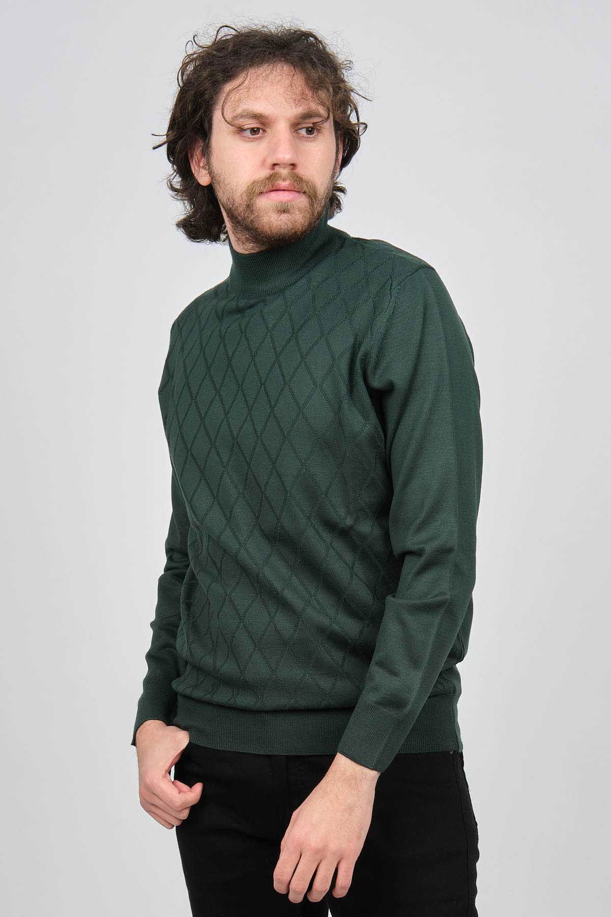 Pave Erkek Yarım Balıkçı Baklava Desenli Yün Kazak 4537220 Yeşil