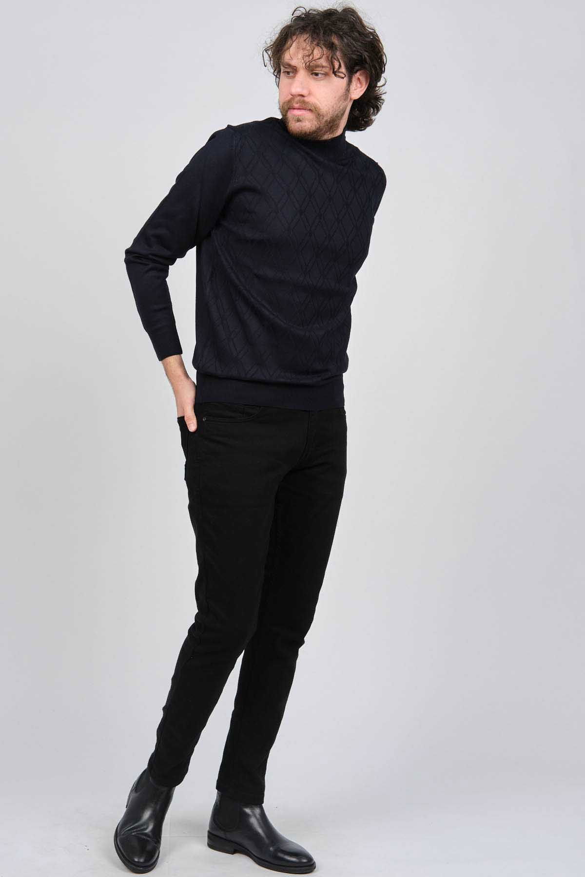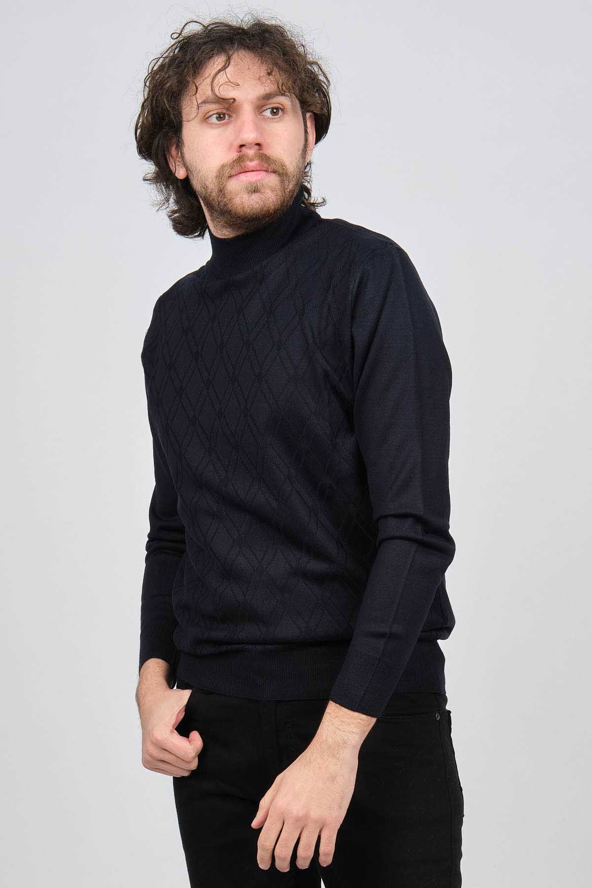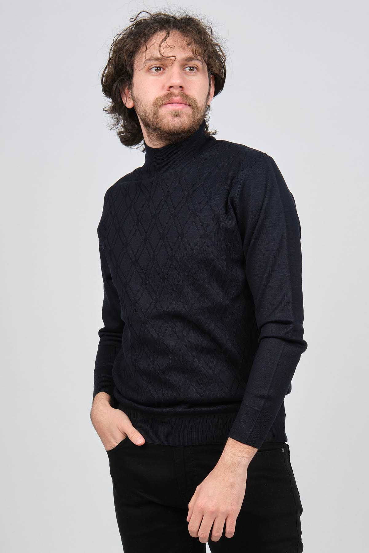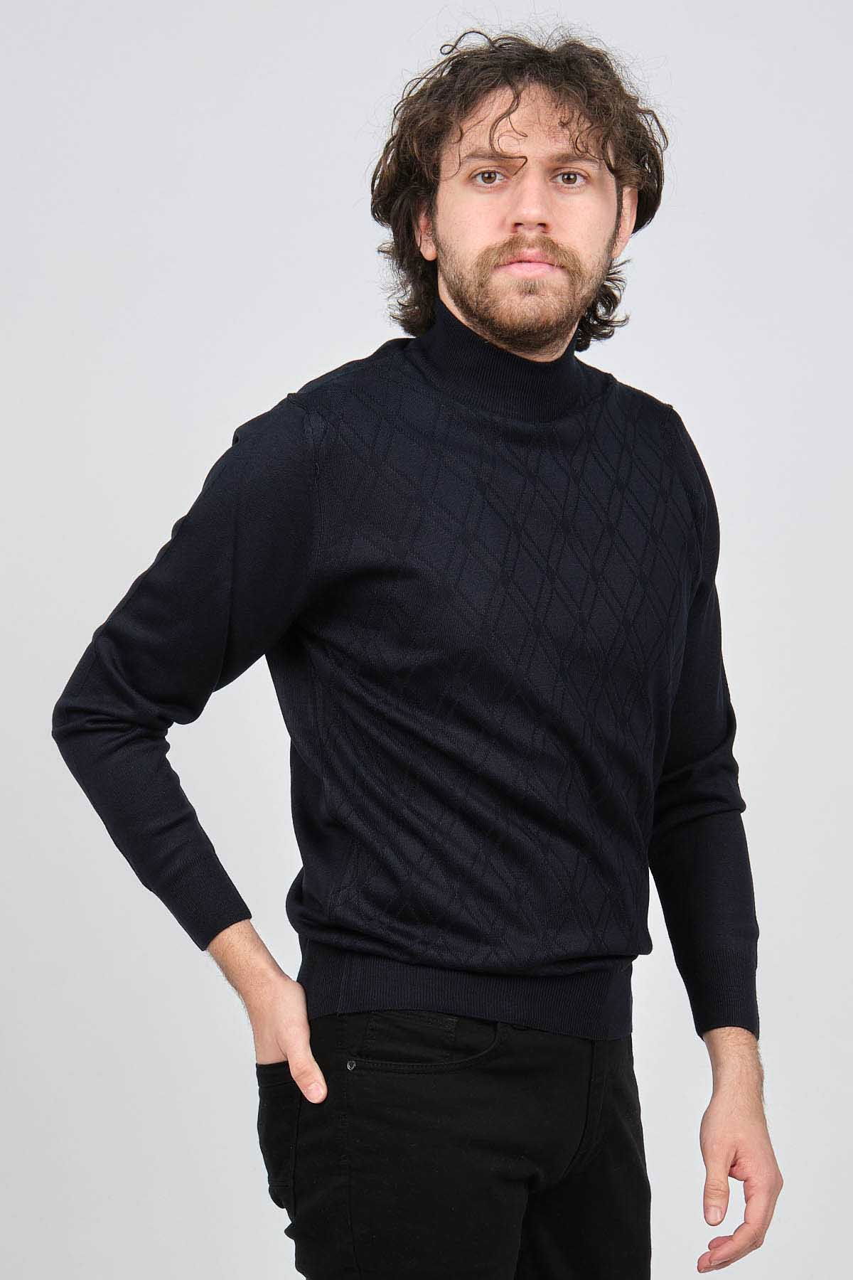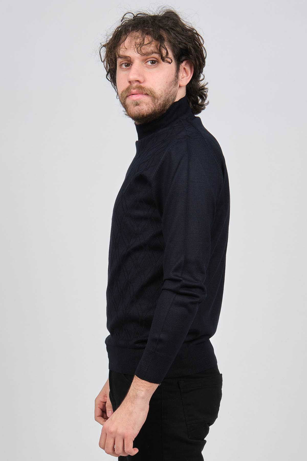 Pave Erkek Yarım Balıkçı Desenli Yün Kazak 4537210 Lacivert