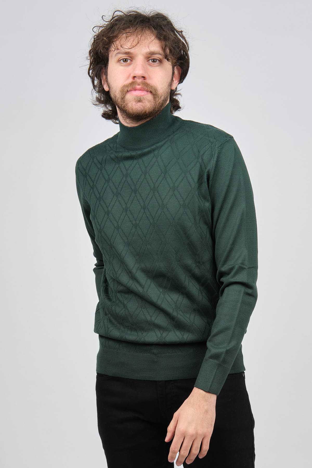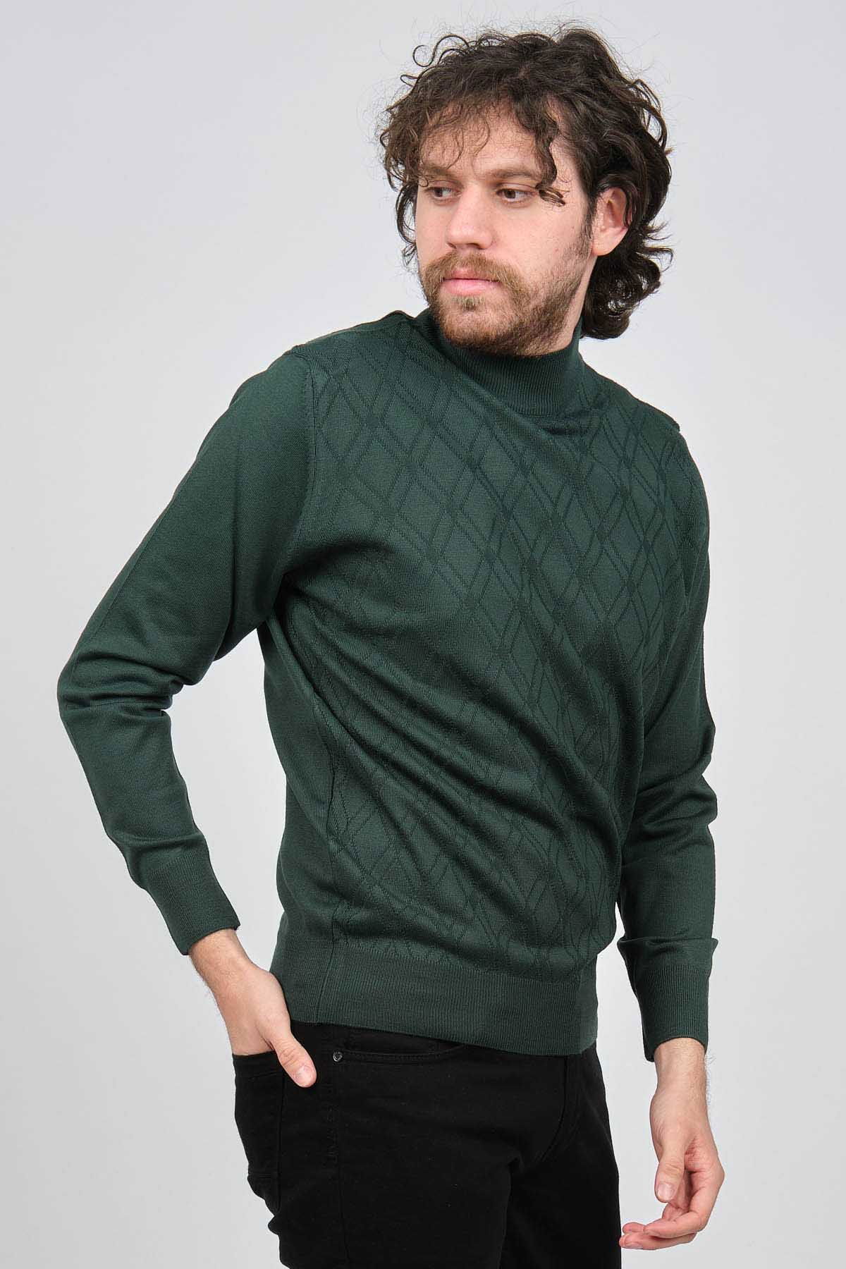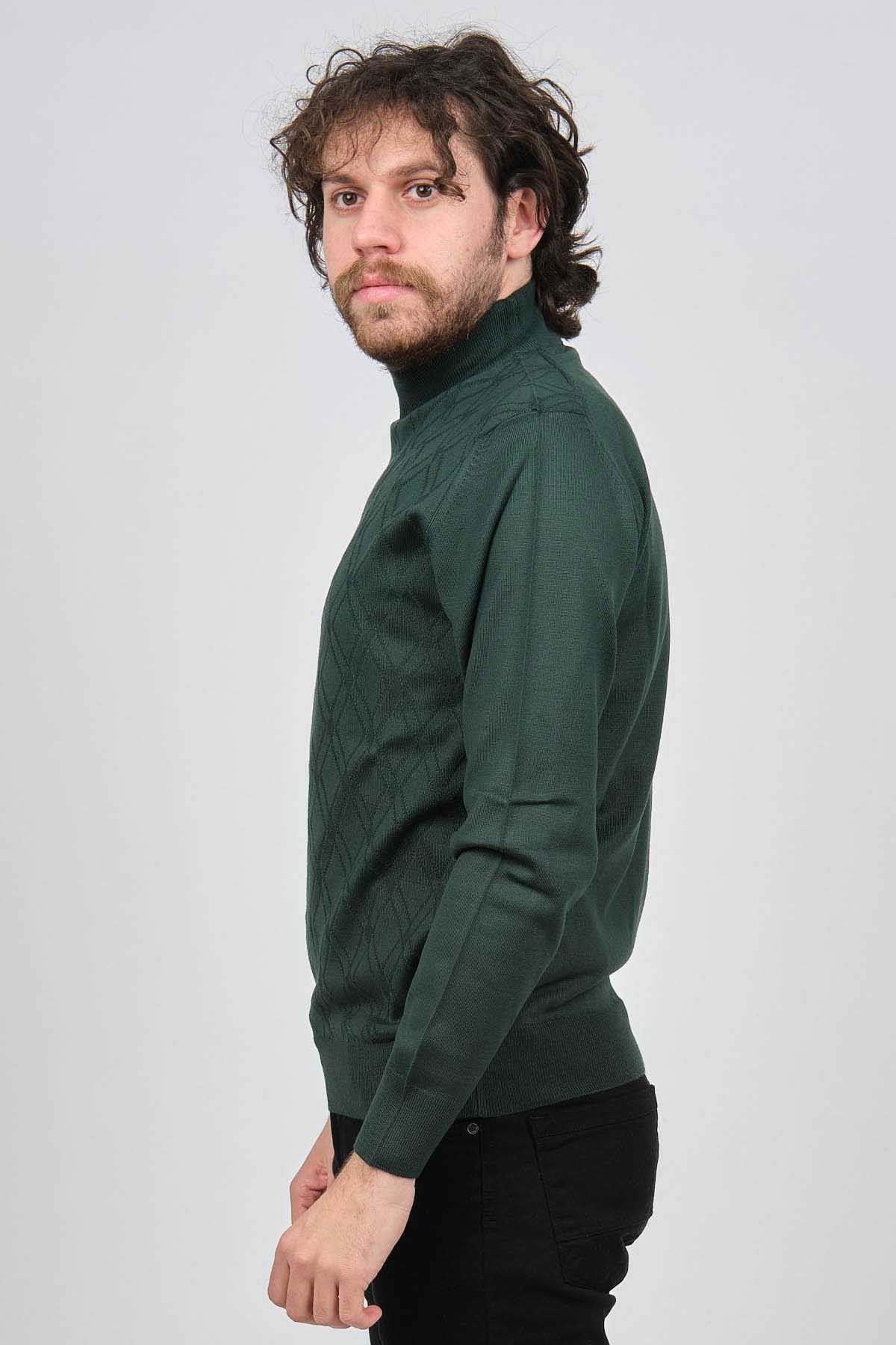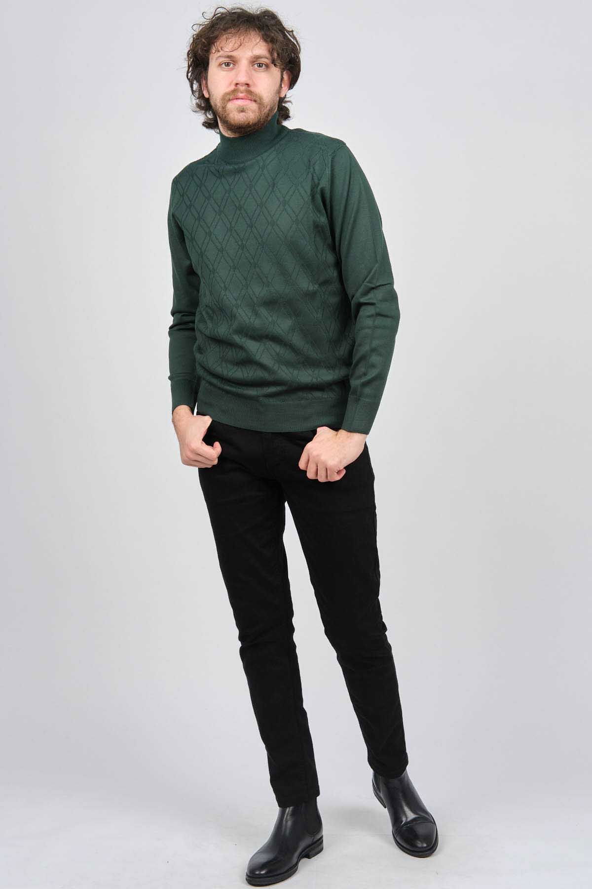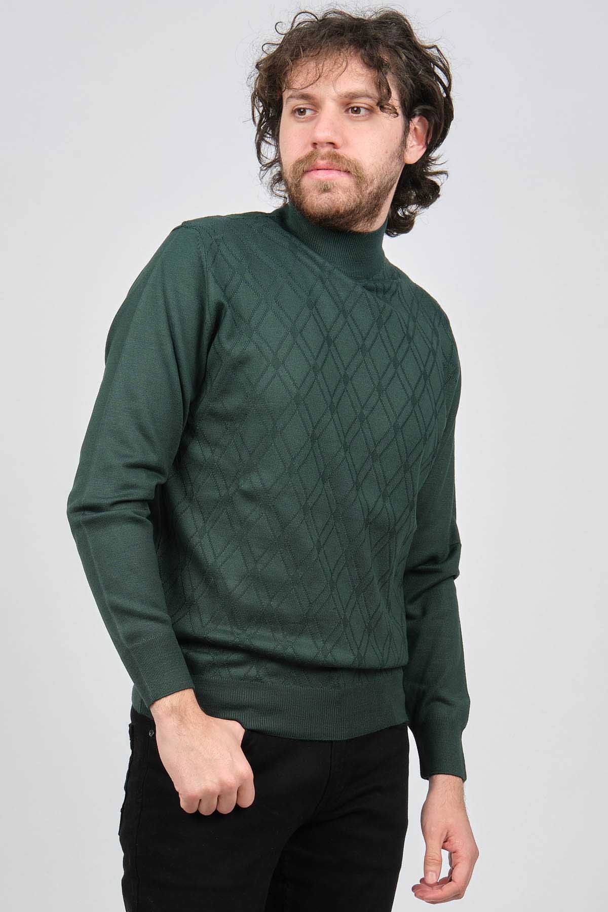 Pave Erkek Yarım Balıkçı Desenli Yün Kazak 4537210 Yeşil