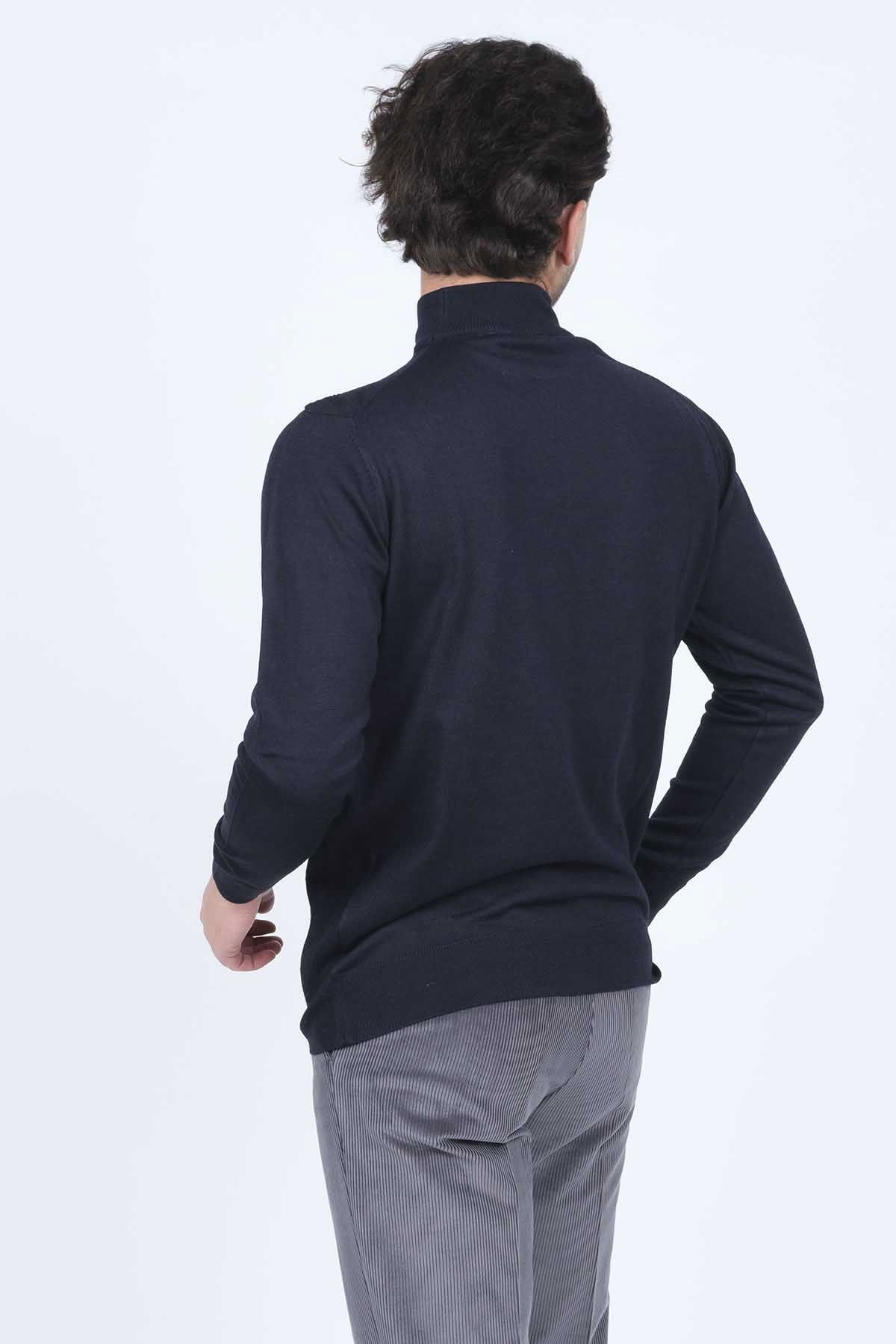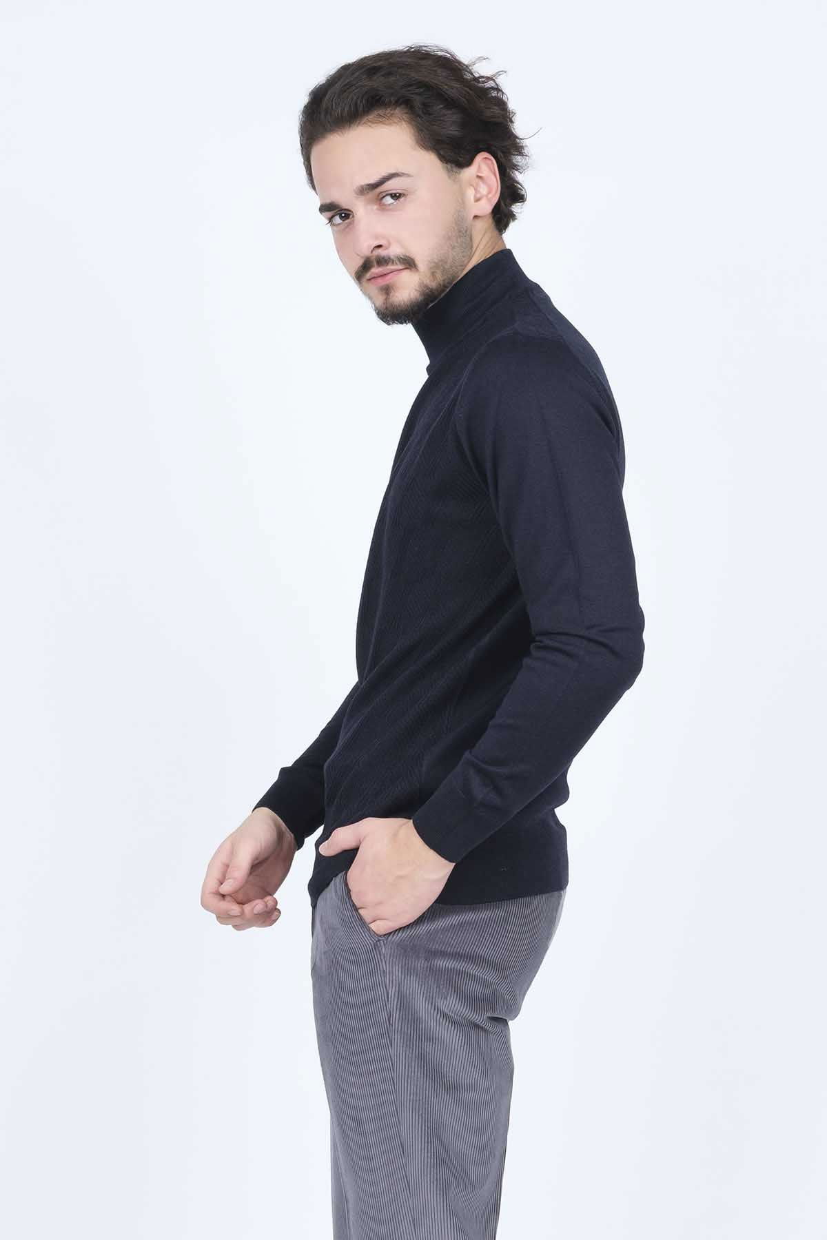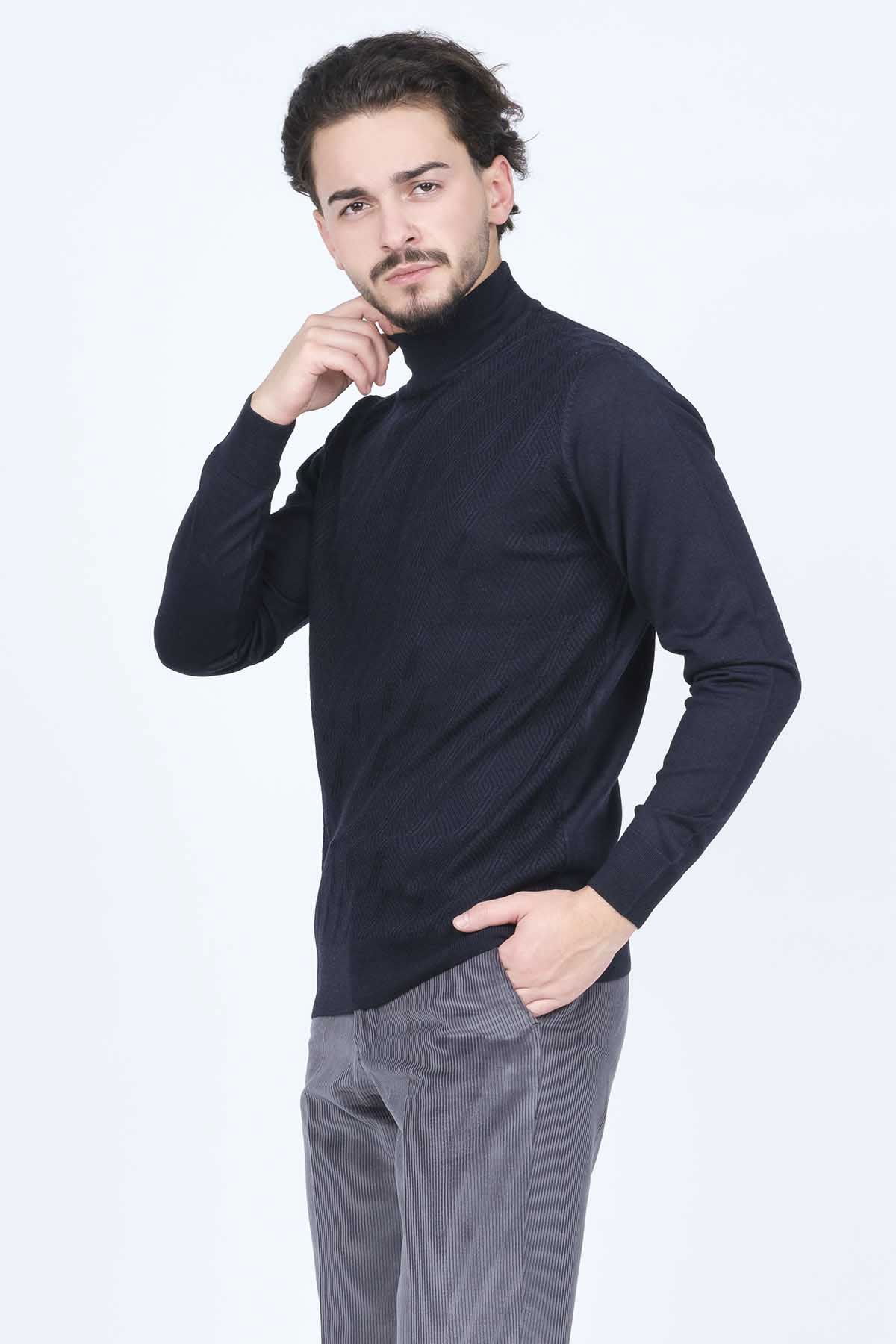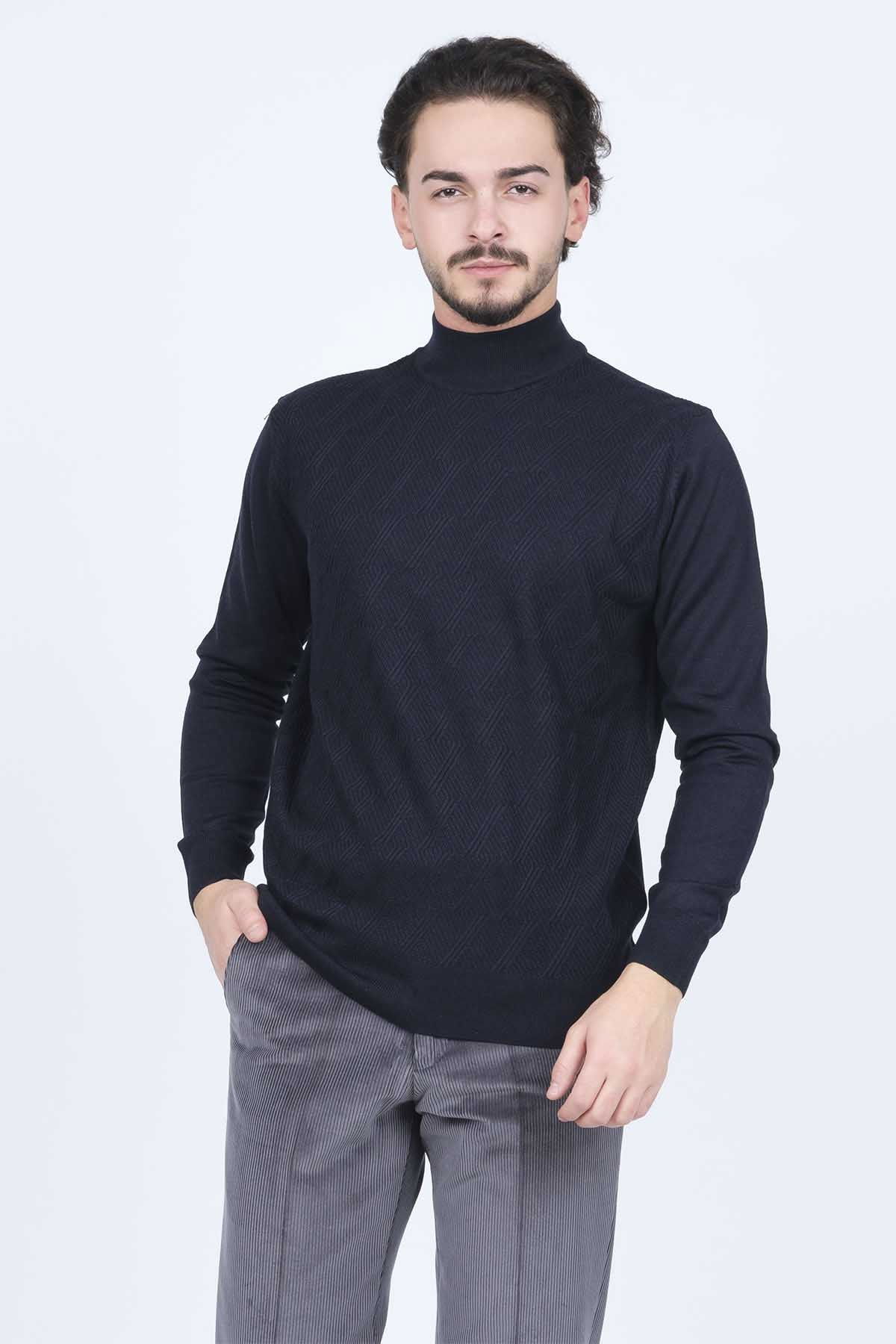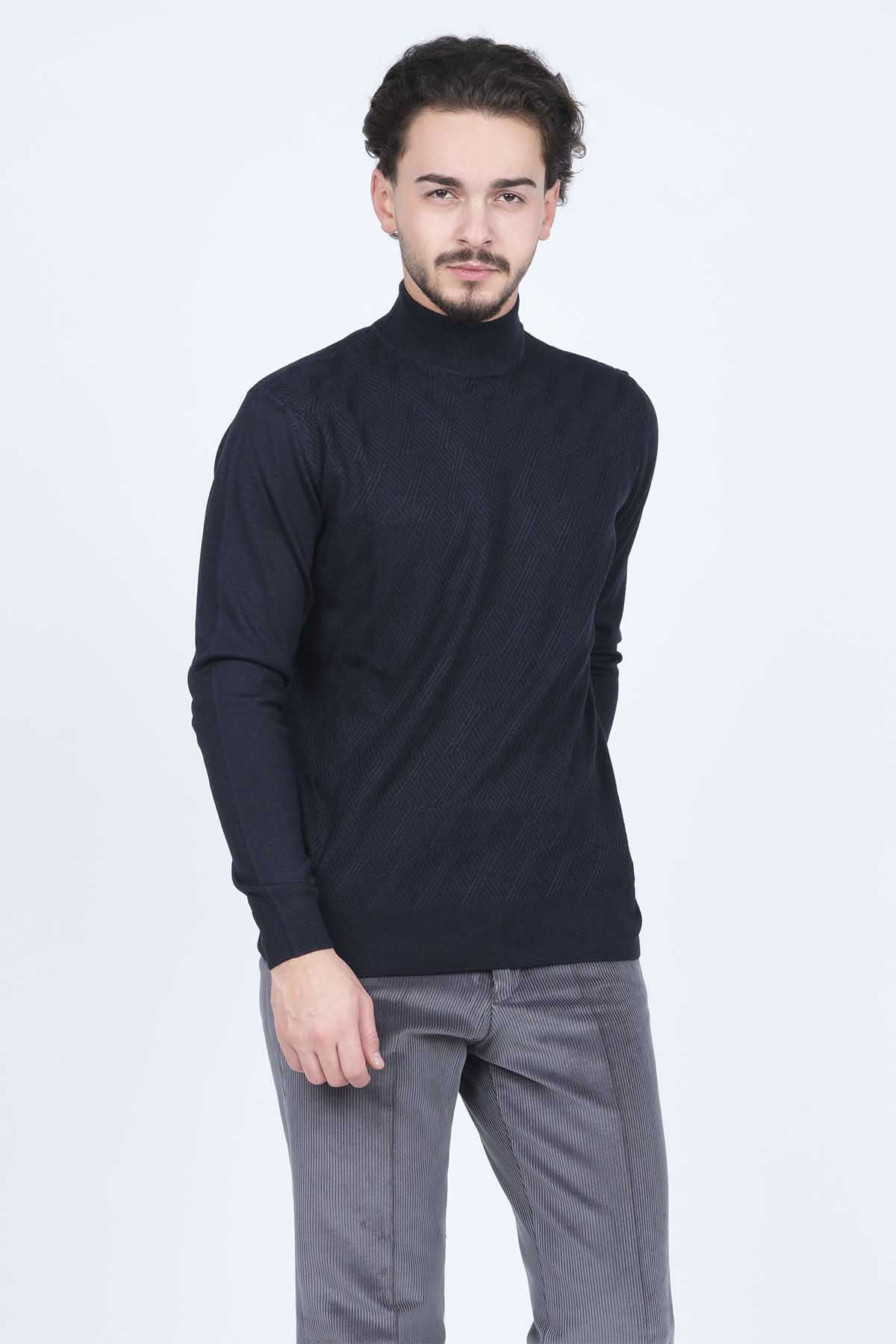 Detay: Yarım balıkçı yaka, desenli yün triko kazak;