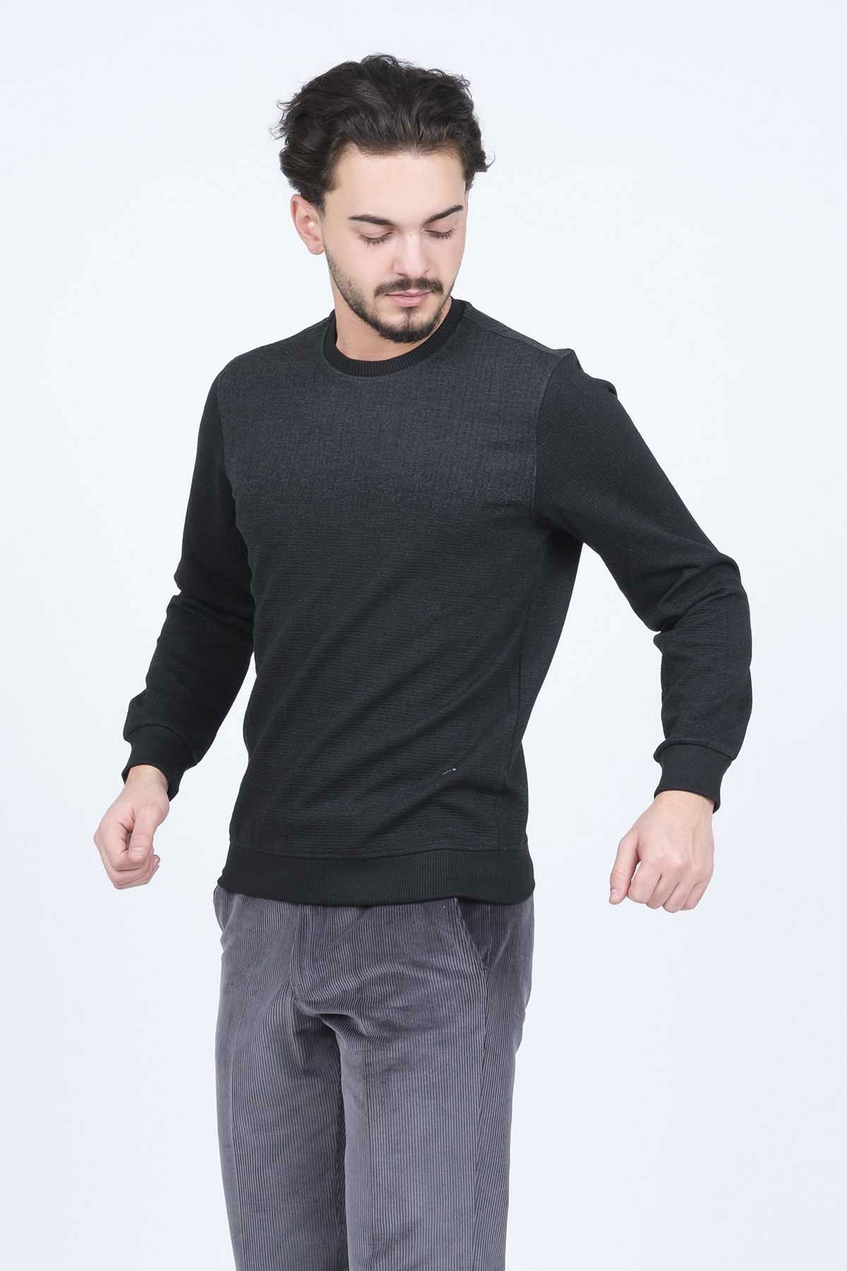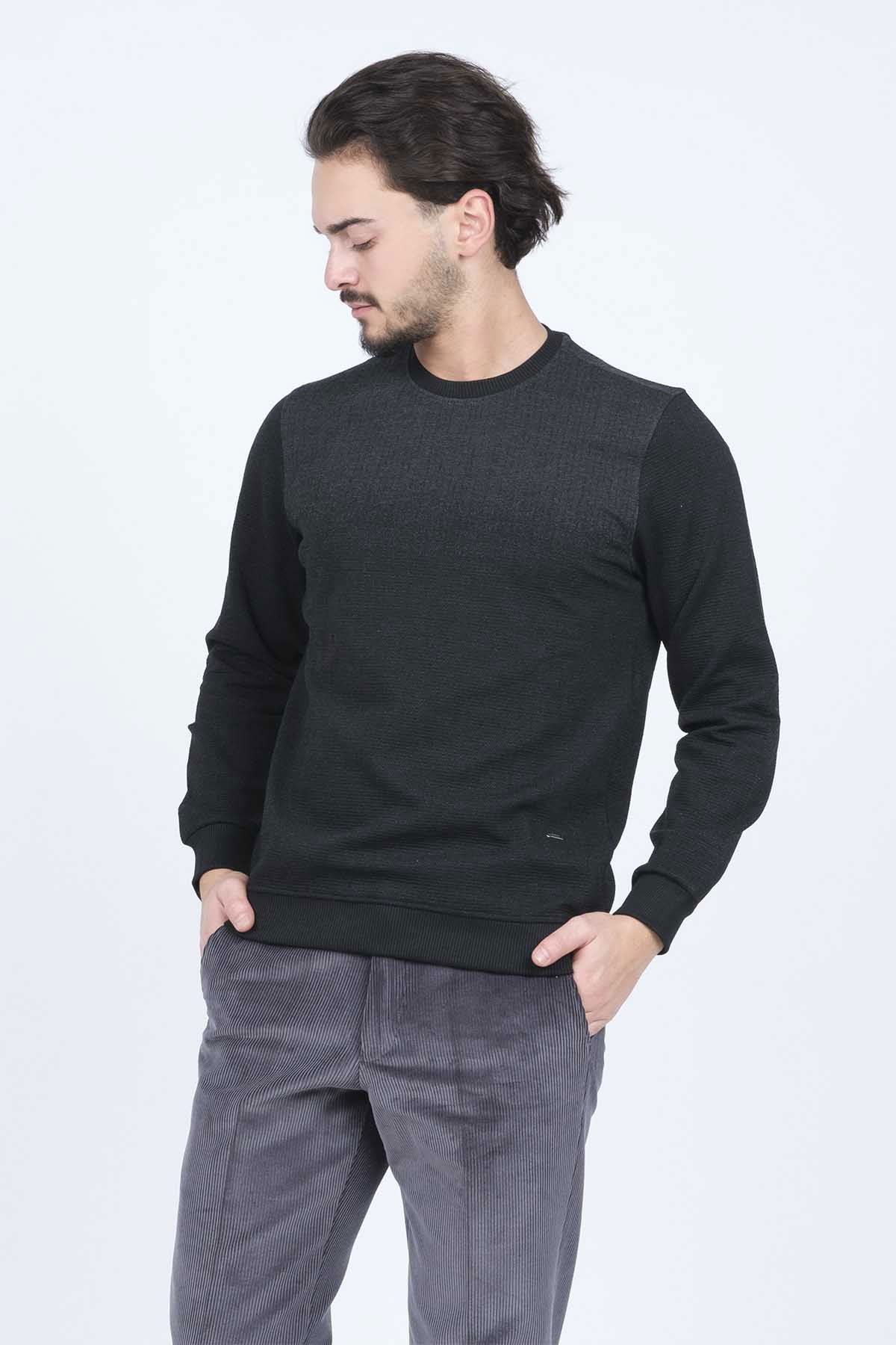 Raymons Erkek Desenli Bisiklet Yaka Triko Sweat 6782267 Siyah