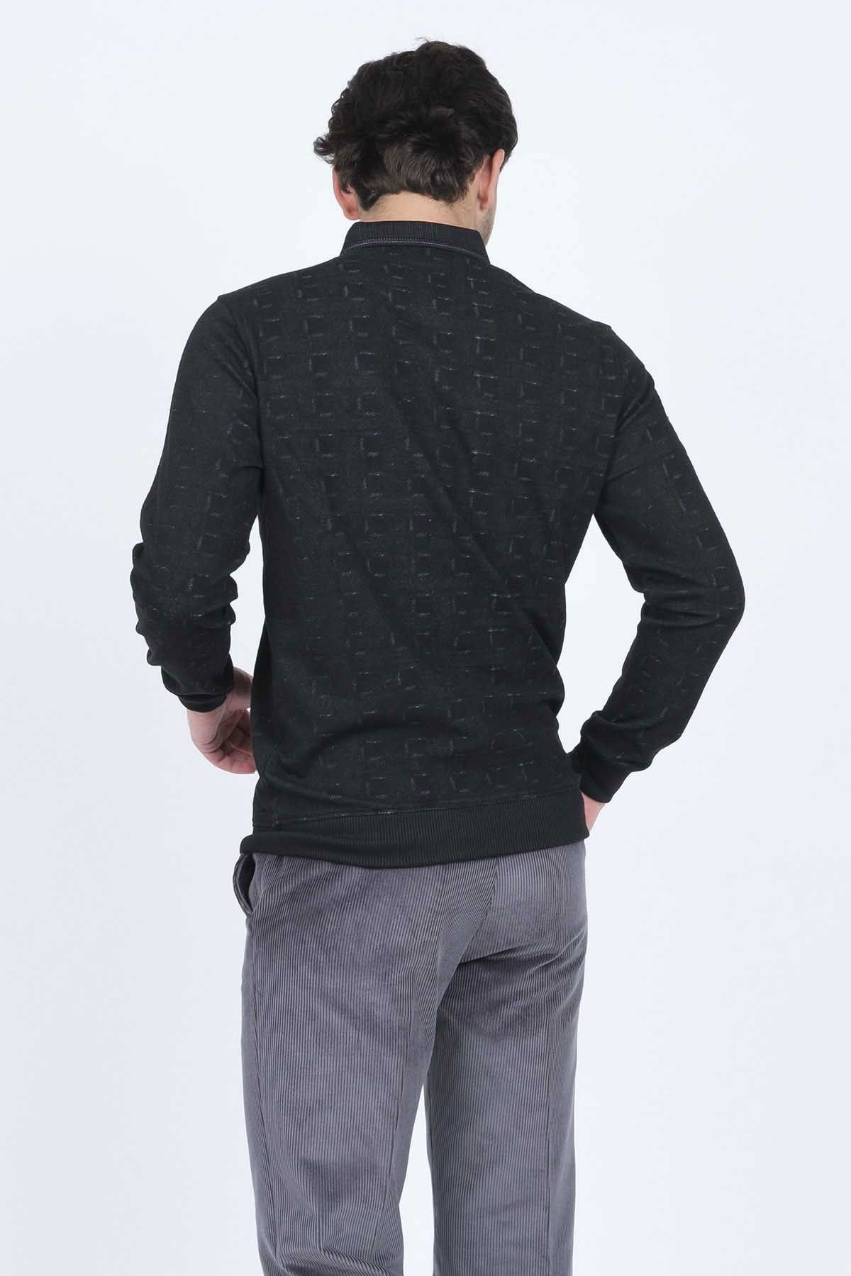 Raymons Erkek Desenli Polo Yaka Triko Sweat 6782251 Siyah