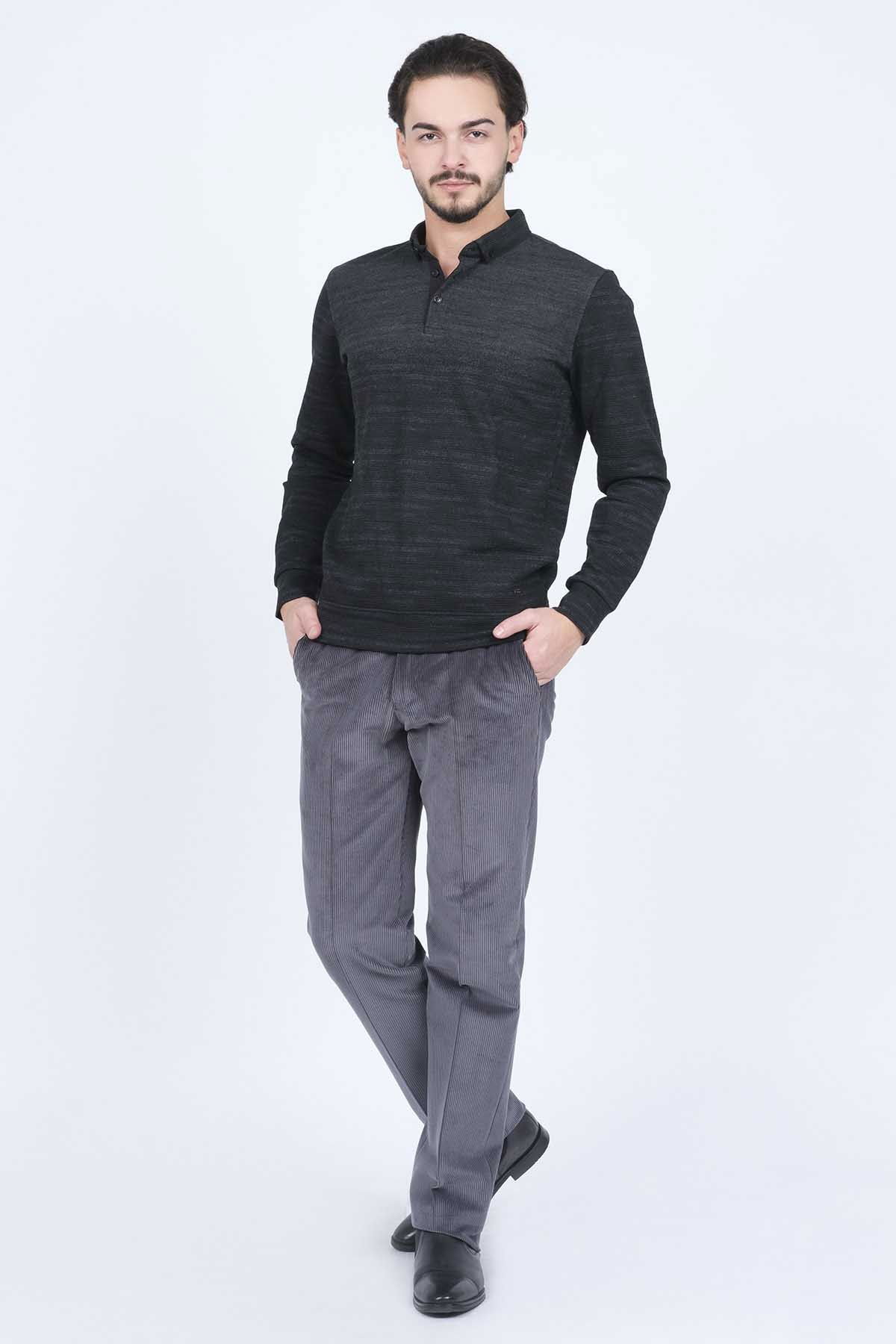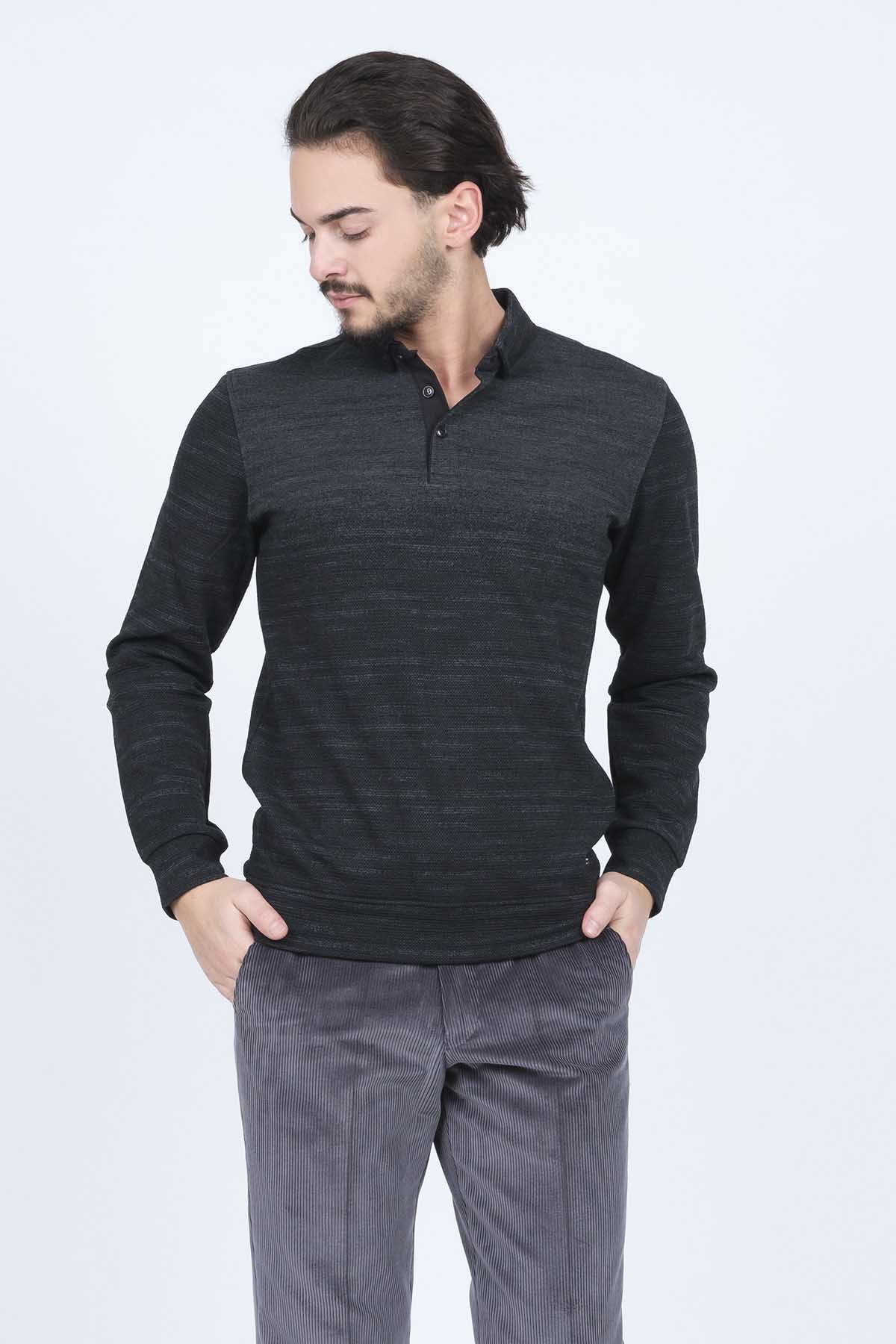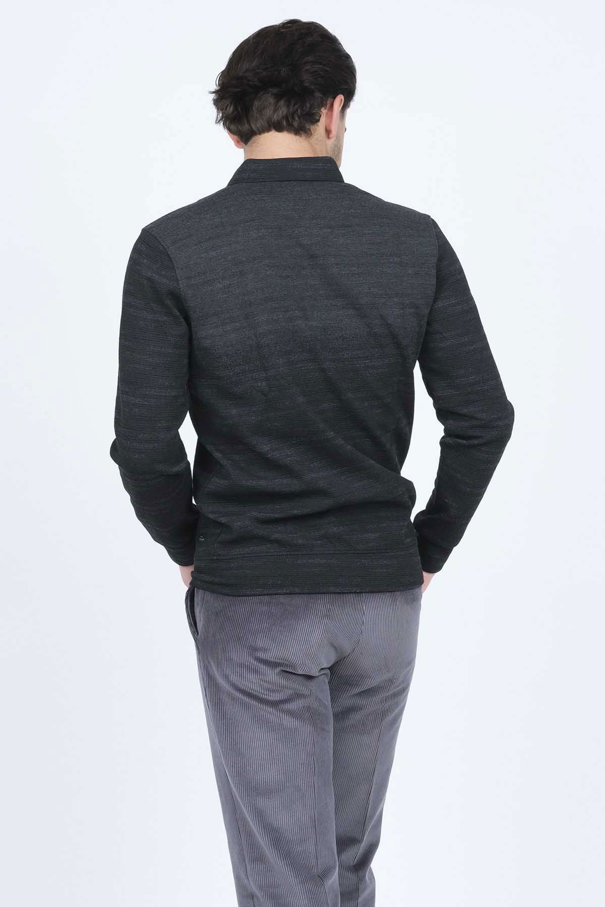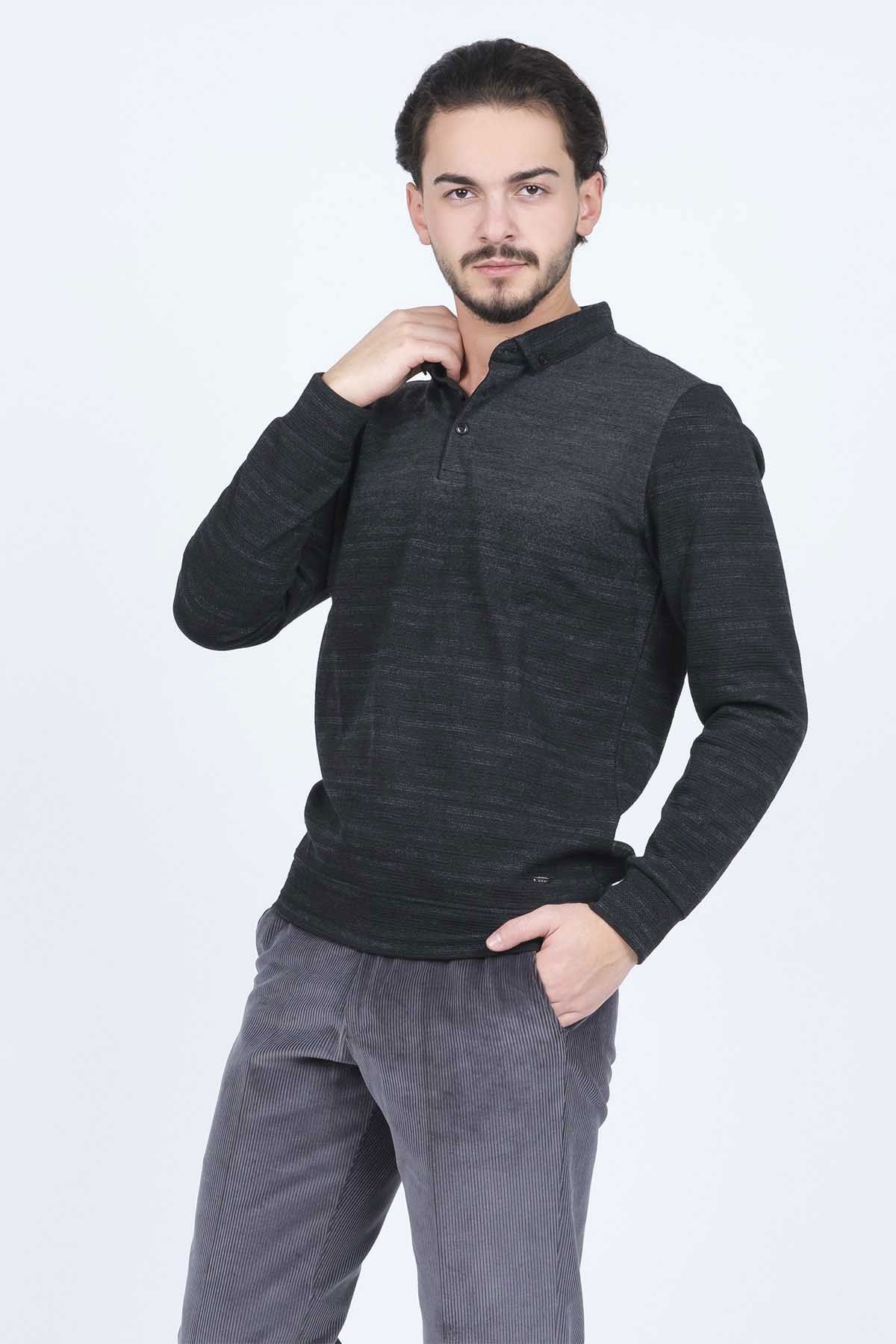 Raymons Erkek Desenli Polo Yaka Triko Sweat 6782257 Siyah