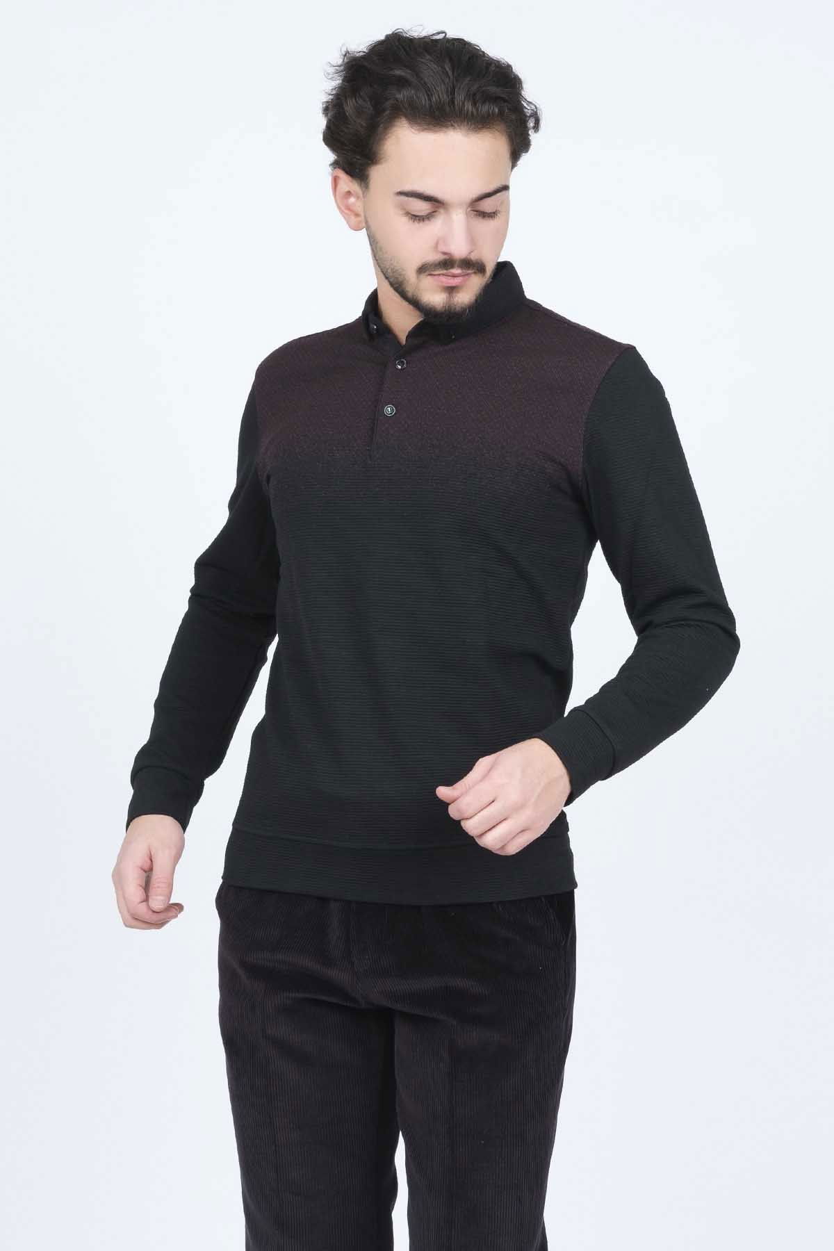Raymons Erkek Desenli Polo Yaka Triko Sweat 6782258 Bordo