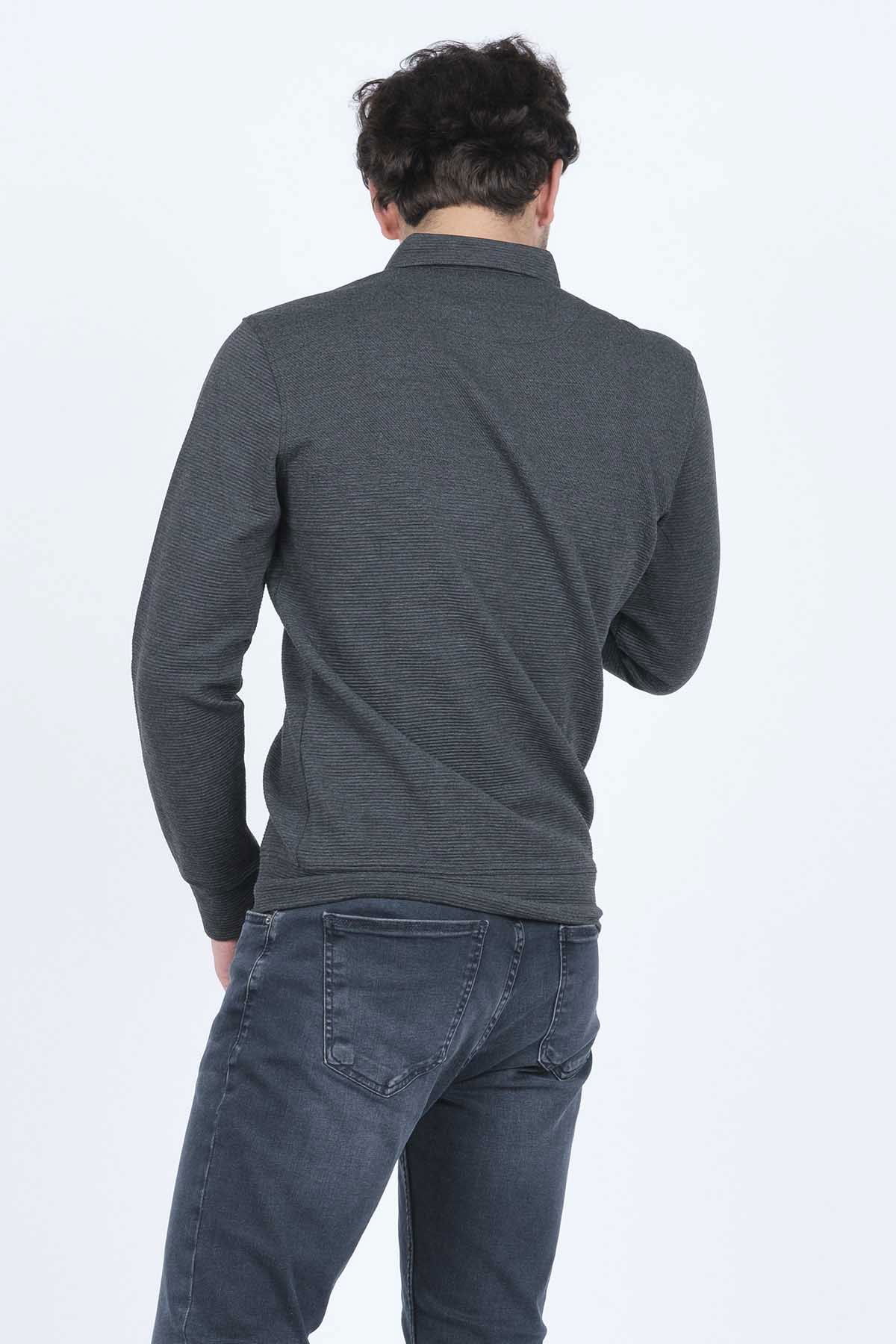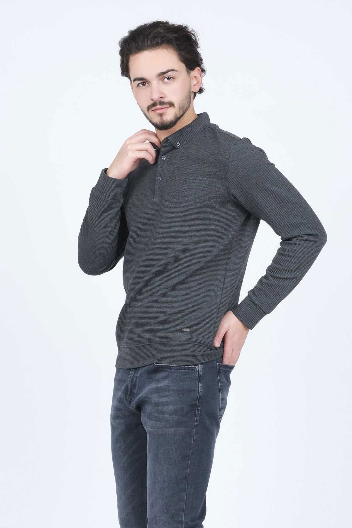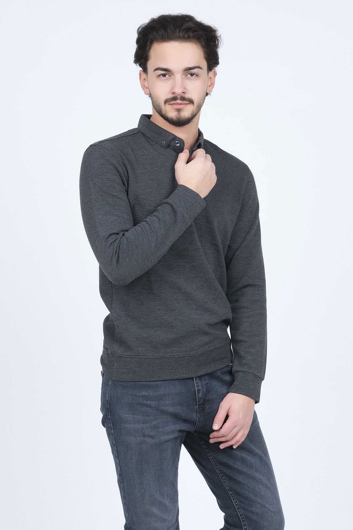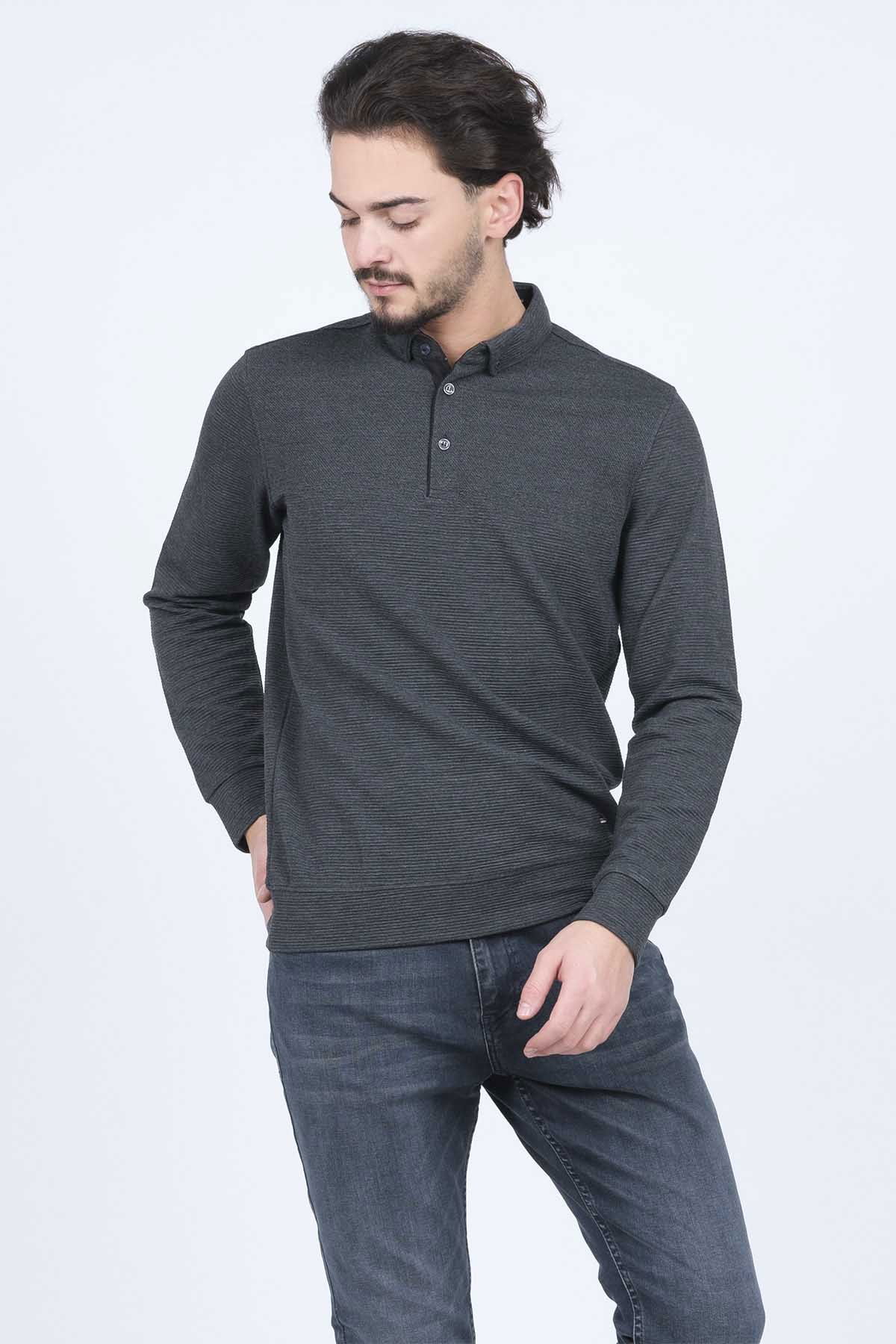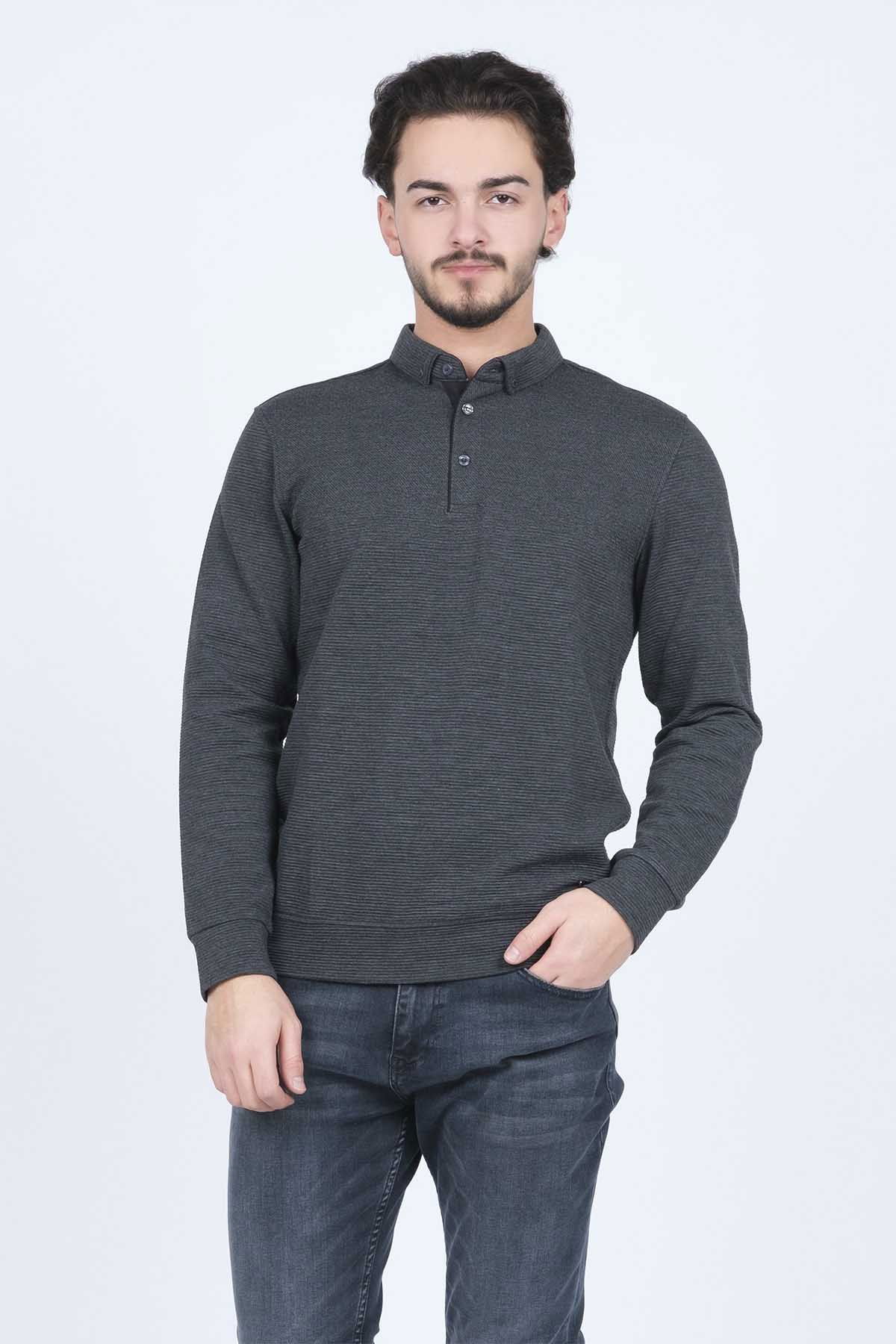 Raymons Erkek Desenli Polo Yaka Triko Sweat 6782258 Siyah