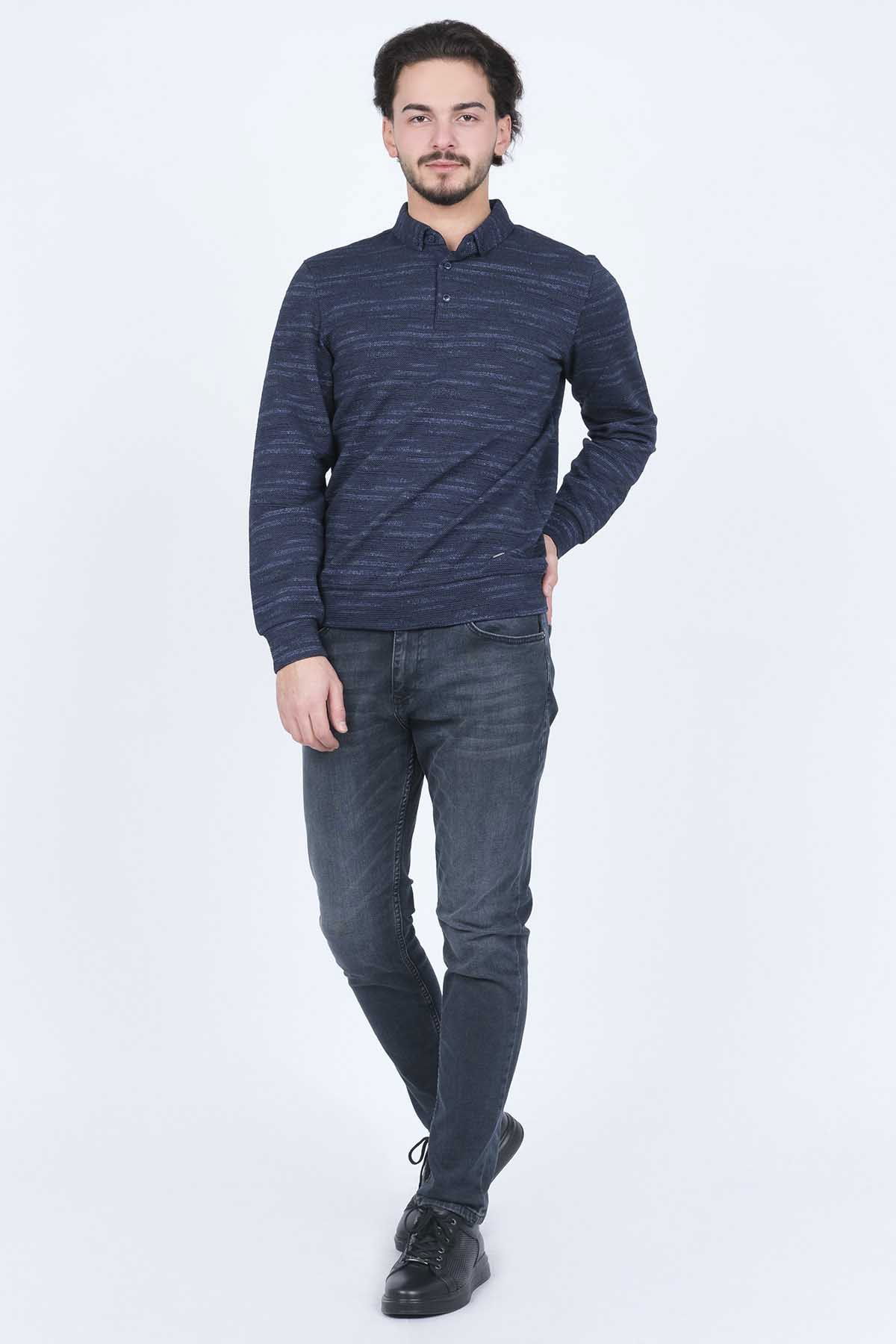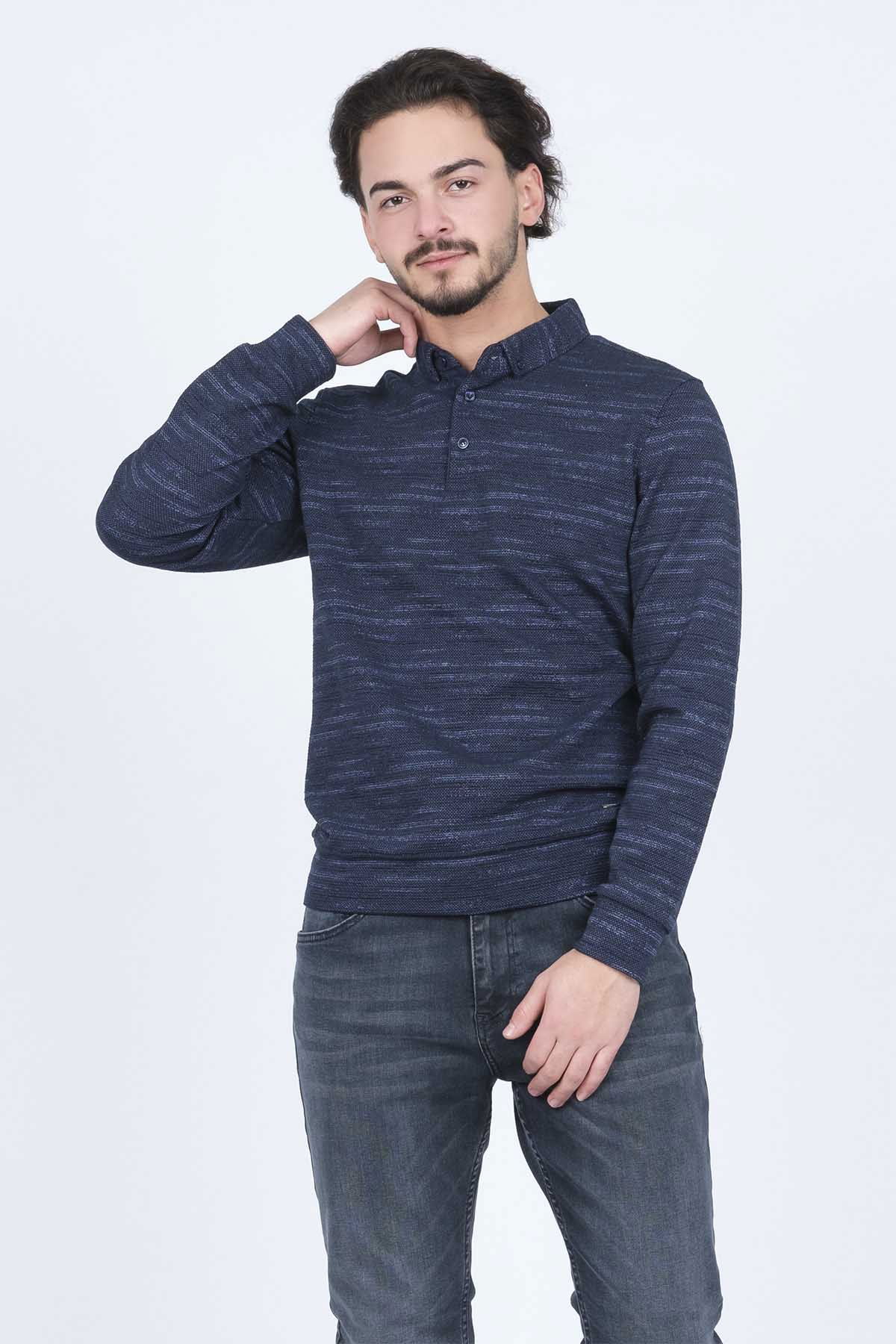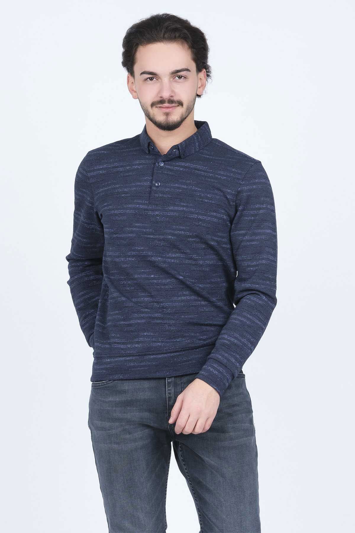 Raymons Erkek Desenli Polo Yaka Triko Sweat 6782273 Indigo