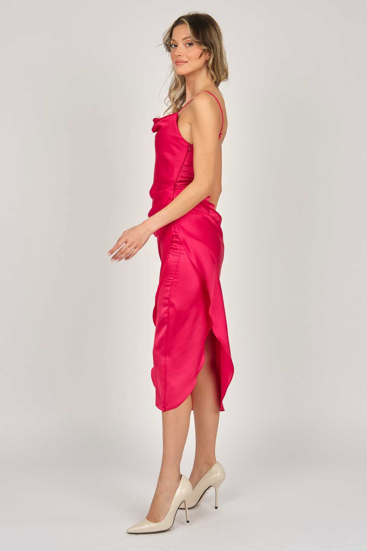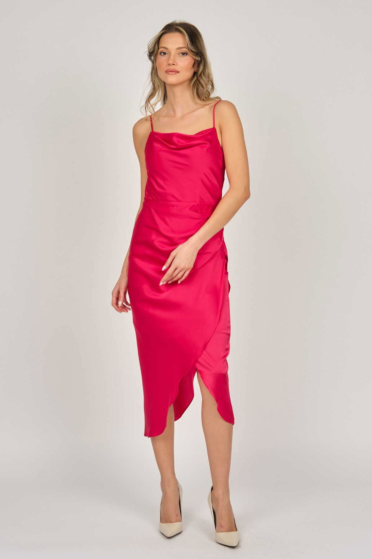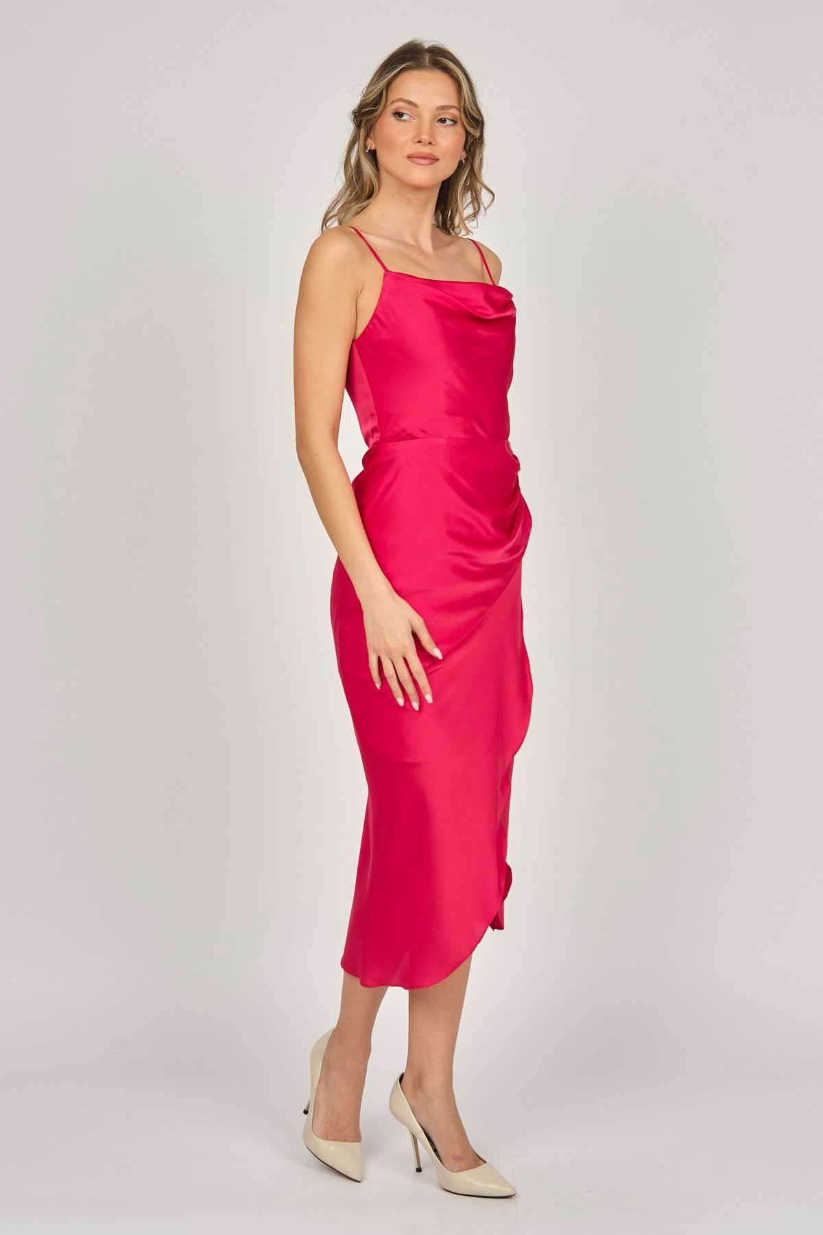 Detay: Degaje yaka, anvelop, askı detaylı, astarlı abiye elbise;