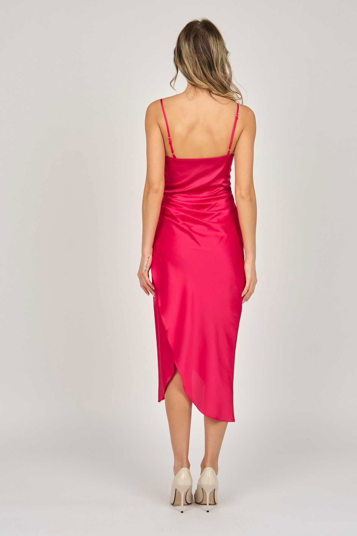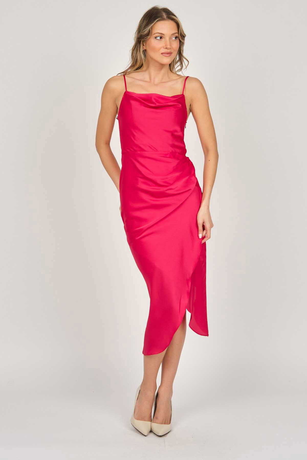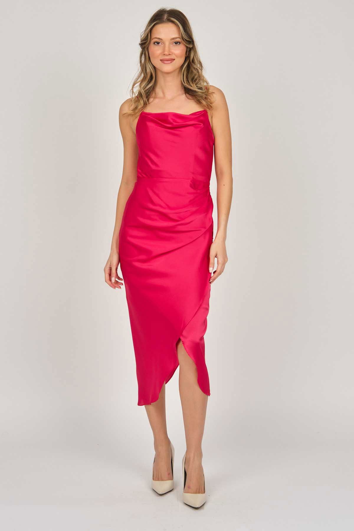 Detay: Degaje yaka, anvelop, askı detaylı, astarlı abiye elbise;