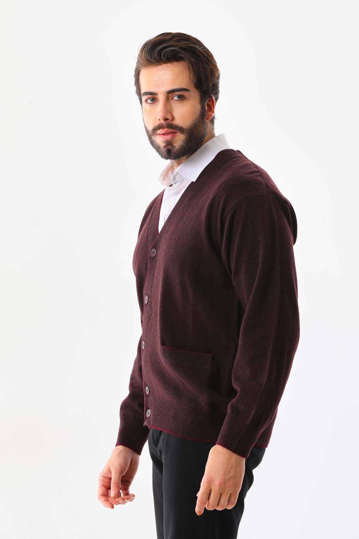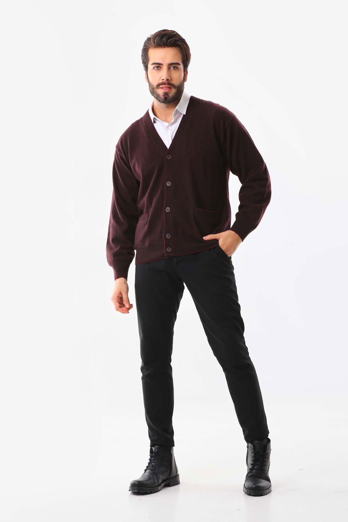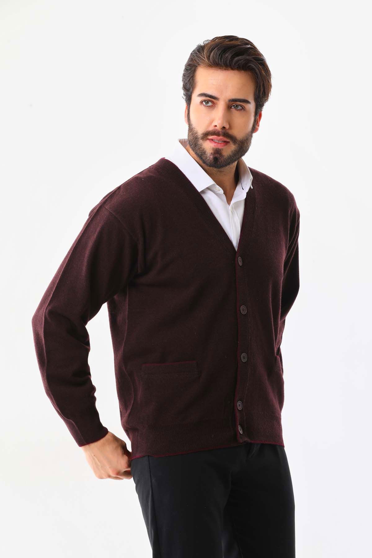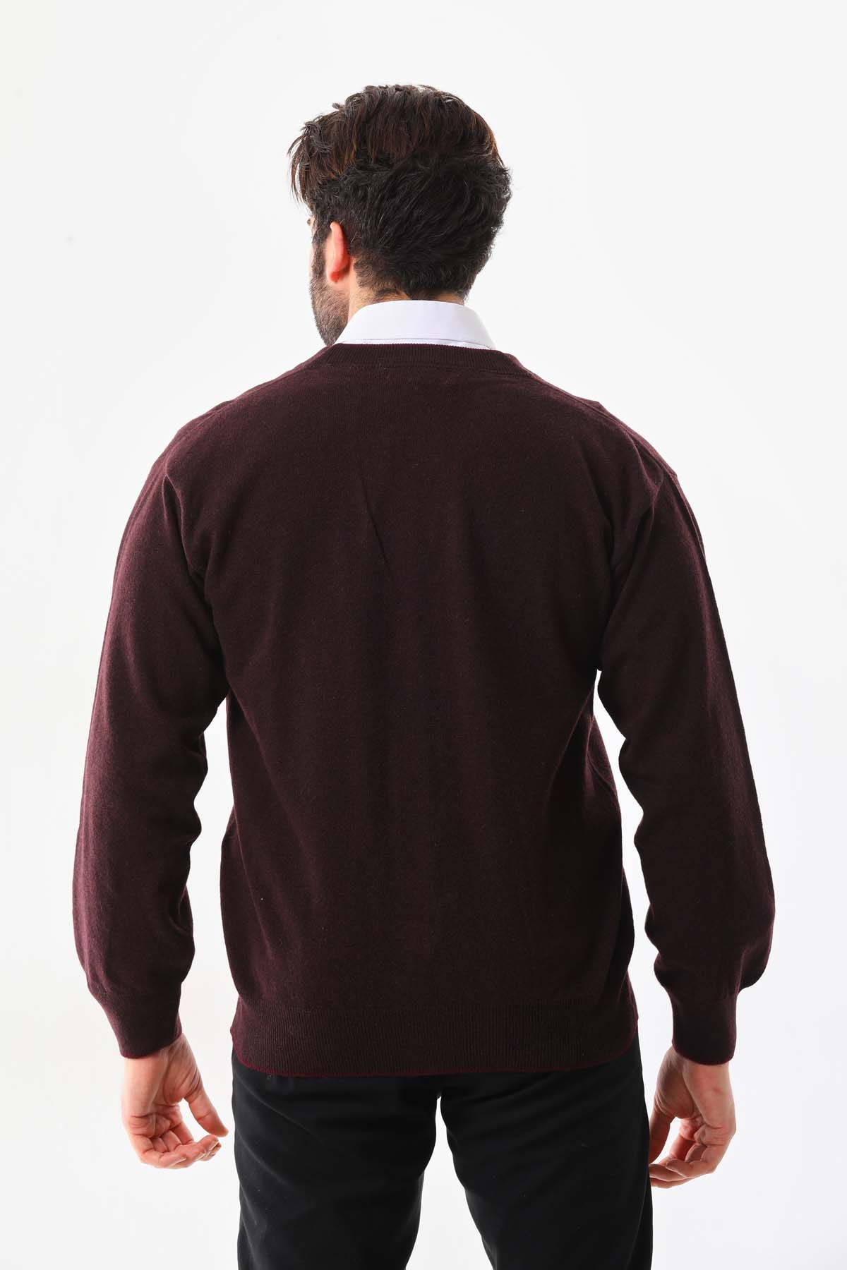 Sanfa Erkek V Yaka Saf Yün Hırka 2634 Bordo