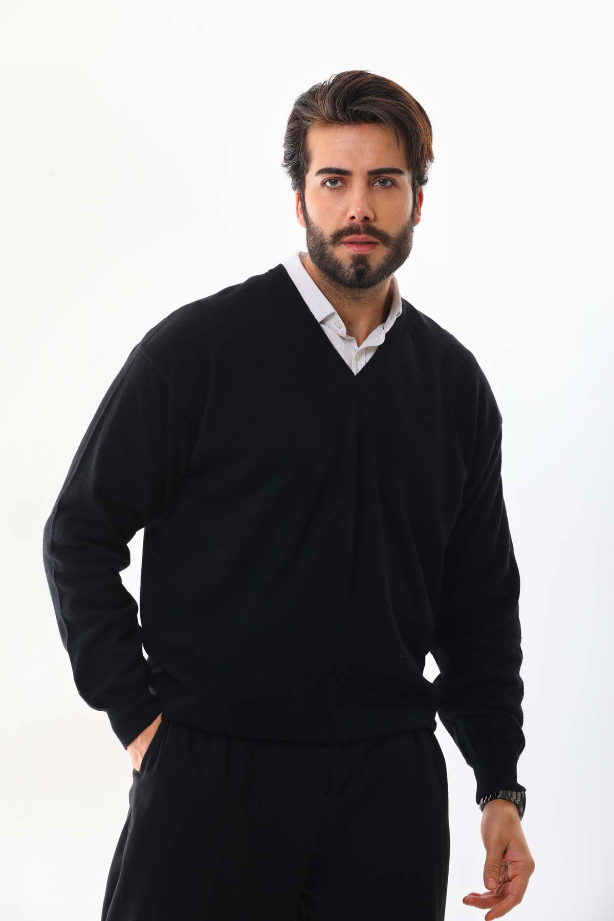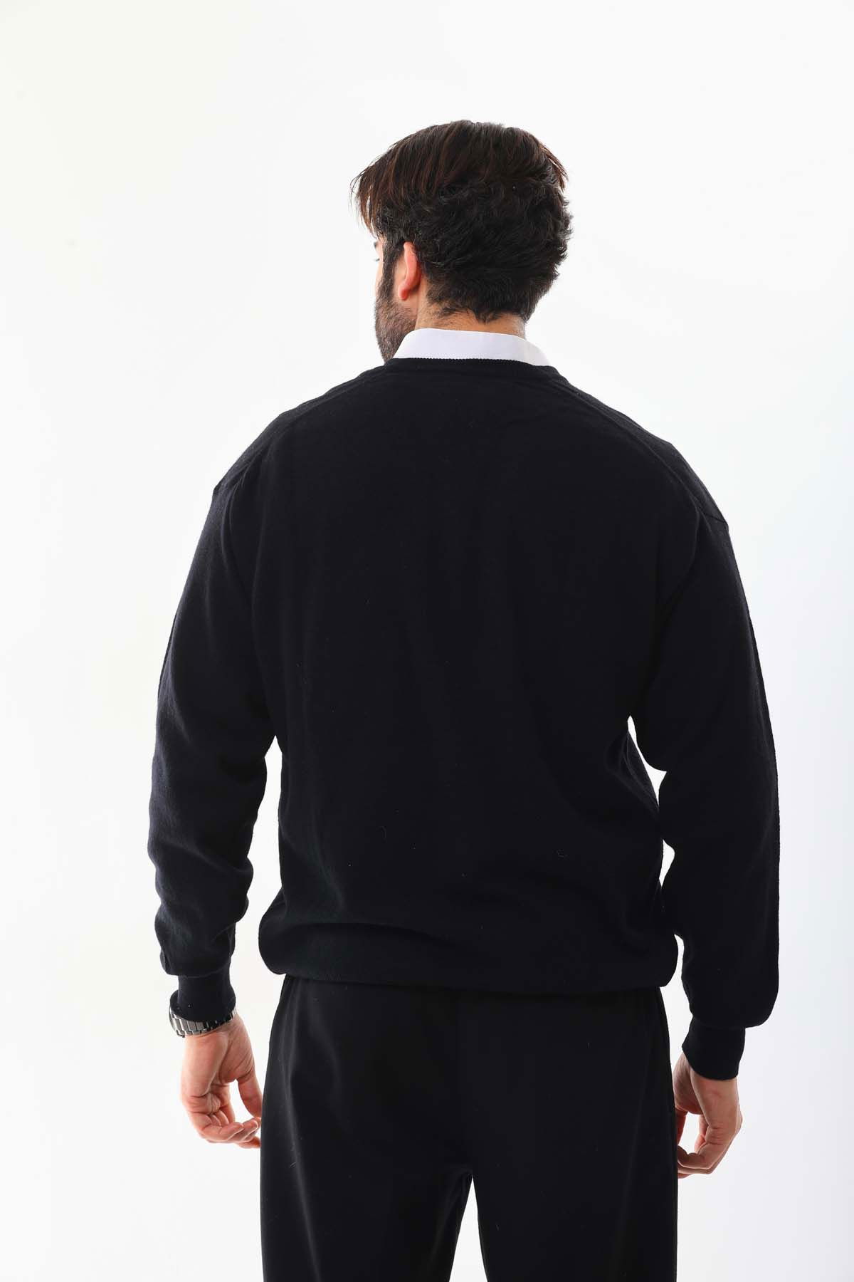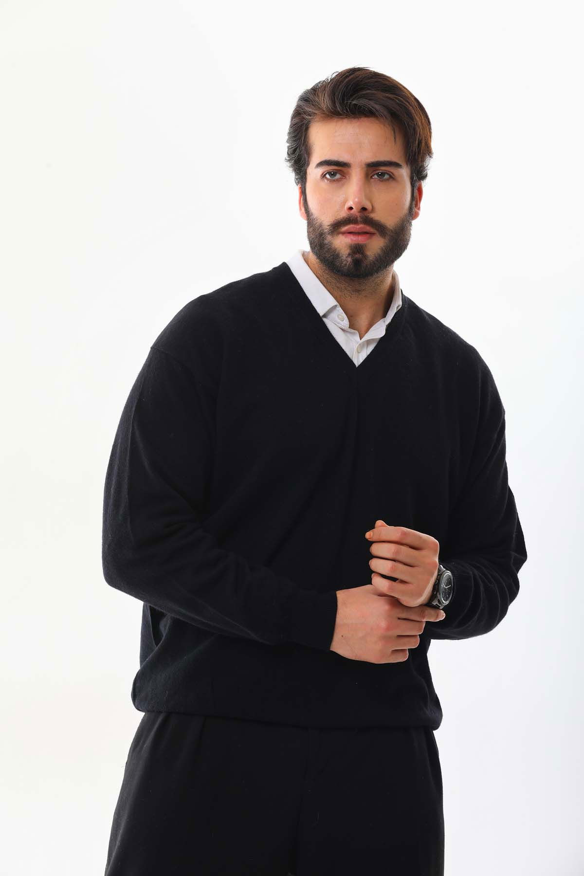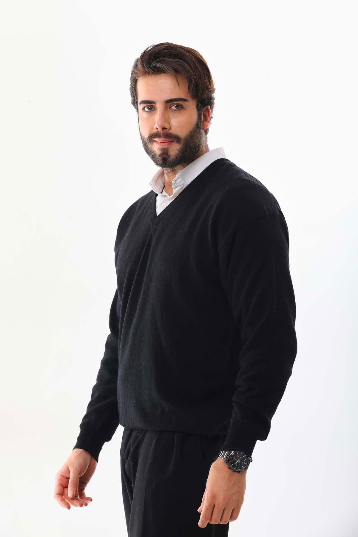 Sanfa Erkek V Yaka Saf Yün Kazak 4103 Siyah