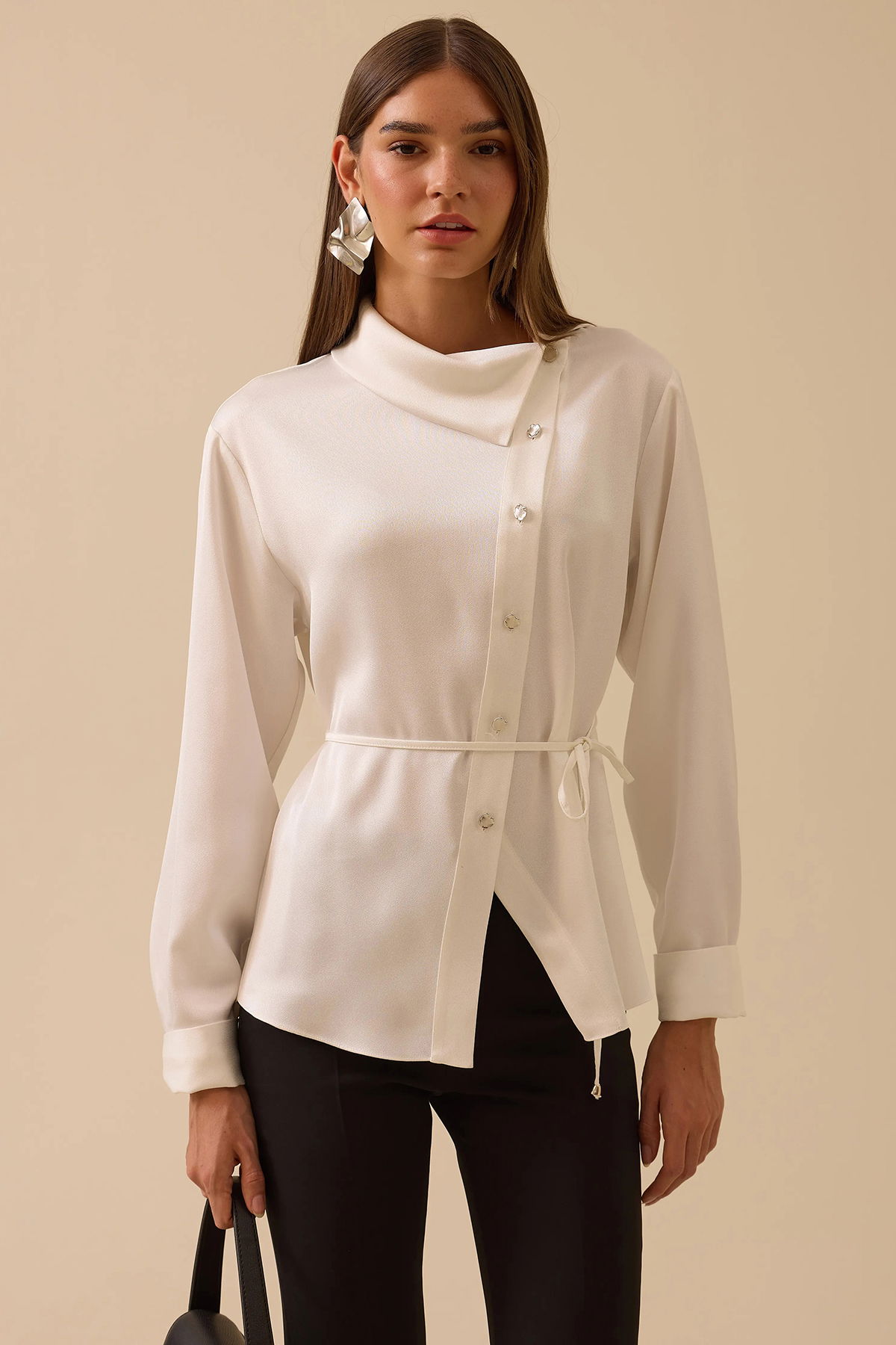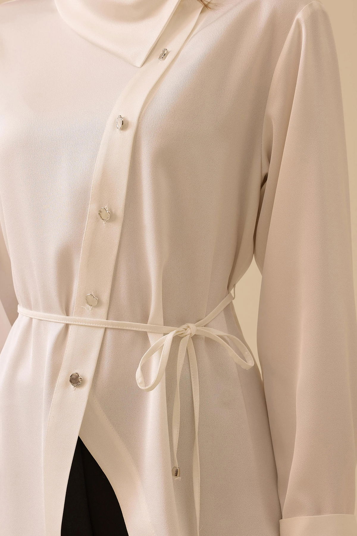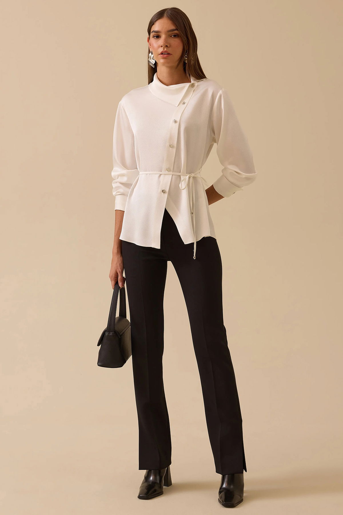 Detay: Devrik yaka tasarımıyla sofistike bir hava kazanan düğmeli saten gömlek, dar form kesimiyle vücuda oturan zarif bir siluet sunar. Uzun düşük kol detayı ve düz dokuma saten kumaşı, şık tarzı sade bir ışıltıyla buluşturur. Düğme aksesuarlarıyla tamamlanan bu gömlek, özel davetlerden ofis stiline kadar geniş bir kullanım alanı sağlar;