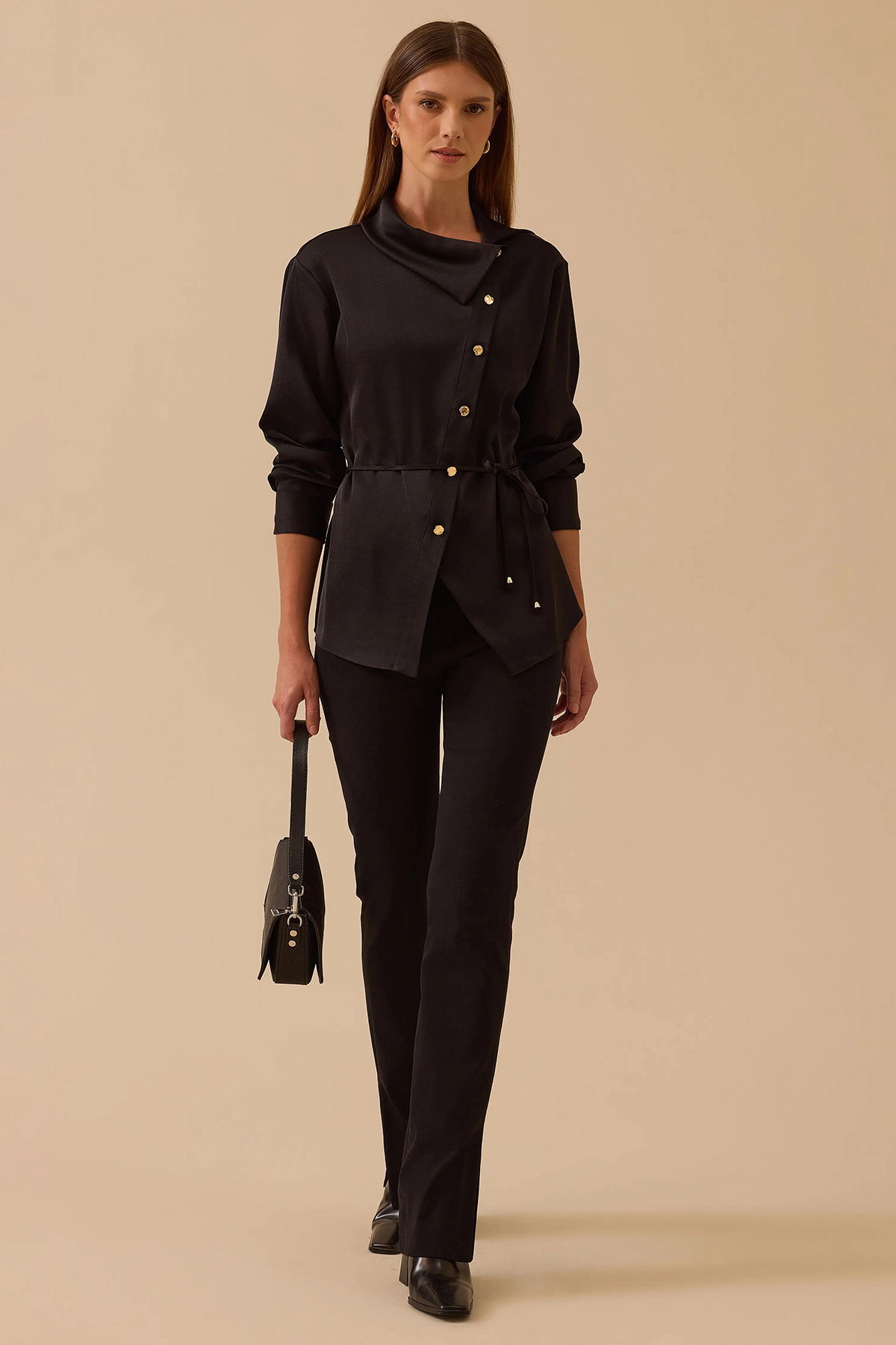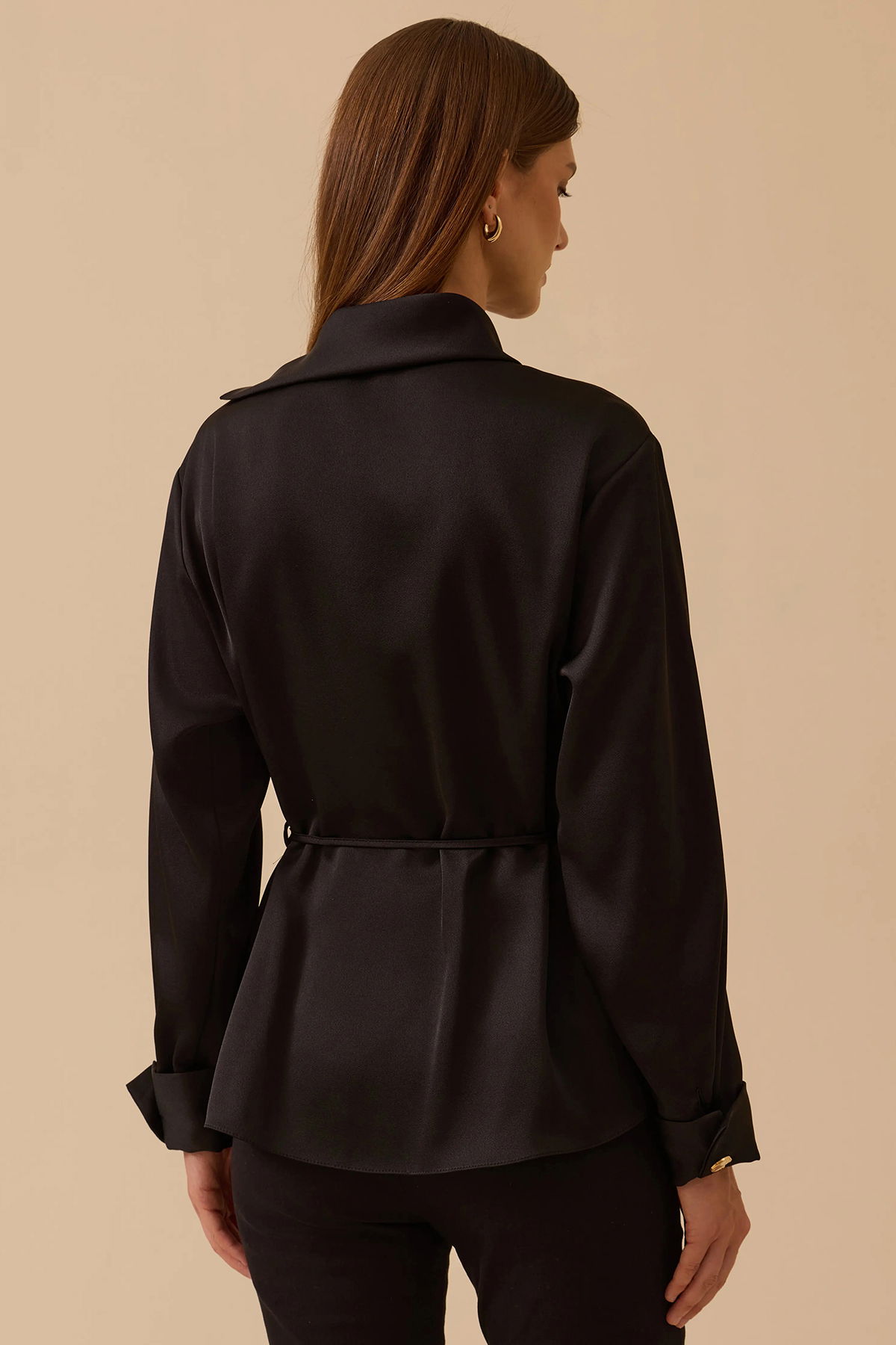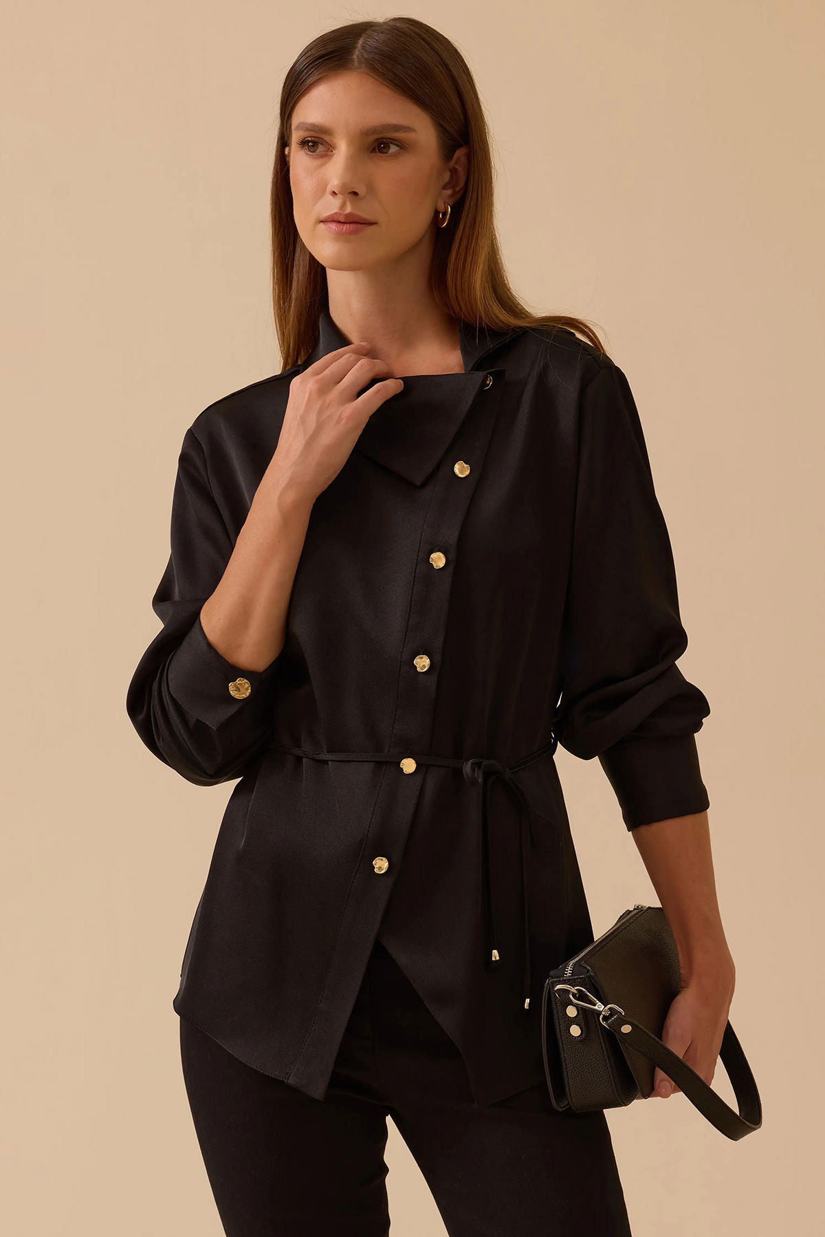 Detay: Devrik yaka tasarımıyla sofistike bir hava kazanan düğmeli saten gömlek, dar form kesimiyle vücuda oturan zarif bir siluet sunar. Uzun düşük kol detayı ve düz dokuma saten kumaşı, şık tarzı sade bir ışıltıyla buluşturur. Düğme aksesuarlarıyla tamamlanan bu gömlek, özel davetlerden ofis stiline kadar geniş bir kullanım alanı sağlar;