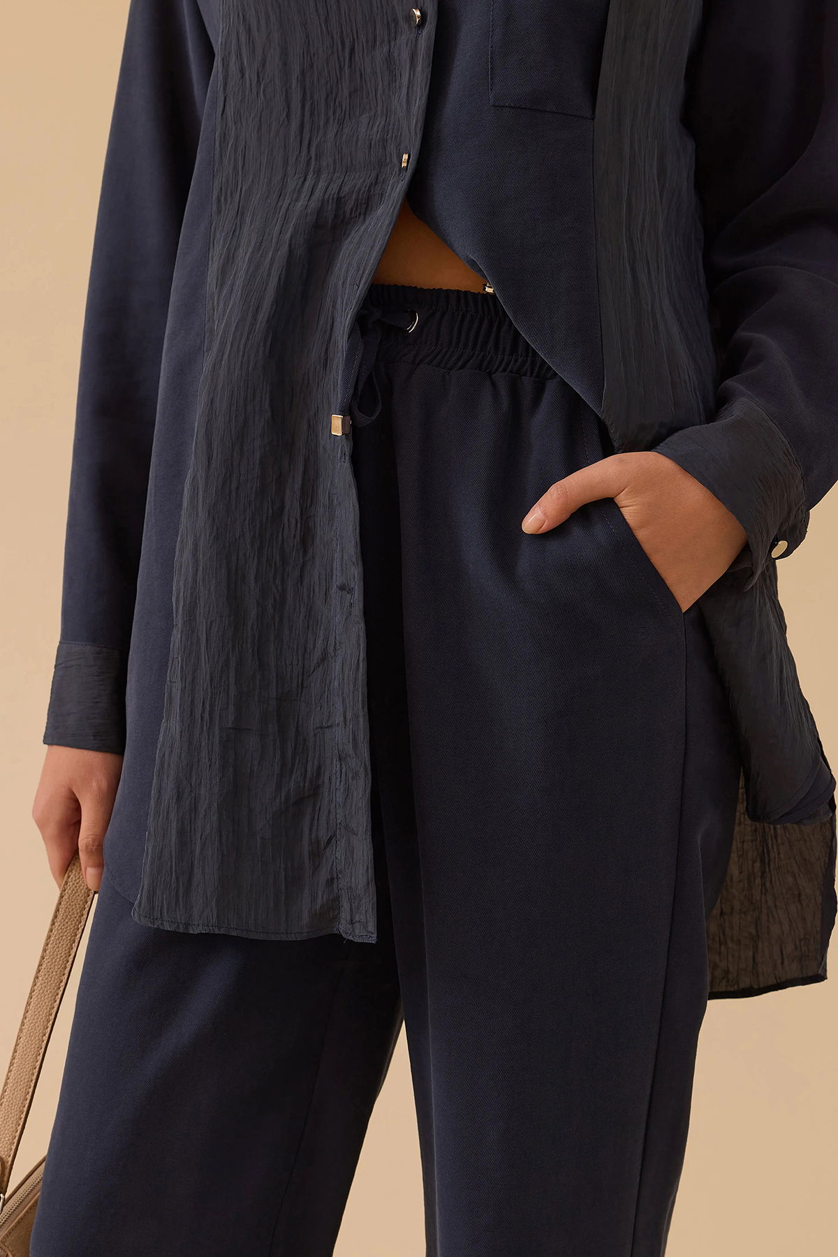 Detay: Lyocell karışımlı dokuma kumaştan üretilen bu pantolon, havuç kesimi ve bilek boyuyla modern bir siluet sunuyor. Normal bel formu rahat bir kullanım sağlarken, düz kumaş özelliği sade bir şıklık katıyor. Hafif ve konforlu yapısıyla günlük kombinlerde şıklığı ön plana çıkaran bu pantolon, hem klasik hem de modern tarzı bir arada sunan ideal bir parça oluyor;