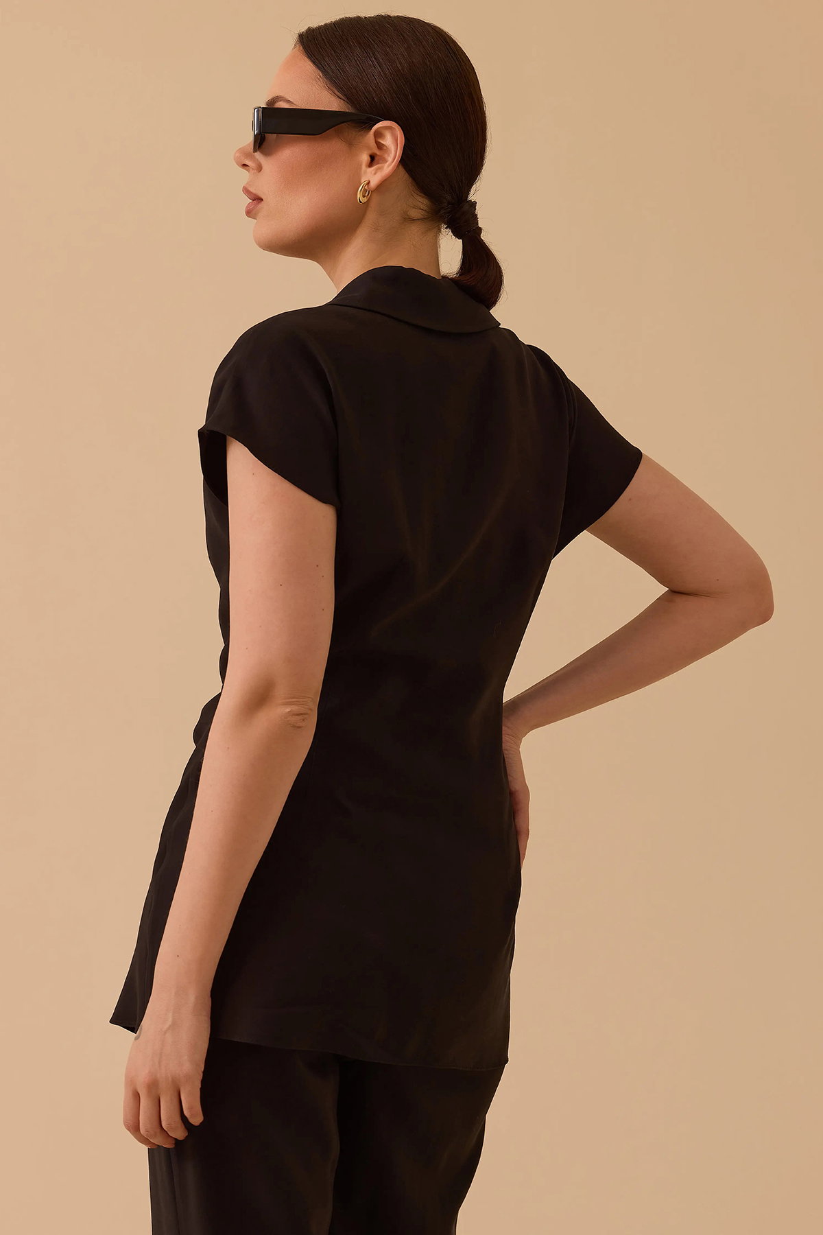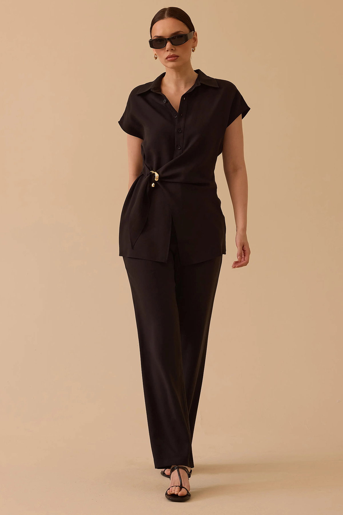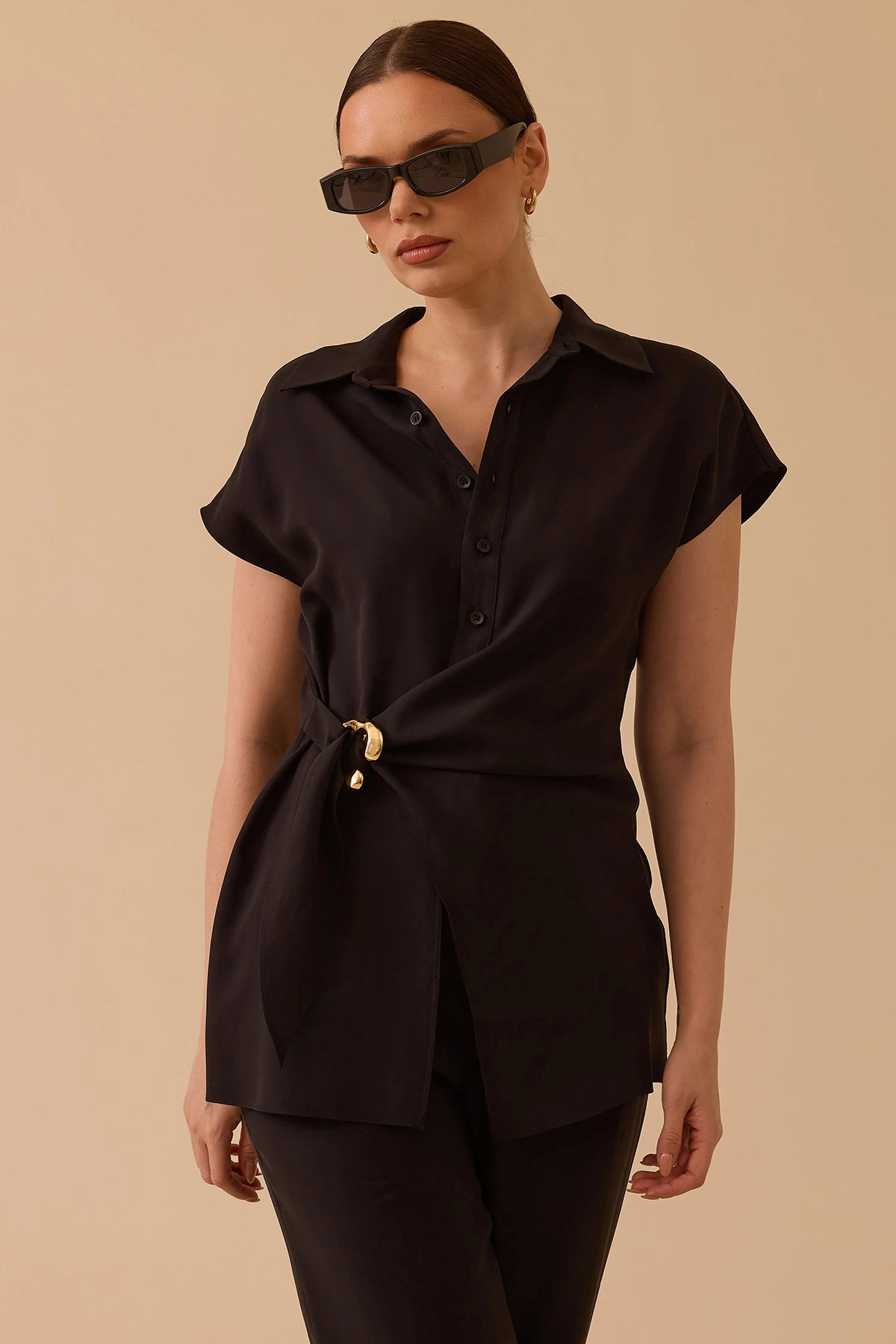 Seçil Kadın Bağlama Detaylı Tokalı Gömlek 0014 Siyah