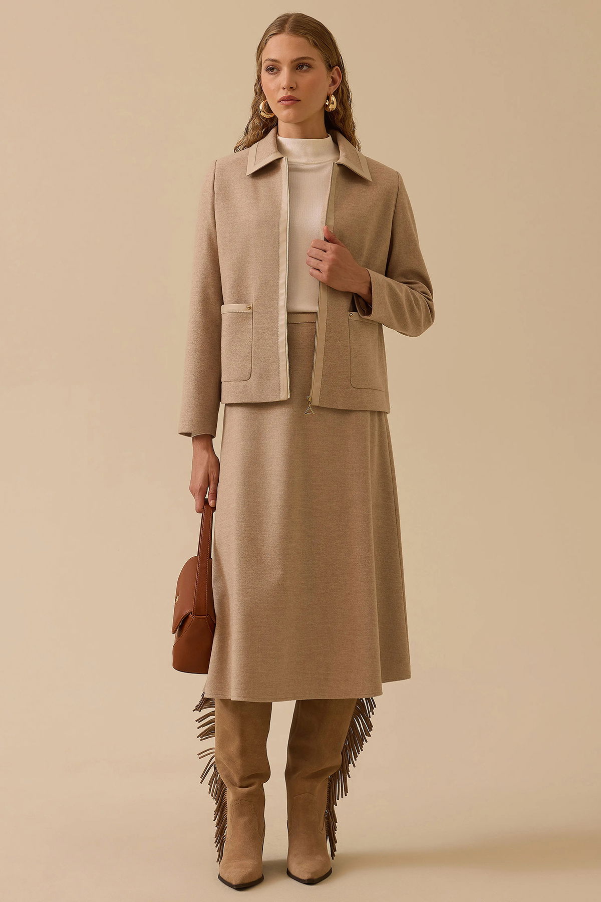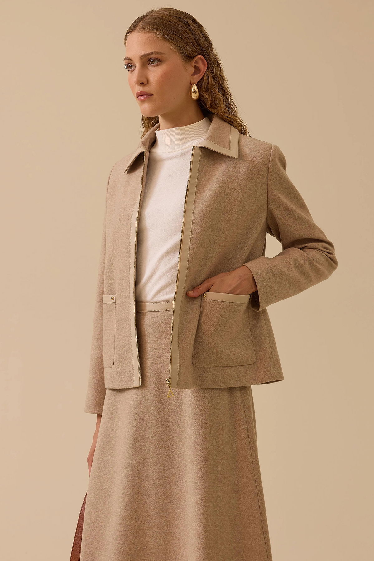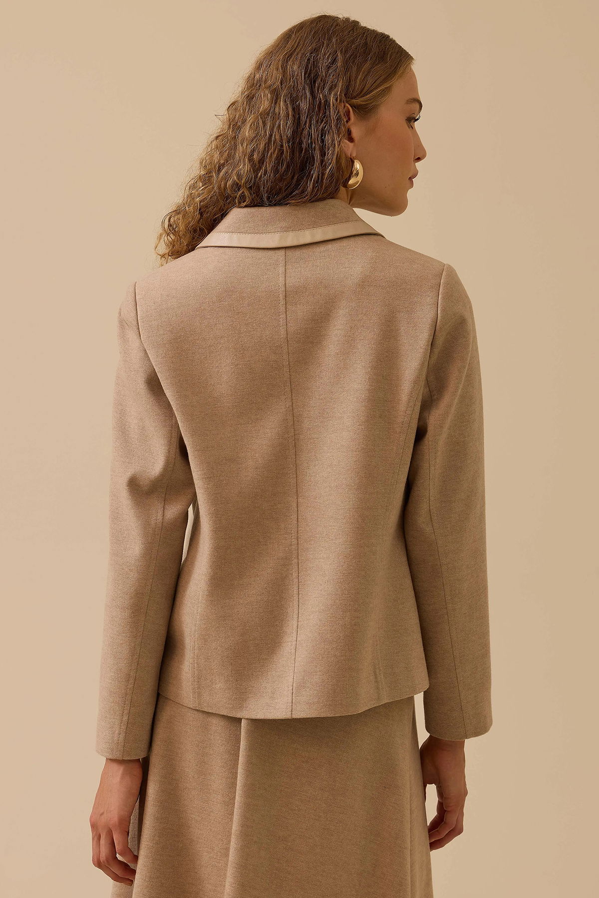 Detay: Gömlek yaka ve uzun takma kol detaylarıyla şık tarzı vurgulayan bu regular kesim düğmeli ceket, bel hizasında biten tasarımıyla dengeli bir görünüm sunar. İki kumaşlı dokuma viskon yapısı sayesinde hem zarif hem de dikkat çekici bir stil elde edilir. Normal bel yüksekliğiyle konforu koruyan bu ceket, modern kombinlerin vazgeçilmez parçası olmaya adaydır;
