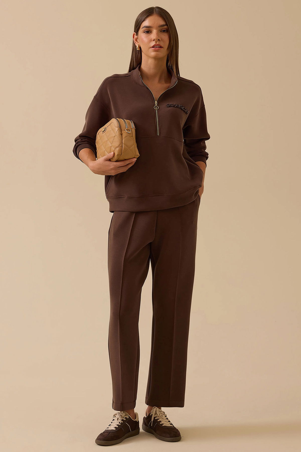 Detay: Boncuk detaylarıyla hareket kazanan fermuarlı sweatshirt modeli, sade tasarımına zarif bir dokunuş katıyor. Günlük stilinize şıklık katan bu parça, fermuar kapaması sayesinde pratik kullanım sunarken rahat kesimiyle konforu da ihmal etmiyor. Boncuk işlemeleriyle öne çıkan bu sweatshirt, şehir hayatının dinamik temposuna stil sahibi bir uyum sağlıyor;