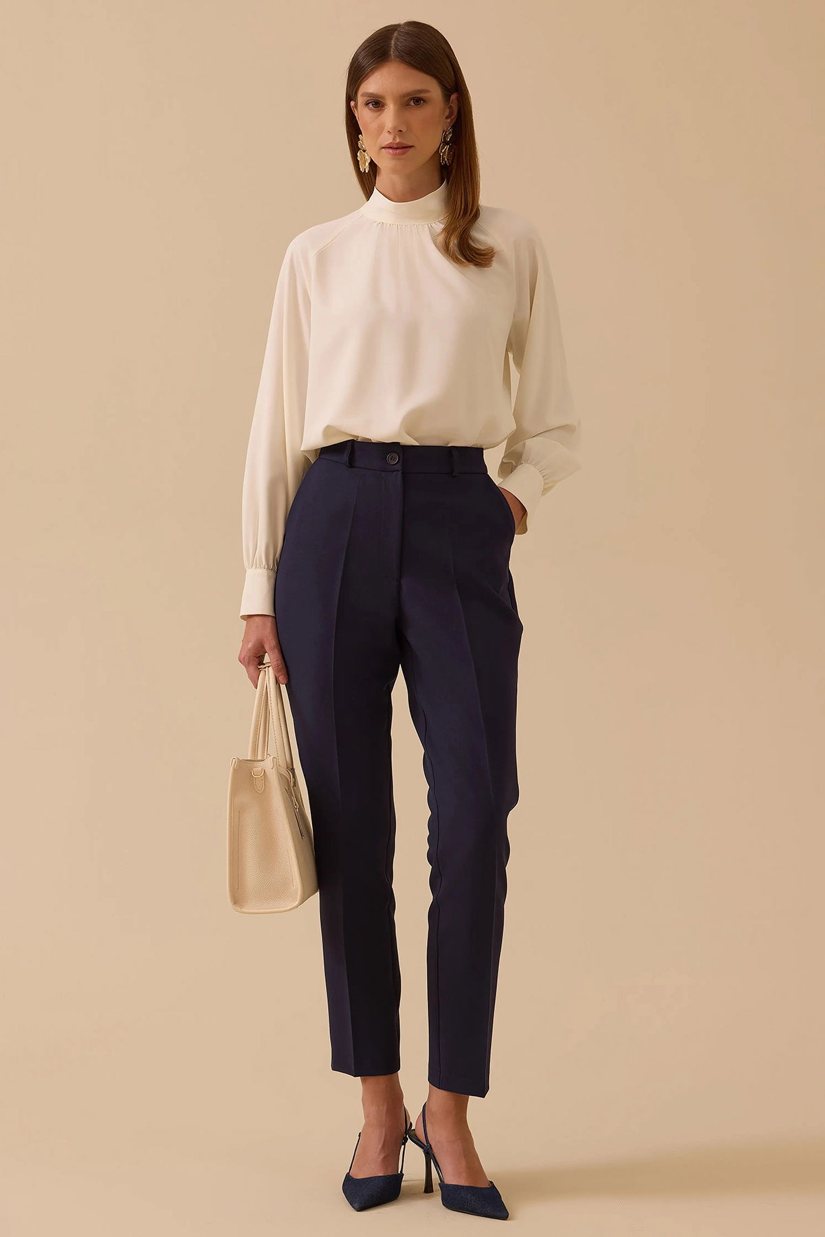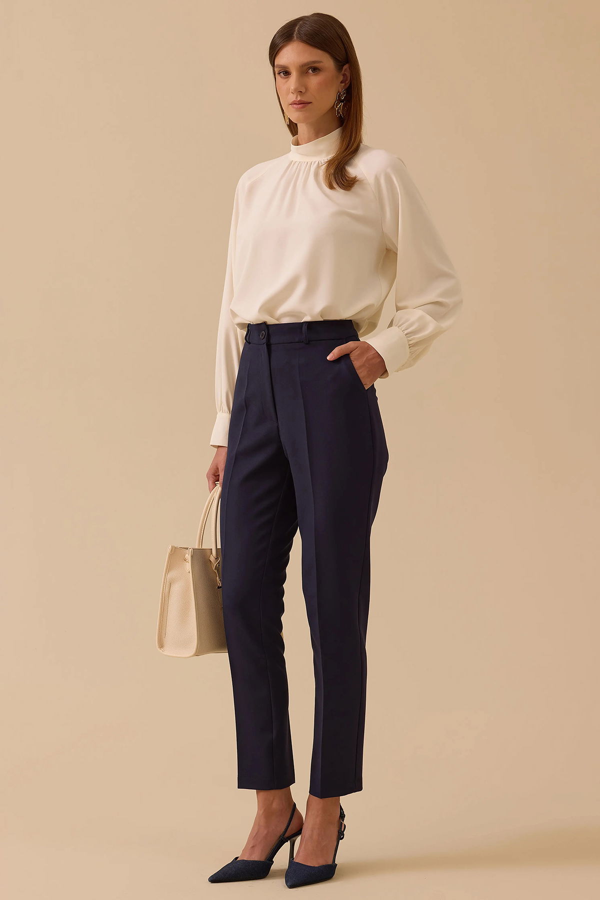 Detay: Klasik kesimi ve normal bel yapısıyla zamansız bir şıklık sunan bu bilek boy pantolon, düz dokuma krep kumaşıyla sade ve zarif bir duruş sergiler. Düğmeli kapama detayıyla tamamlanan tasarımı, hem günlük hem de ofis stiline uyum sağlar. Klasik tarzı modern çizgilerle buluşturan bu pantolon, gardırobunuzun vazgeçilmez parçası olmaya aday;