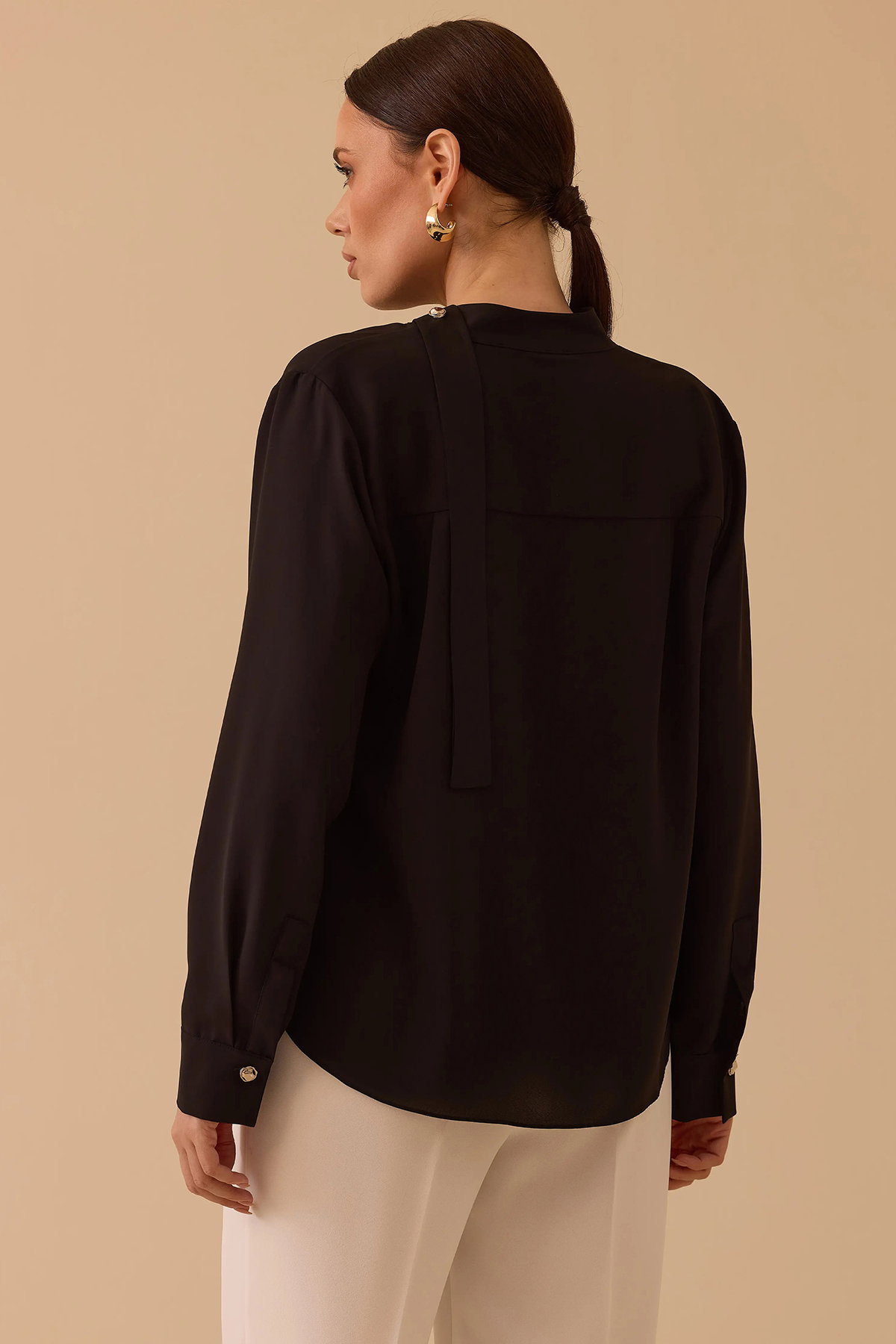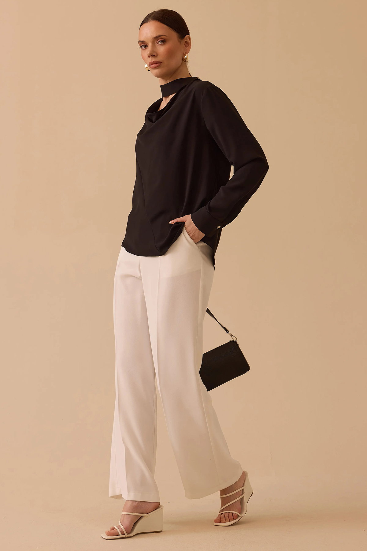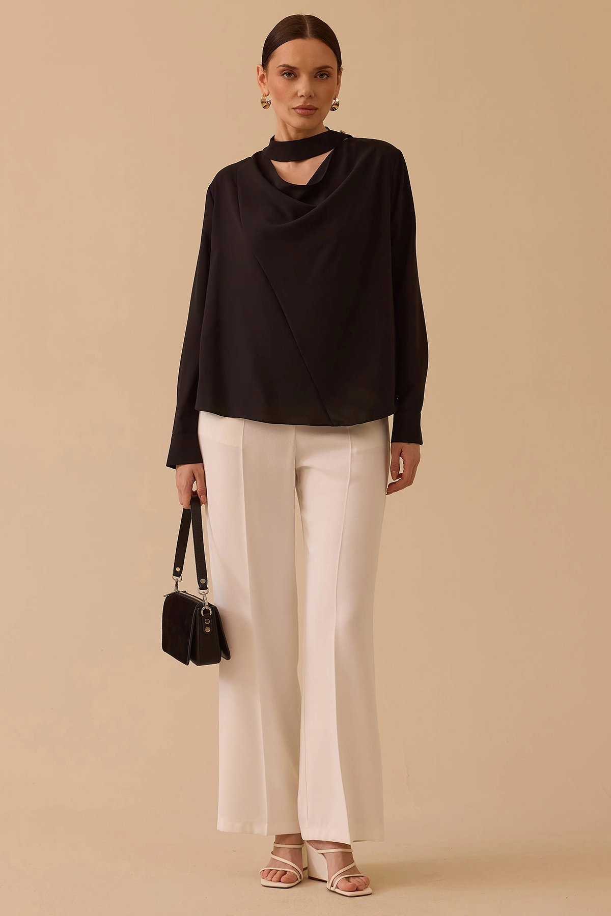 Detay: Krep dokuma kumaştan üretilen bu bluz, regular kesimi ve basen boyuyla rahat bir kullanım sunuyor. Degaje yaka tasarımı feminen bir şıklık katarken, uzun düşük kollar modern bir görünüm sağlıyor. Düz kumaş özelliği sade bir duruş sergilerken, düz bel formu konforlu bir kullanım imkânı veriyor. Hafif yapısıyla günlük kombinlerde zarif bir seçenek olarak öne çıkan bu bluz, hem klasik hem de modern tarzı bir arada sunuyor;