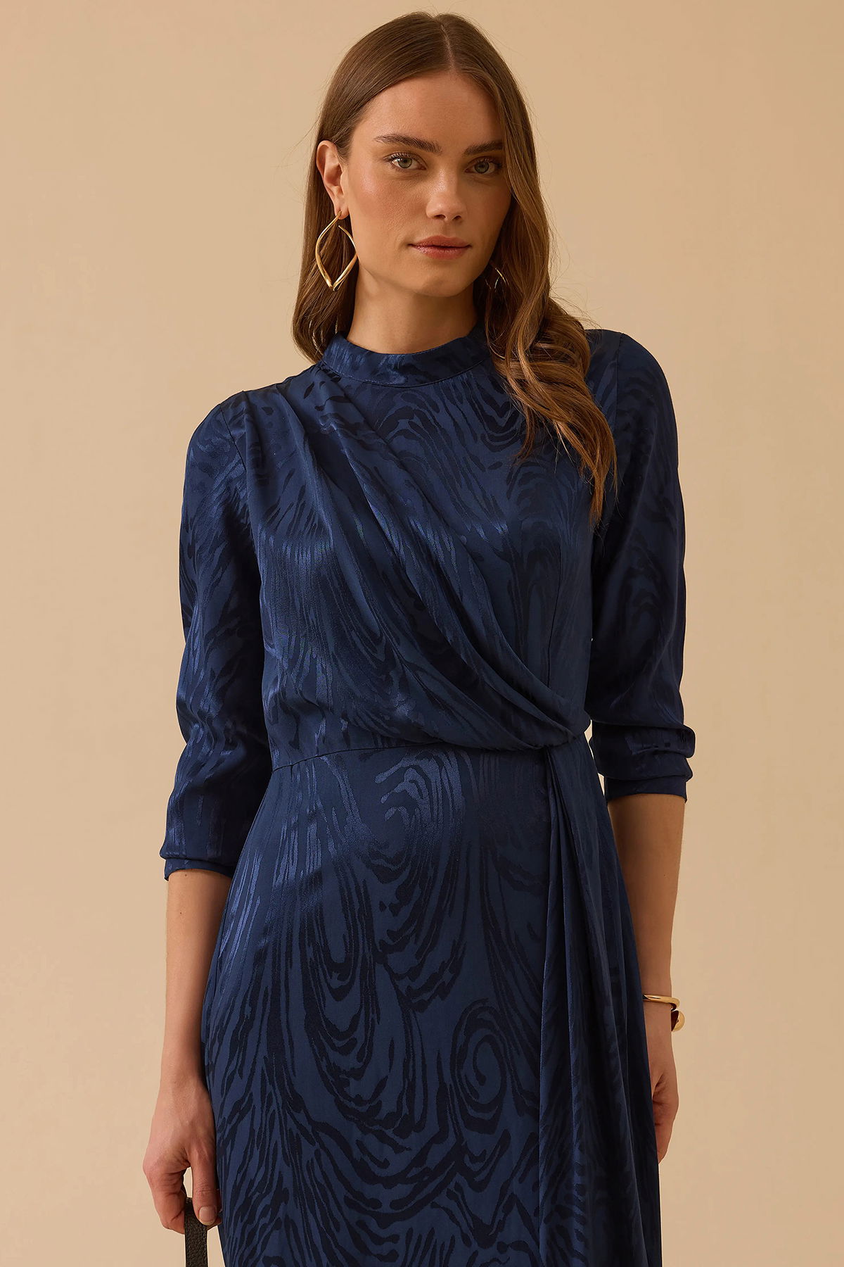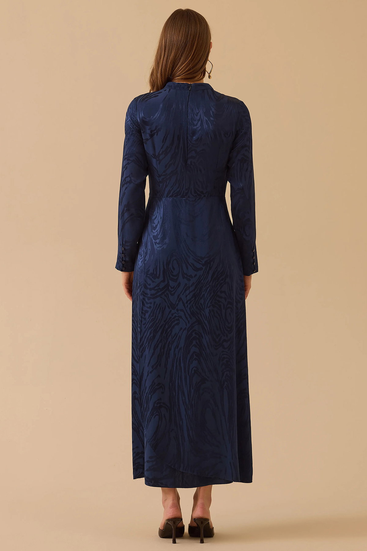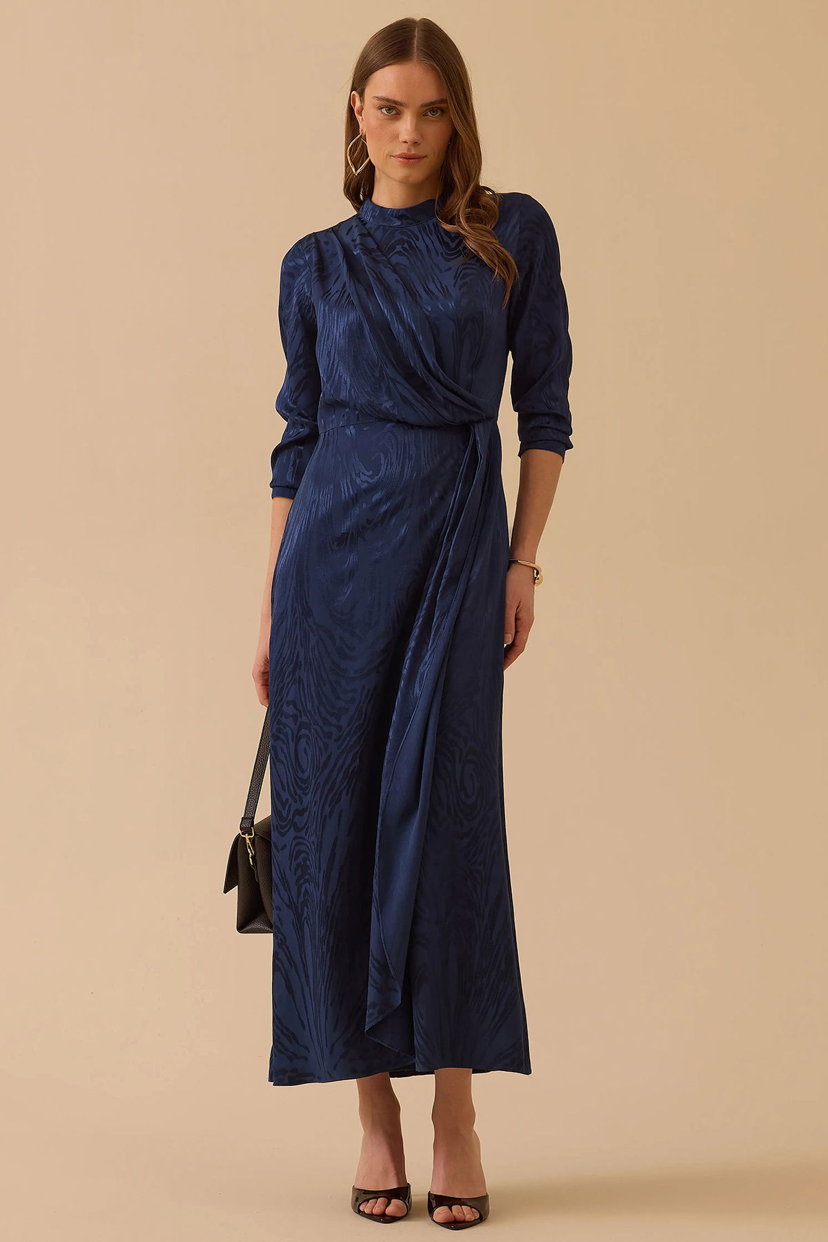Detay: Polyester dokuma kumaştan üretilen bu elbise, A kesim formu ve maksi boyuyla zarif bir siluet sunuyor. Gömlek yaka tasarımı klasik bir şıklık katarken, uzun takma kollar feminen bir görünüm sağlıyor. Bele oturan formu vücut hatlarını zarifçe vurgularken, düz kumaş özelliği sade bir duruş sergiliyor. Bu özellikleriyle hem günlük hem de özel davetlerde şıklığınızı tamamlayan ideal bir parça oluyor;