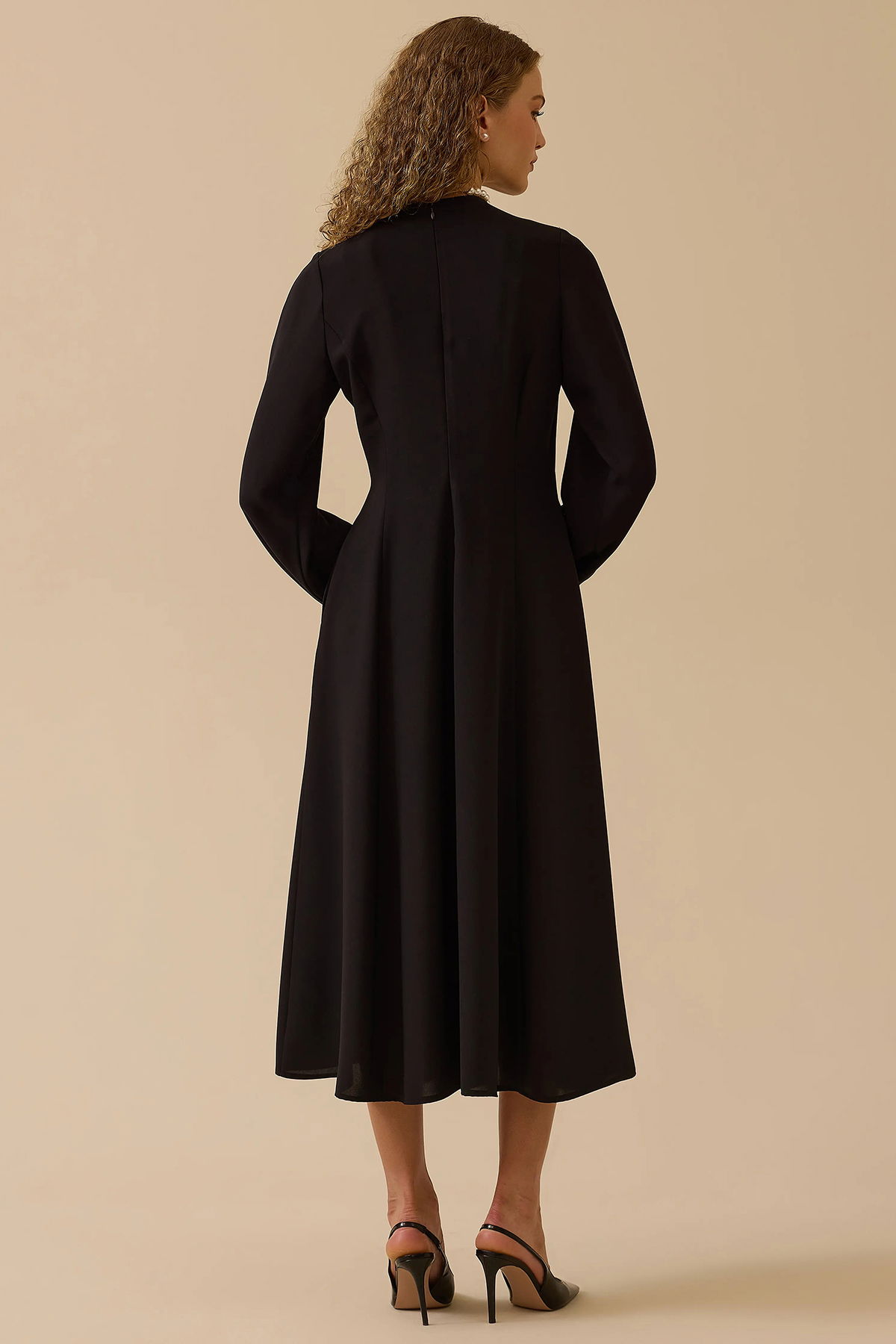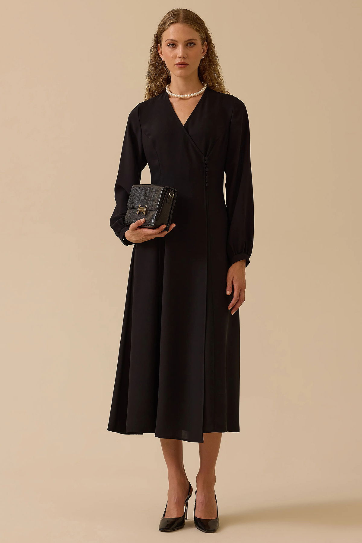 Detay: A kesim yapısıyla zarif bir siluet sunan bu maksi boy elbise, V yaka detayıyla feminen bir dokunuş kazandırır. Şık tarzıyla özel davetlerden akşam yemeklerine kadar geniş bir kullanım alanı sunan bu parça, sade duruşuna rağmen etkileyici bir görünüm elde etmek isteyenler için ideal bir tercihtir;