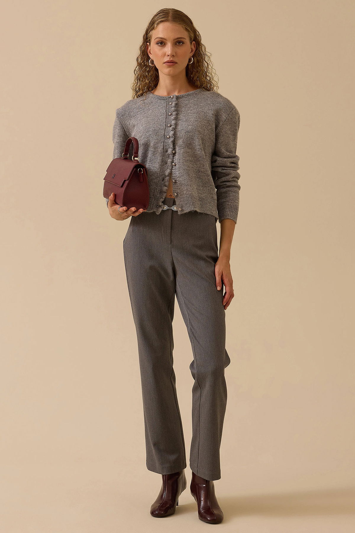 Detay: Yuvarlak yaka ve uzun takma kol detaylarıyla sade bir şıklık sunan düğmeli hırka, regular kesimi ve normal bel yapısıyla günlük stilin konforunu yansıtıyor. Bel hizasında biten düz örme kumaşı, hem sıcak tutar hem de modern bir görünüm sağlar. Düğme aksesuarlarıyla tamamlanan bu hırka, sonbahar ve kış kombinlerinin vazgeçilmez parçası oluyor.;