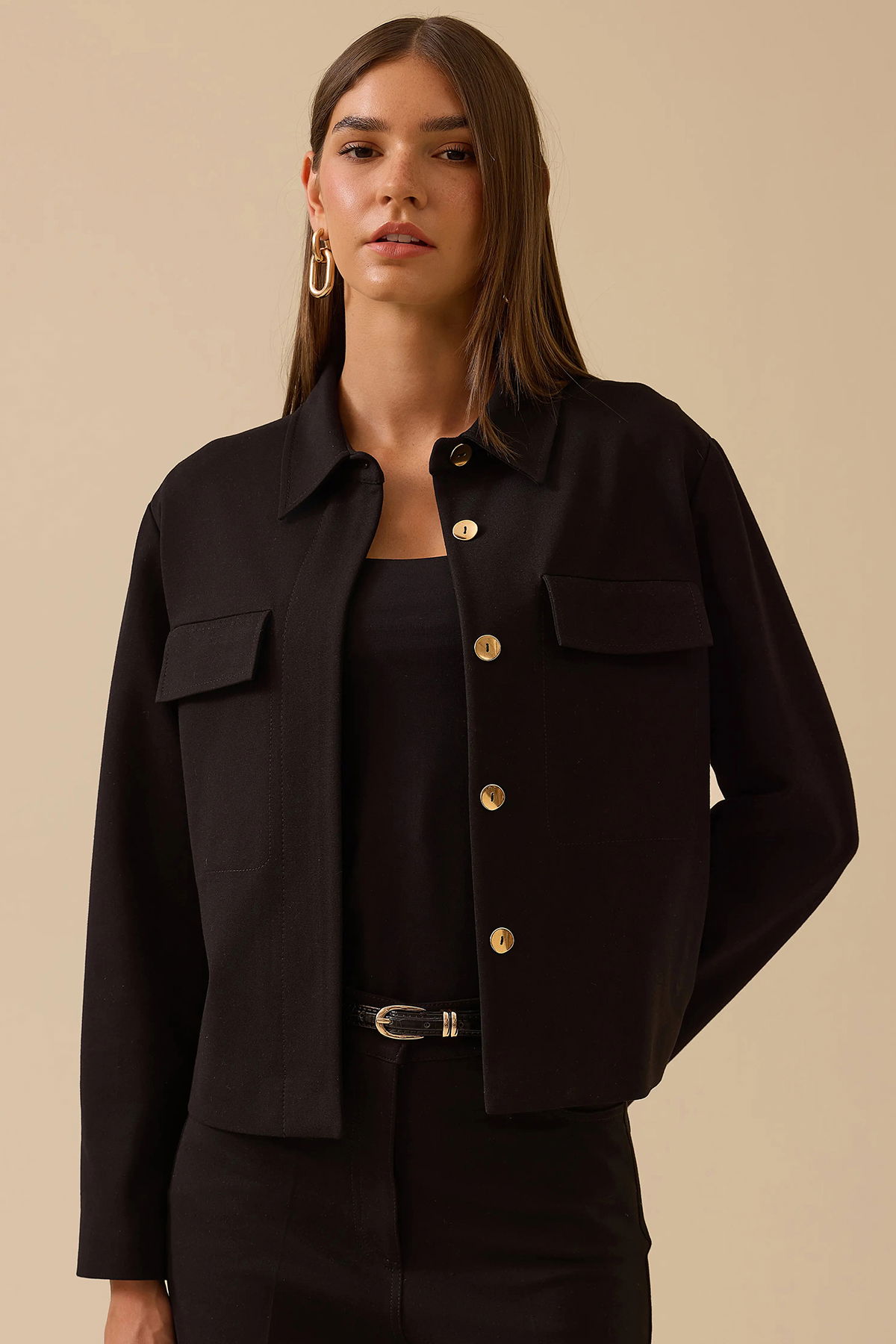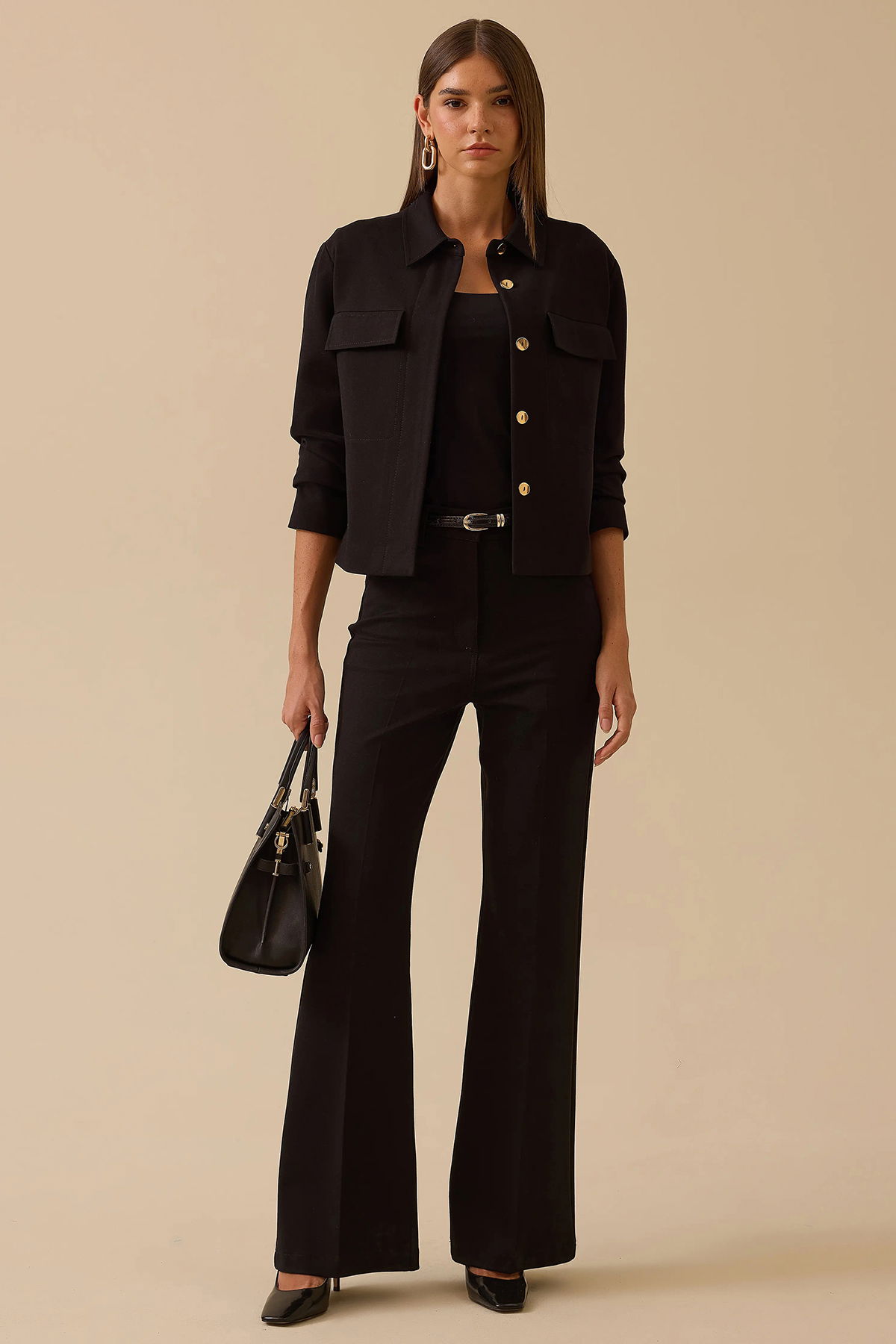 Seçil Kadın Düğmeli Cep Kapaklı Ceket 0005 Siyah