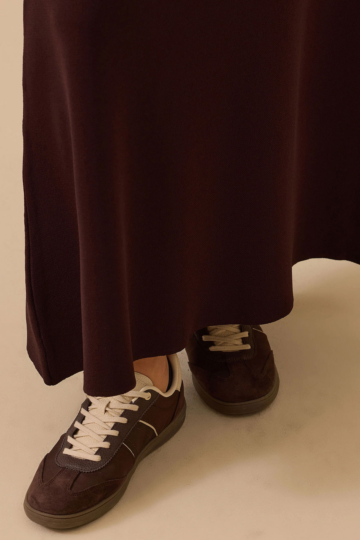 Detay: Tam boy ve A kesim tasarımıyla rahat bir siluet sunan bu günlük etek, düz örme kumaşıyla sade ve şık bir görünüm sağlar. Lastik beli sayesinde konforlu bir kullanım sunarken, dokuma tipiyle esnek ve hafif bir yapıya sahiptir. Günlük kombinlerinizde hem stil hem rahatlık arıyorsanız ideal bir tercihtir;